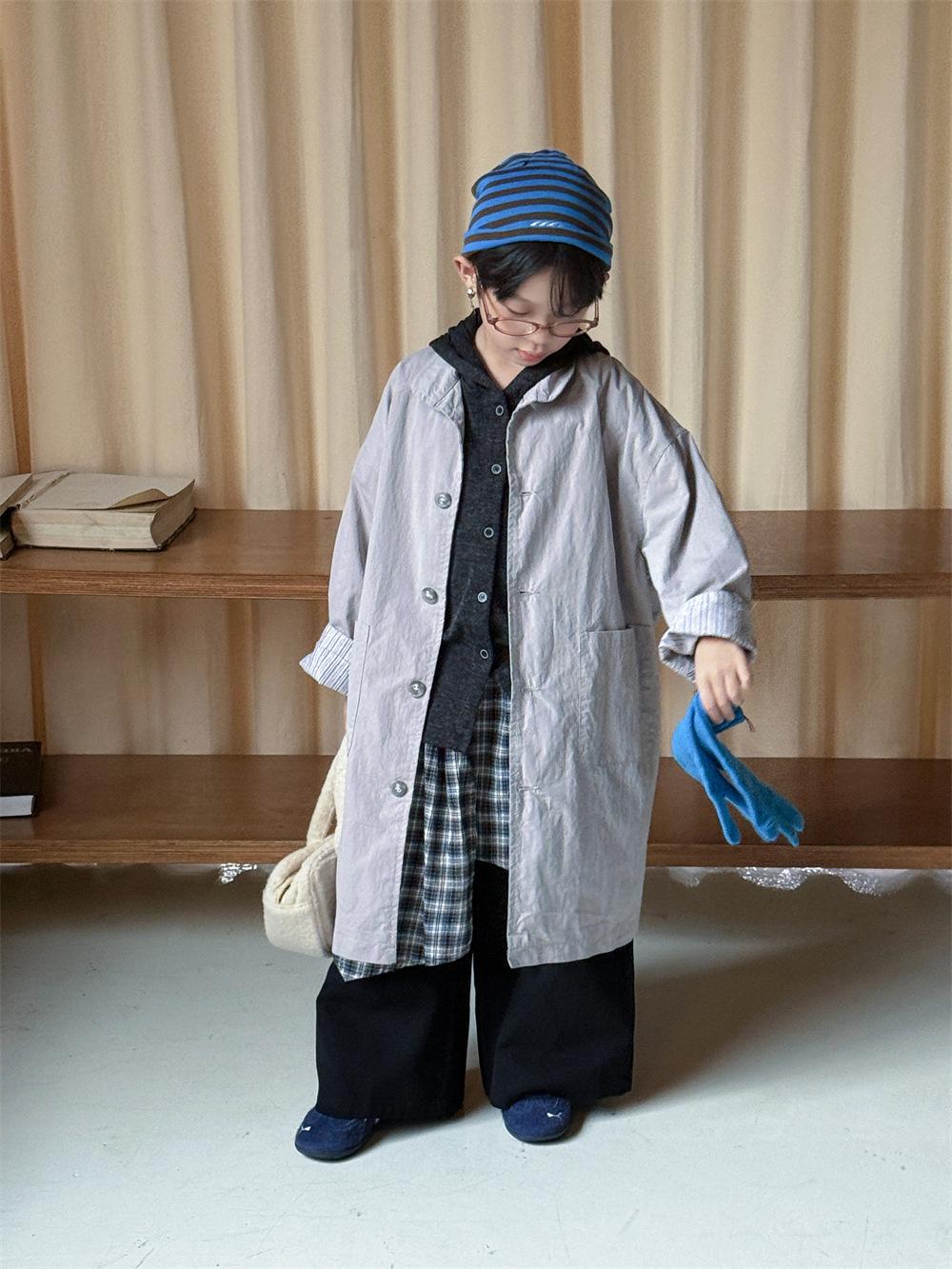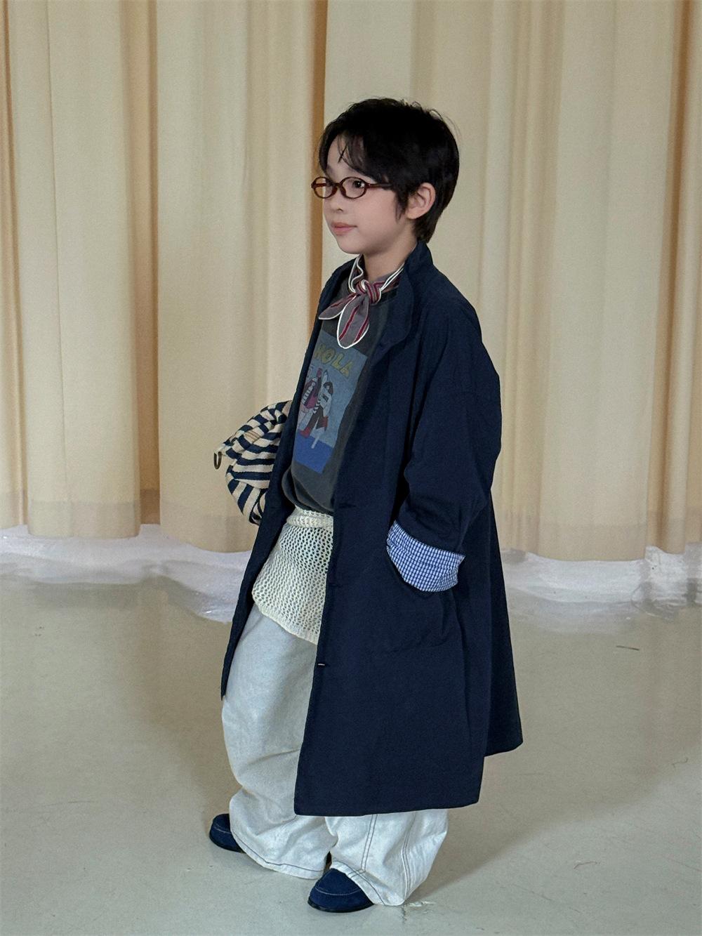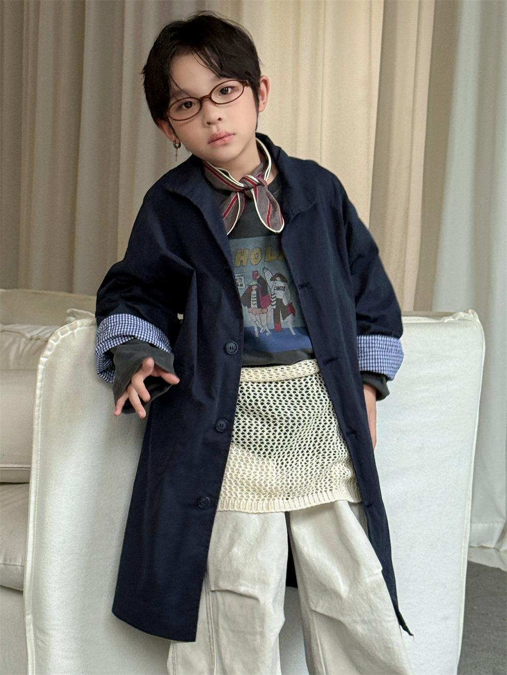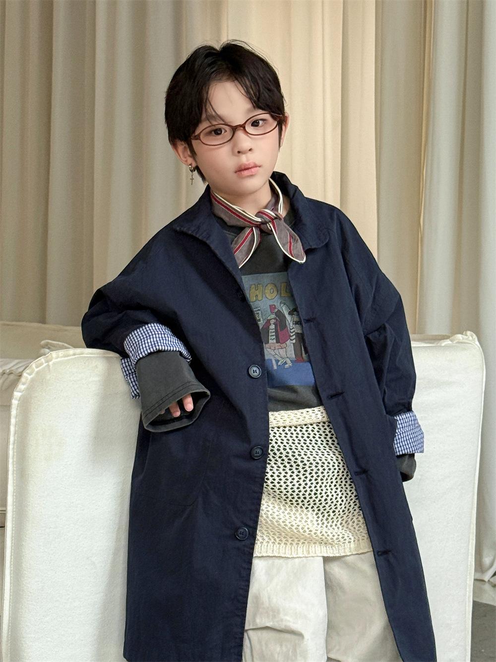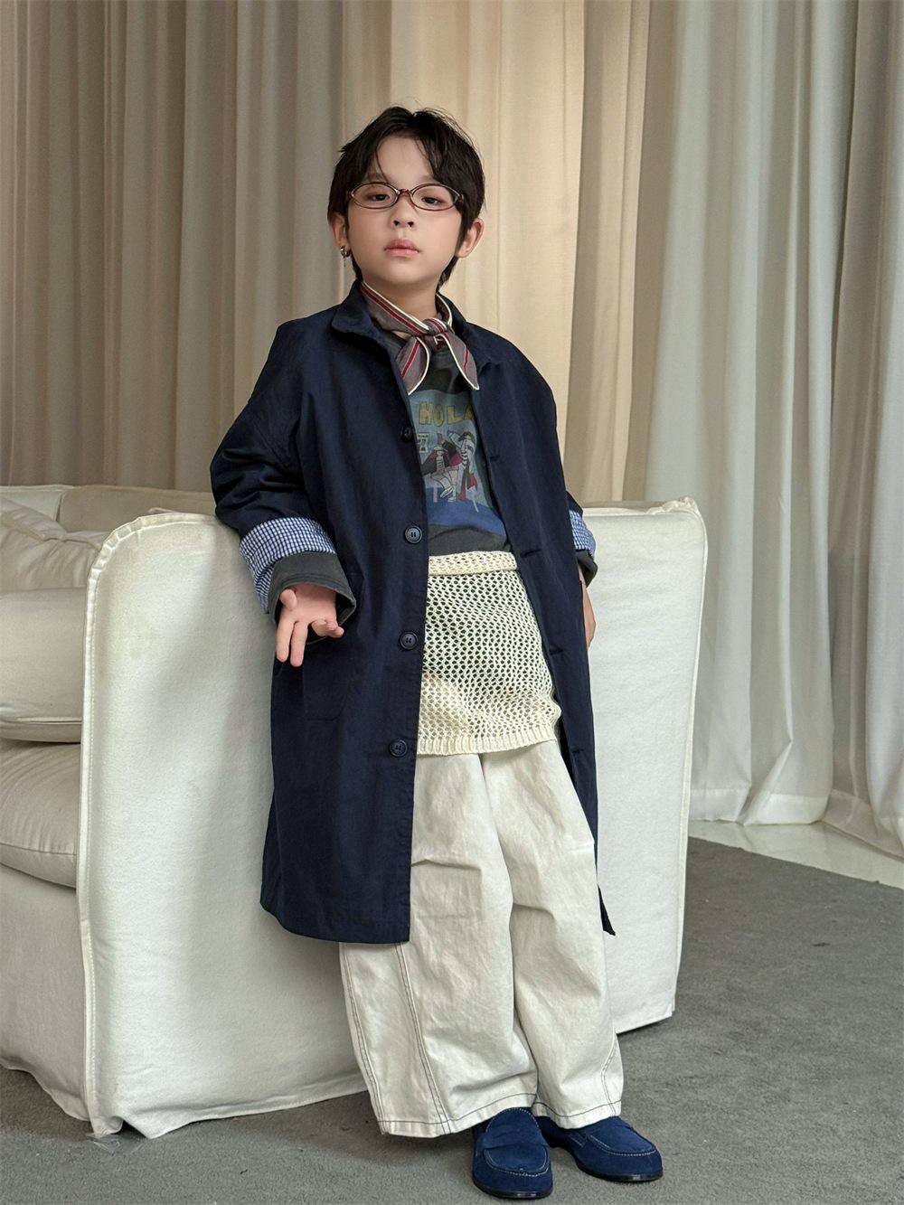Cheese and Meow Ropa Infantil Abrigo Trench para Niño 2025 Otoño Nuevo Estilo Coreano Color Sólido Largo Abrigo Versátil para Niños Moderno