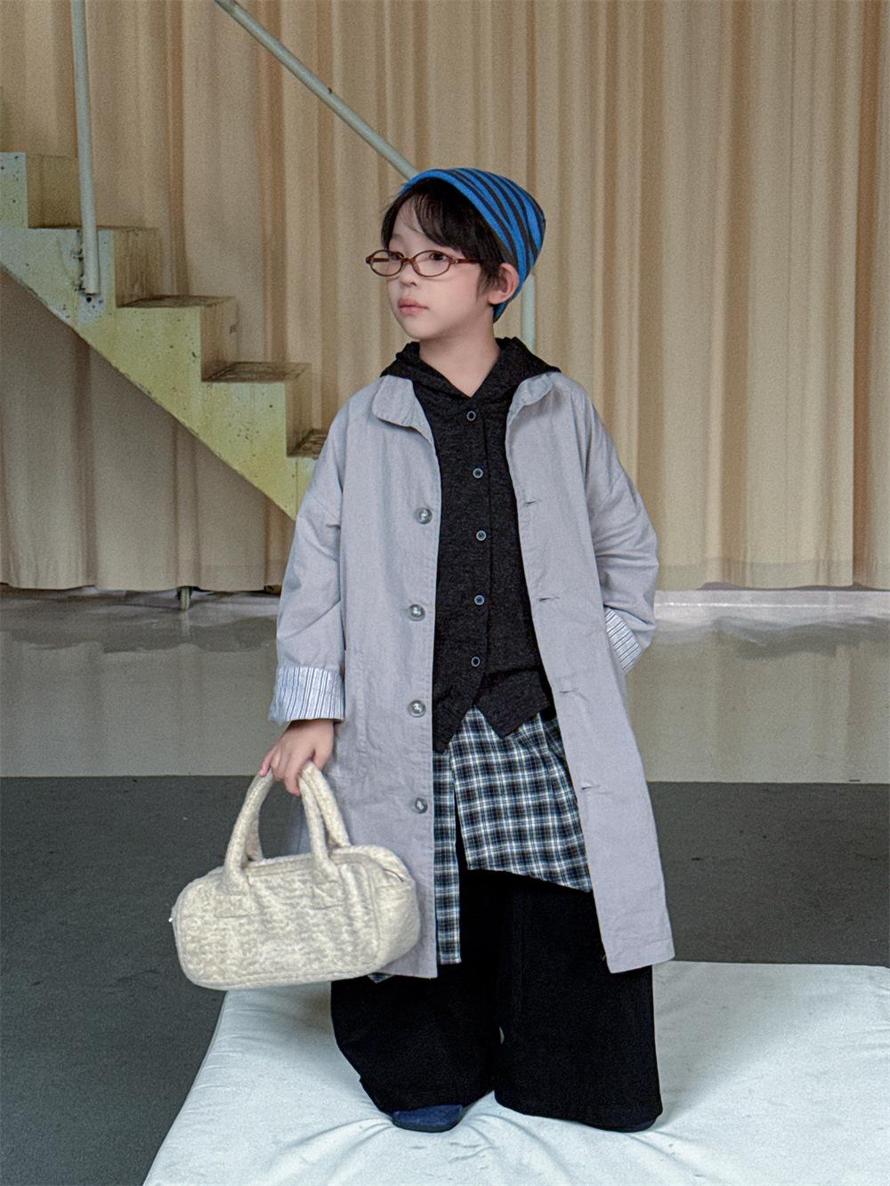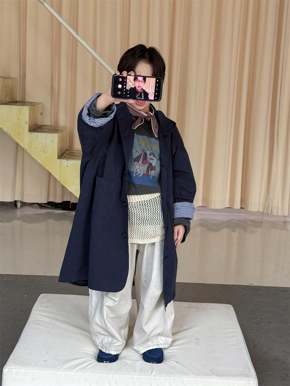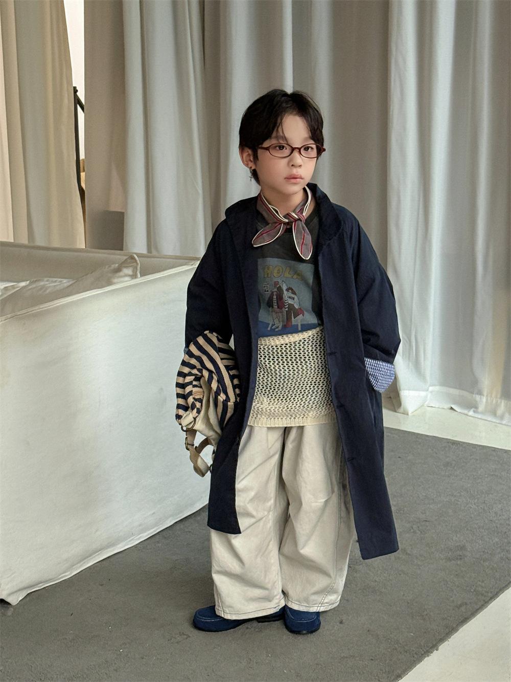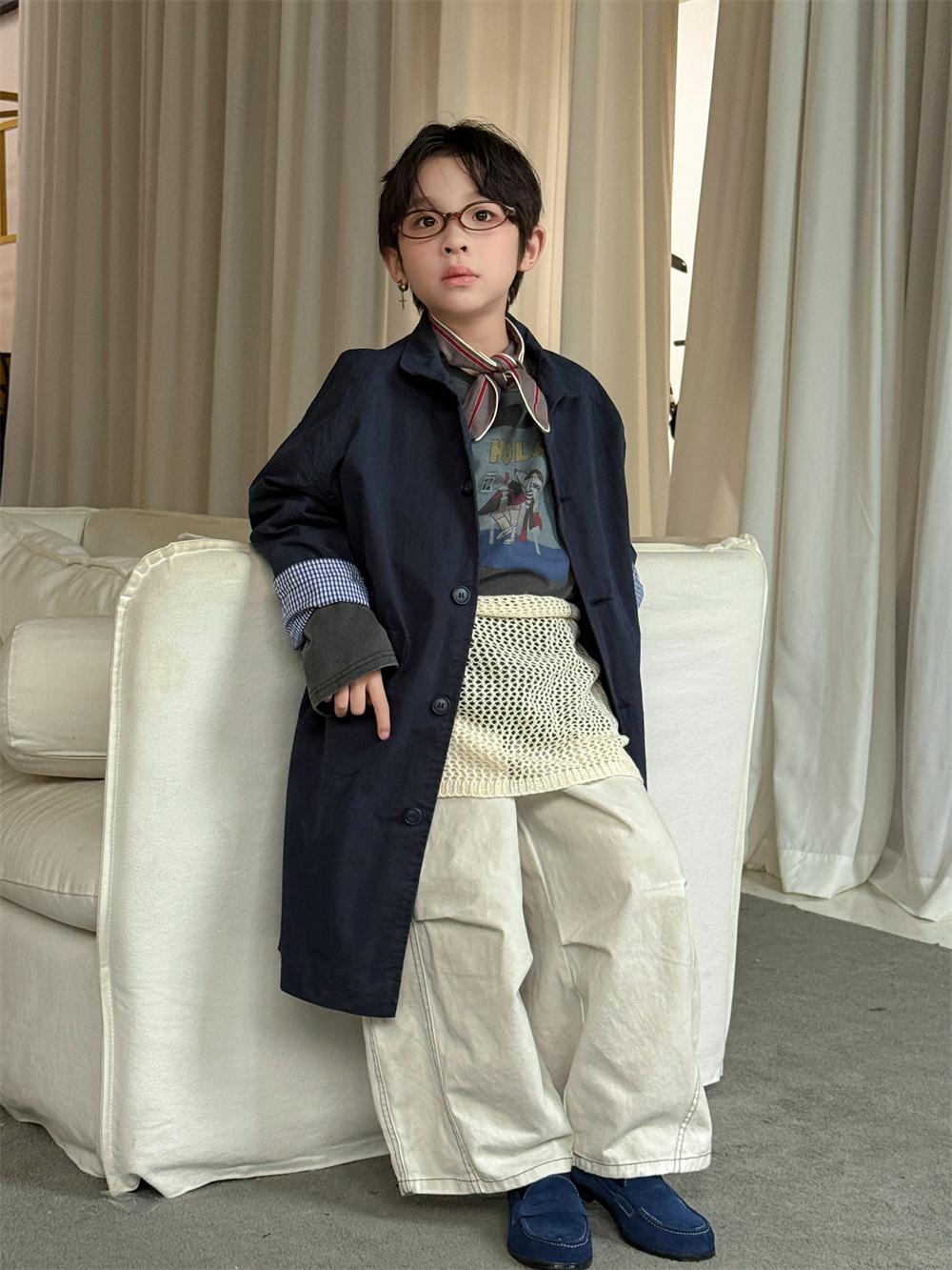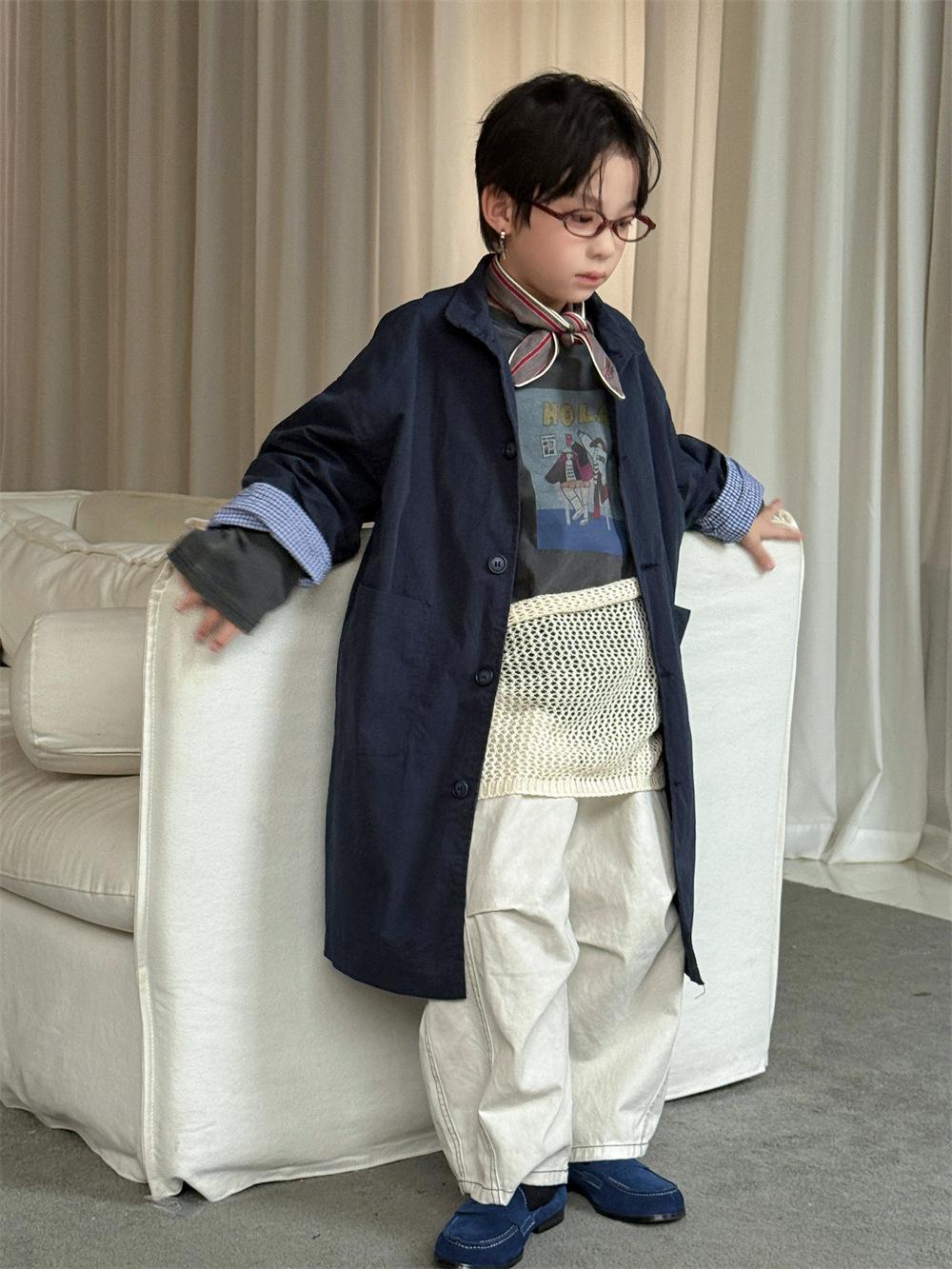 Cheese and Meow Ropa Infantil Abrigo Trench para Niño 2025 Otoño Nuevo Estilo Coreano Color Sólido Largo Abrigo Versátil para Niños Moderno