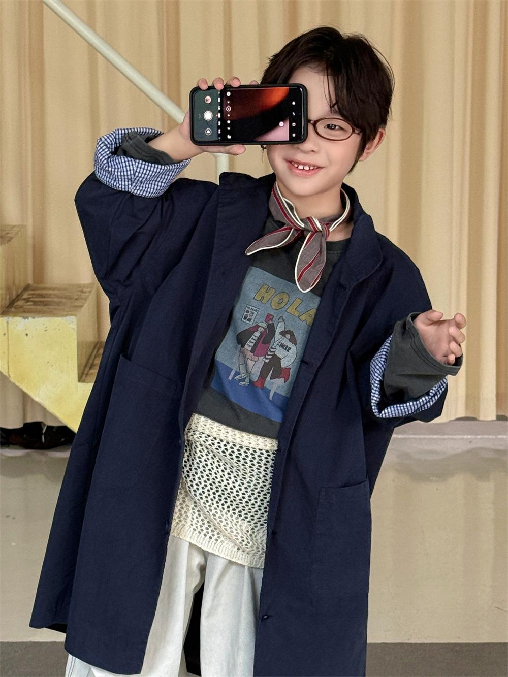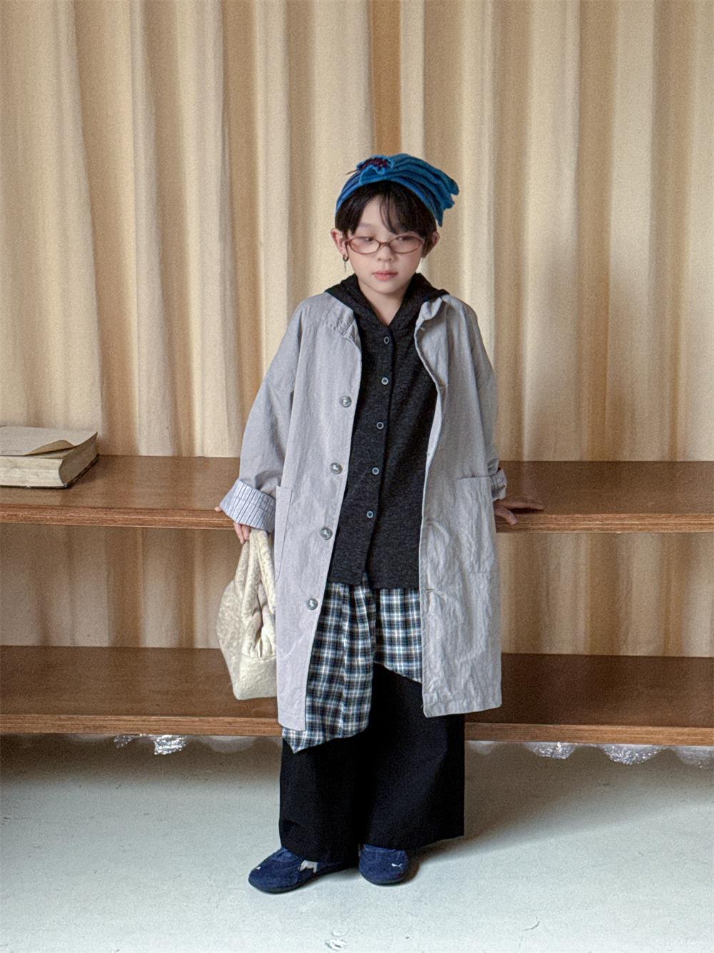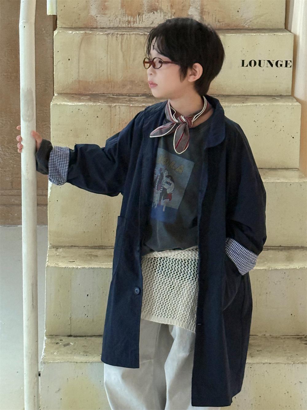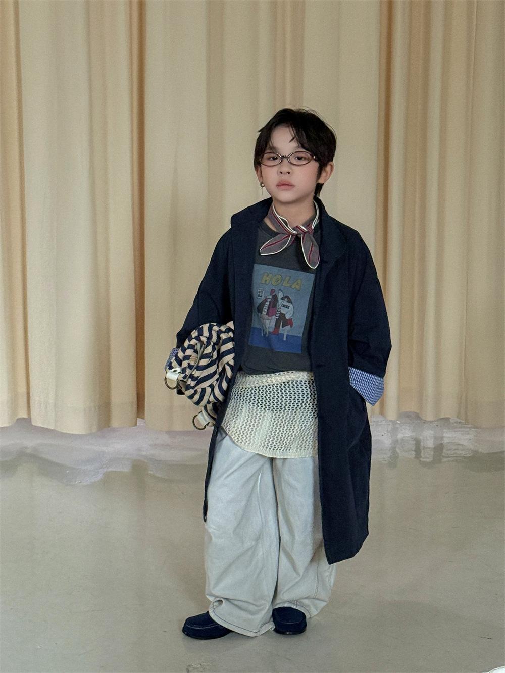 Cheese and Meow Ropa Infantil Abrigo Trench para Niño 2025 Otoño Nuevo Estilo Coreano Color Sólido Largo Abrigo Versátil para Niños Moderno
