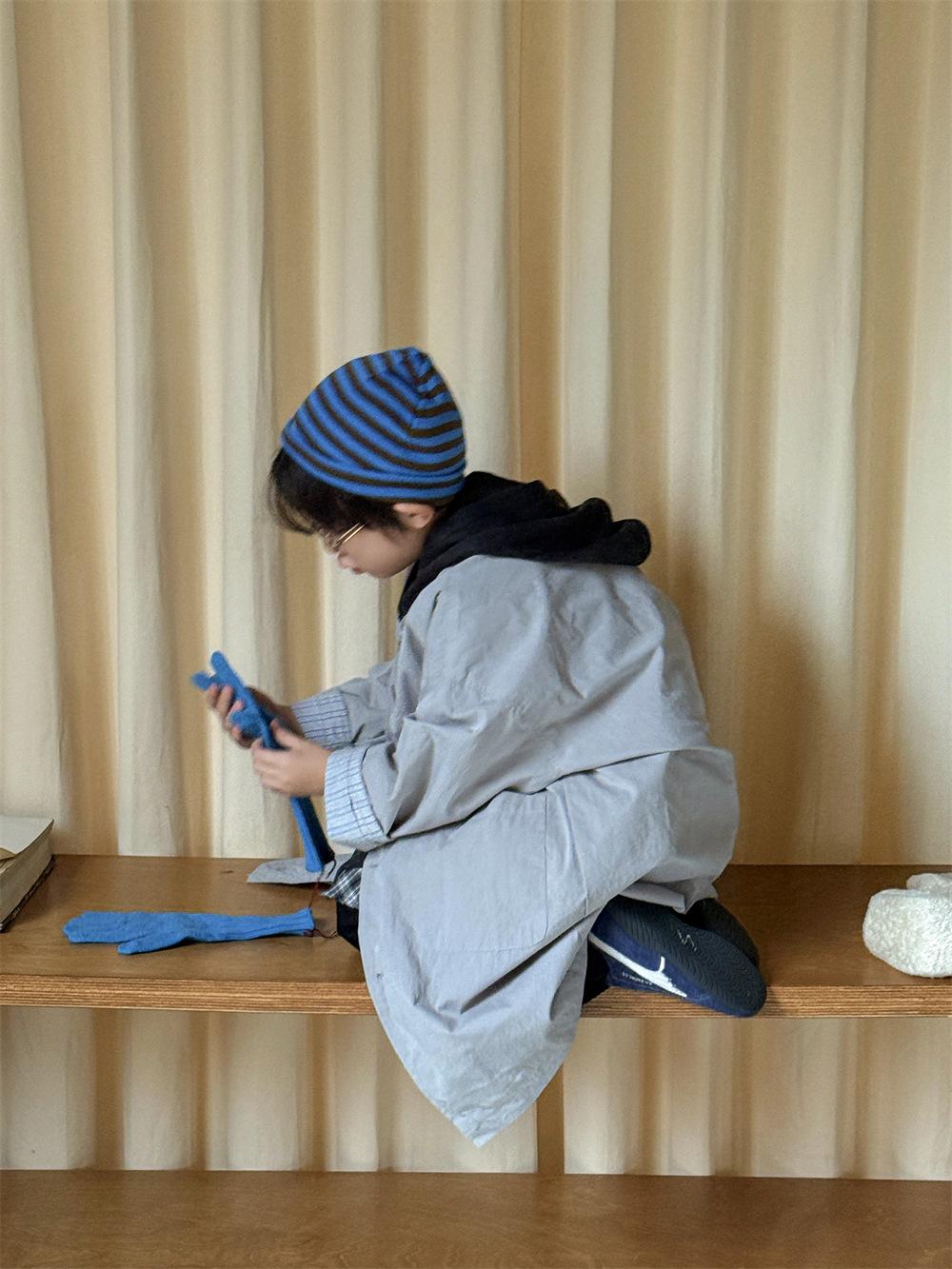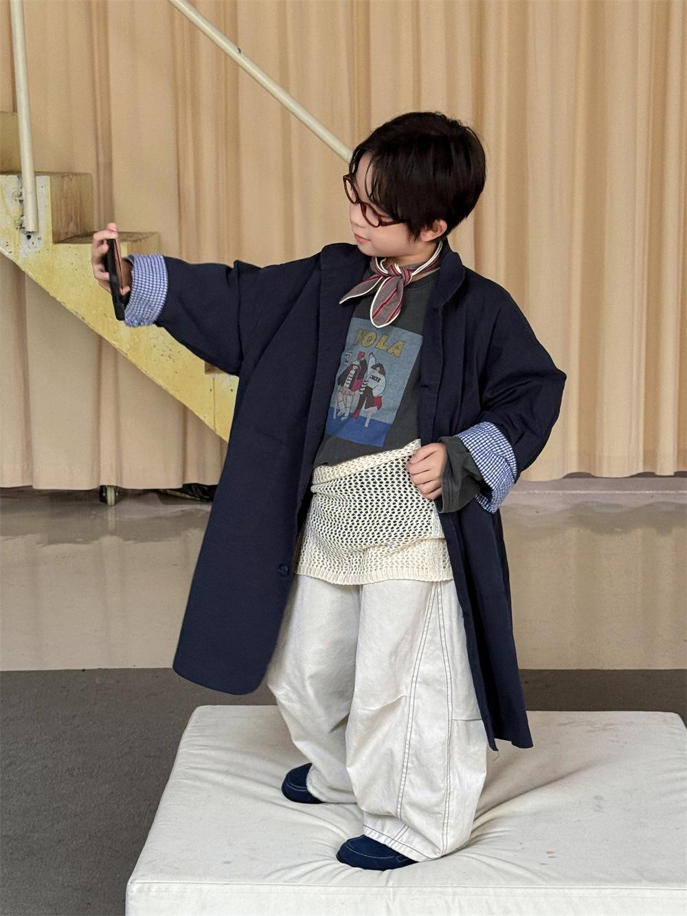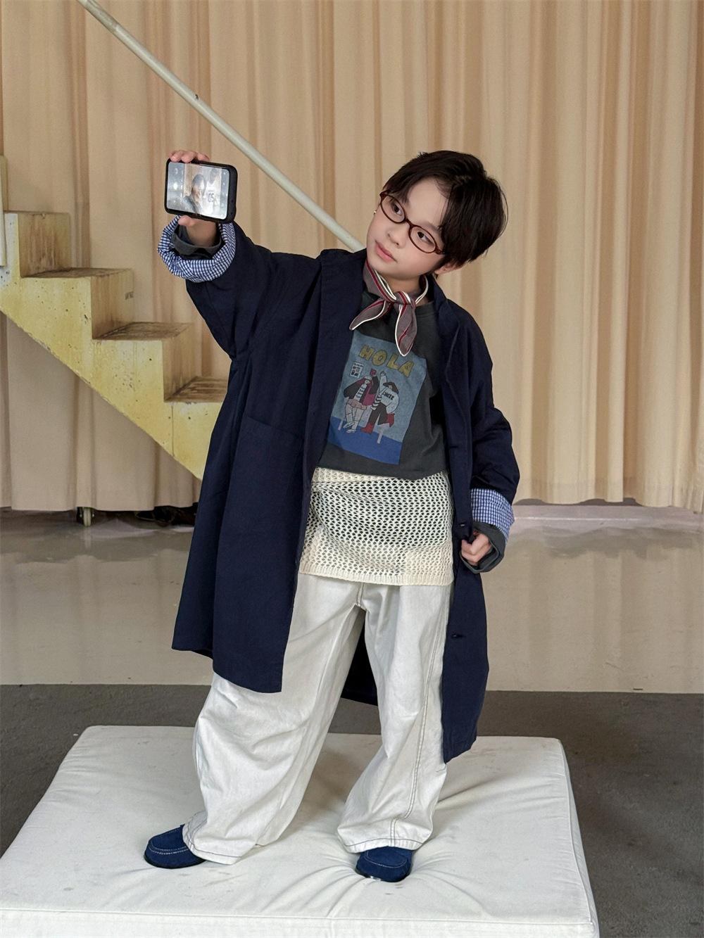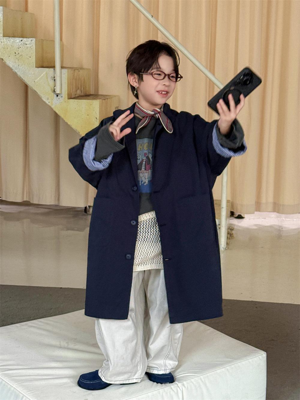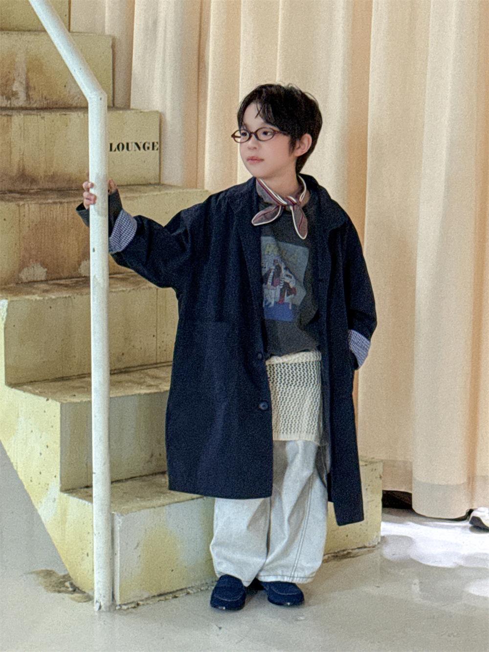 Cheese and Meow Ropa Infantil Abrigo Trench para Niño 2025 Otoño Nuevo Estilo Coreano Color Sólido Largo Abrigo Versátil para Niños Moderno