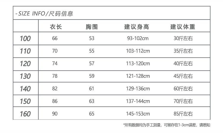 100cm, 110cm, 120cm, 130cm, 140cm, 150cm, 160cm