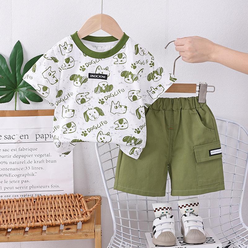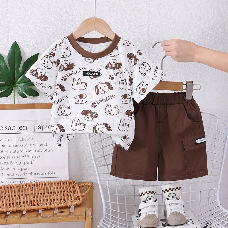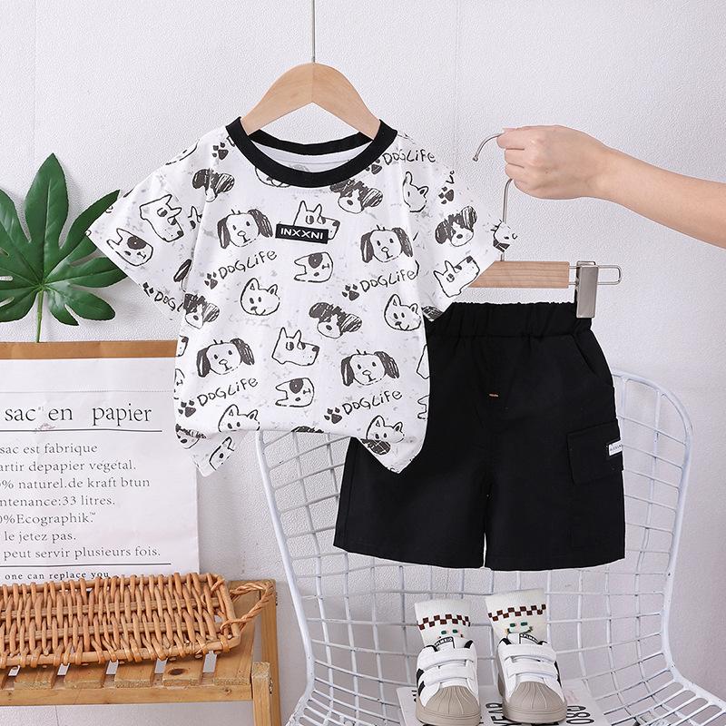Traje de ropa de verano para niños 2025 Nuevo Bebé Manga Corta Ropa Casual Guapo Pantalones Cortos de Verano para Niños Conjunto de Moda de Dos Piezas