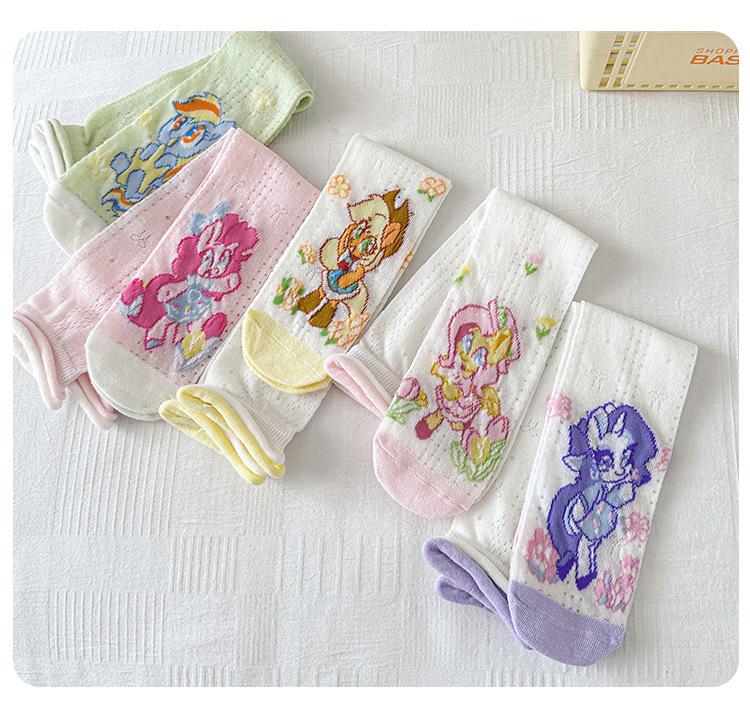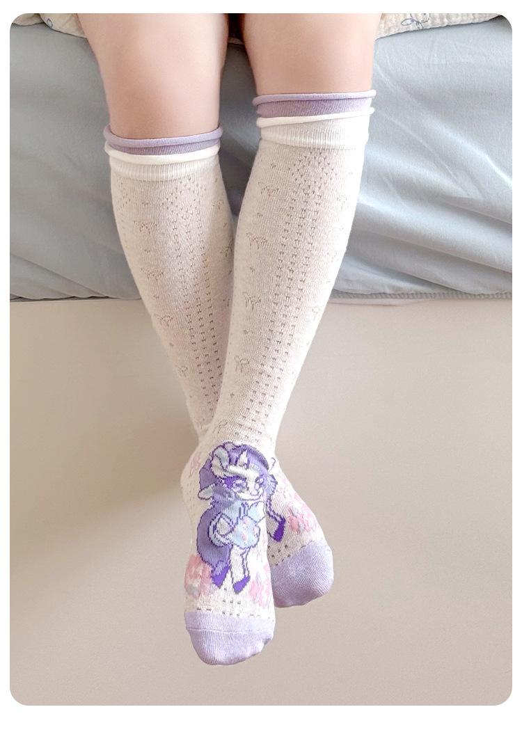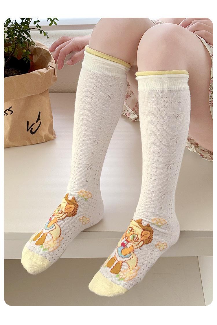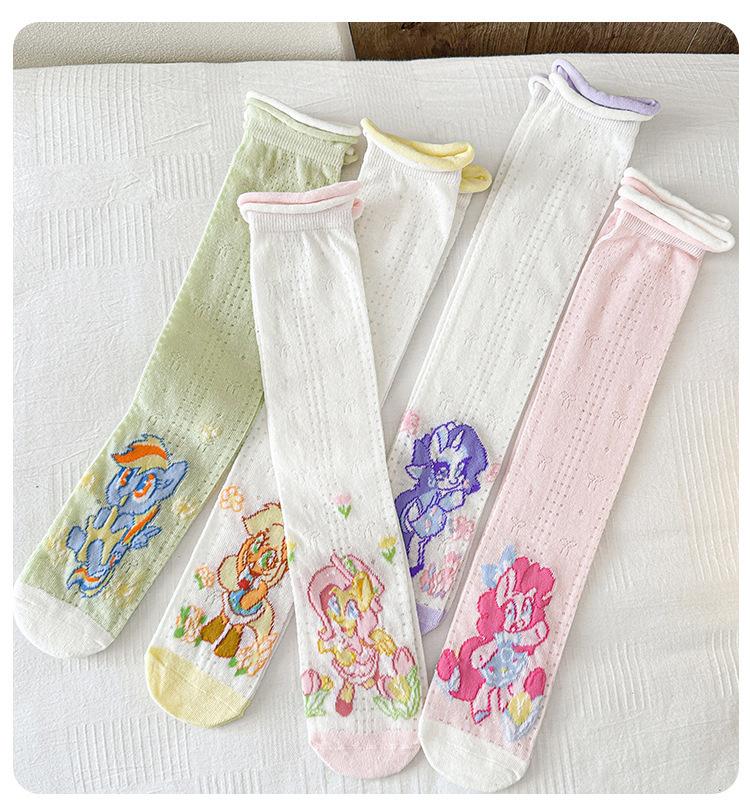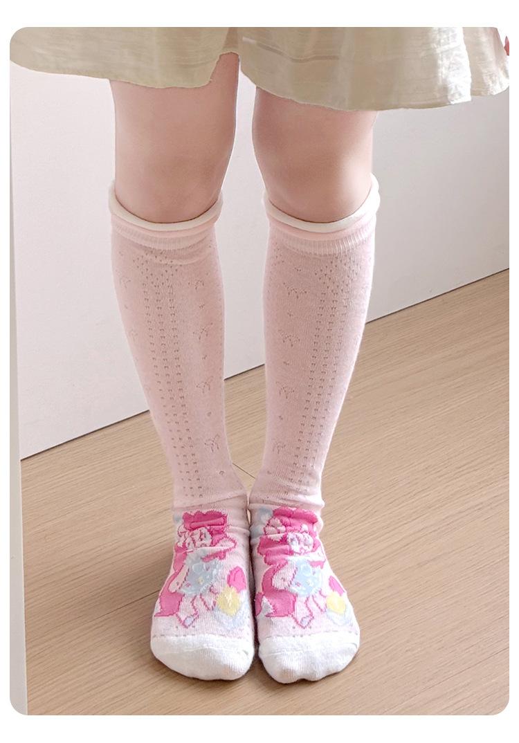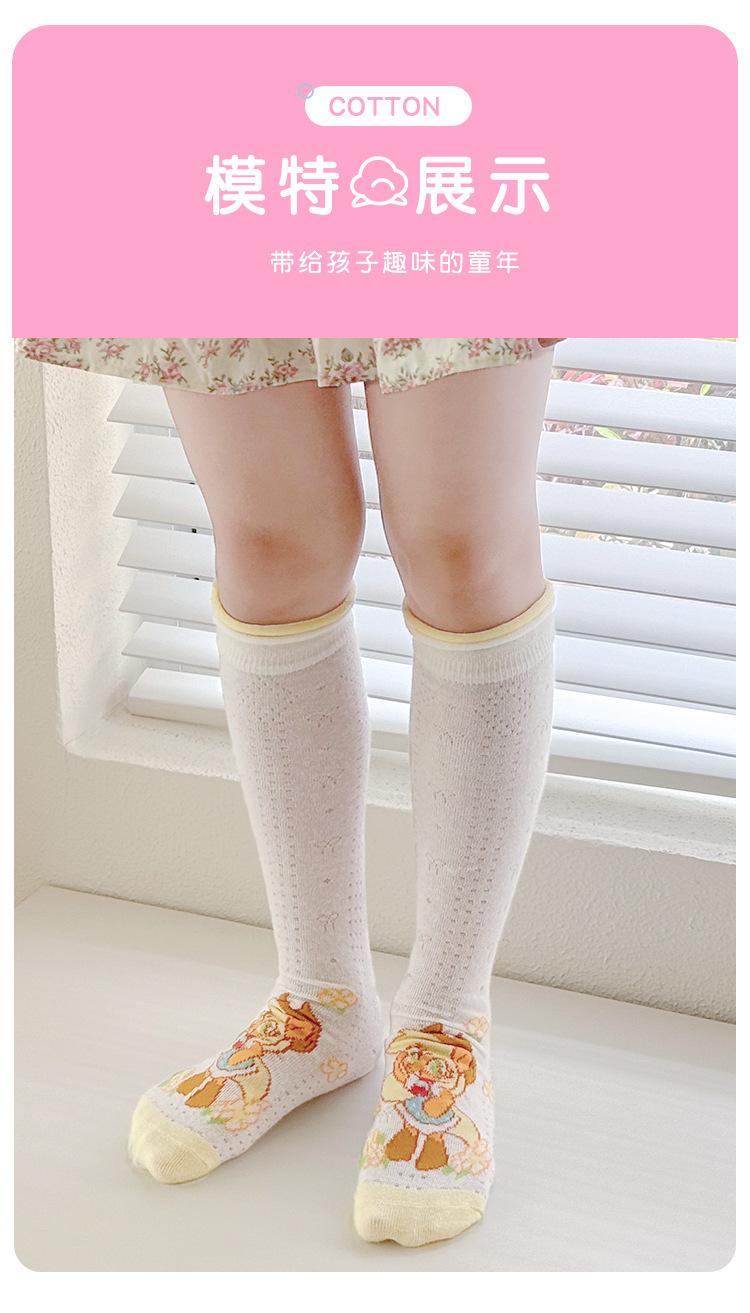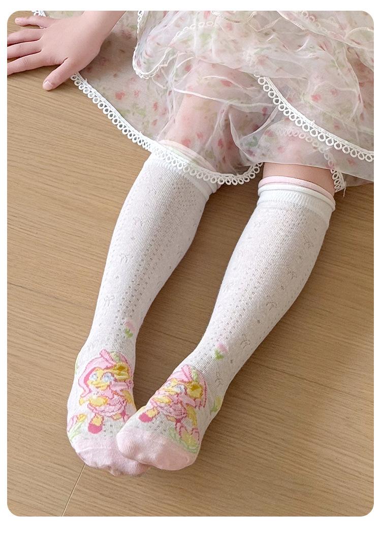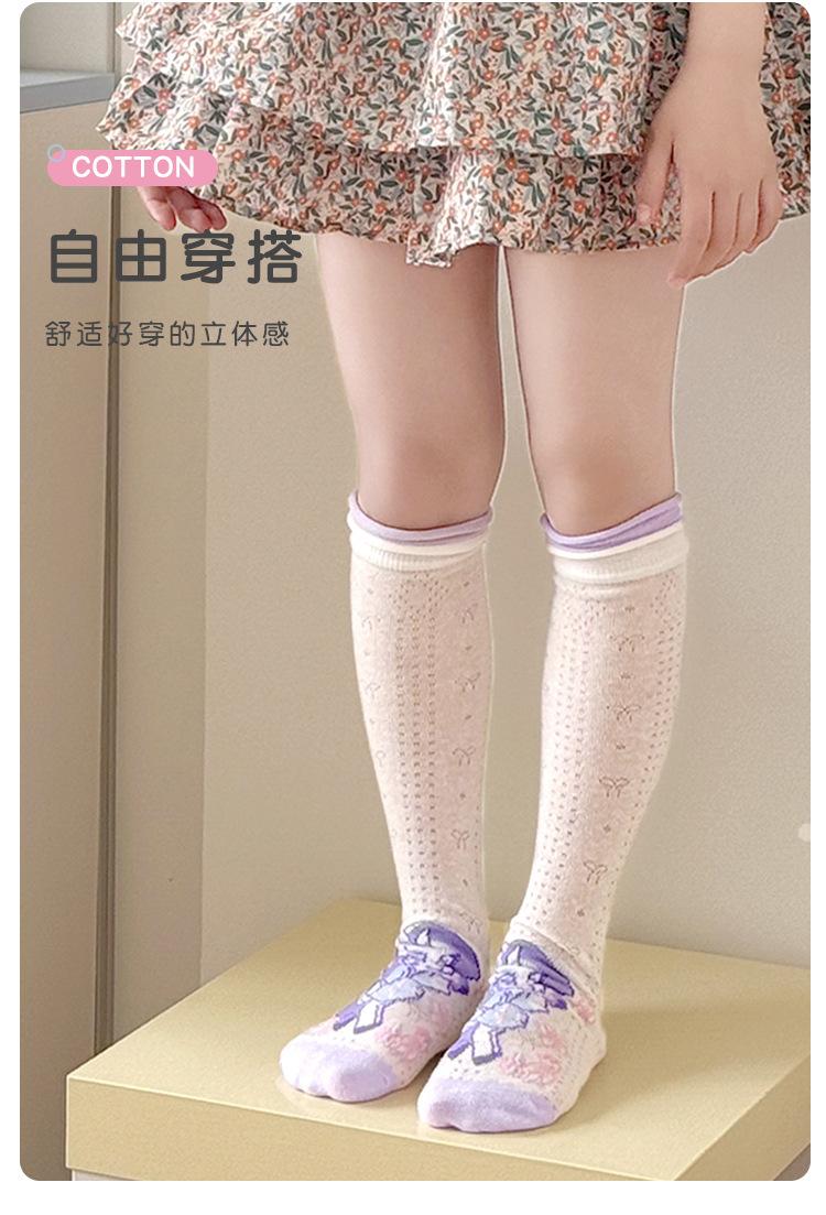 Calcetines de Verano hasta la Pantorrilla para Niñas, Calcetines Finos de Algodón con Dibujos Animados, Calcetines Lindos de Malla Transpirable para Niñas, Calcetines Antimosquitos de Tubo Largo