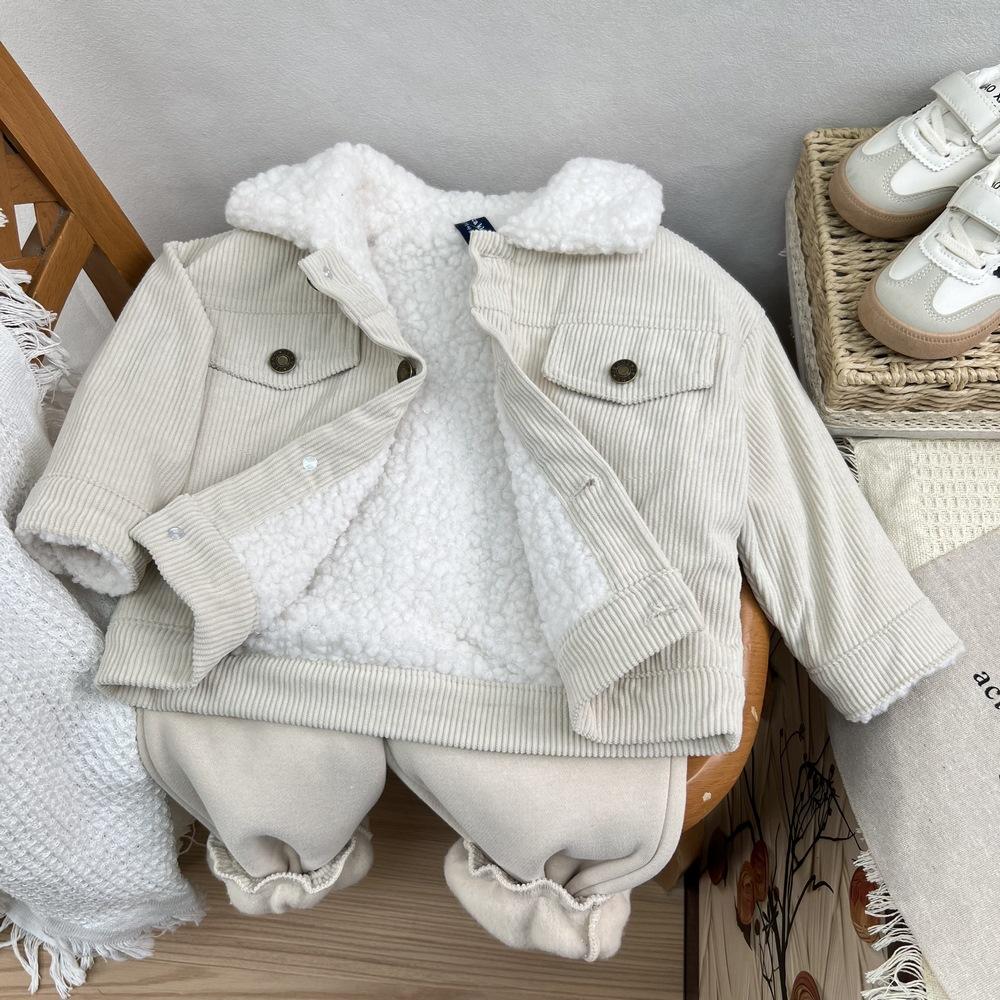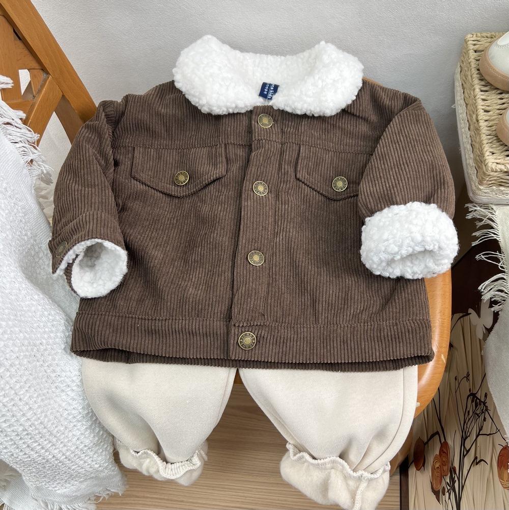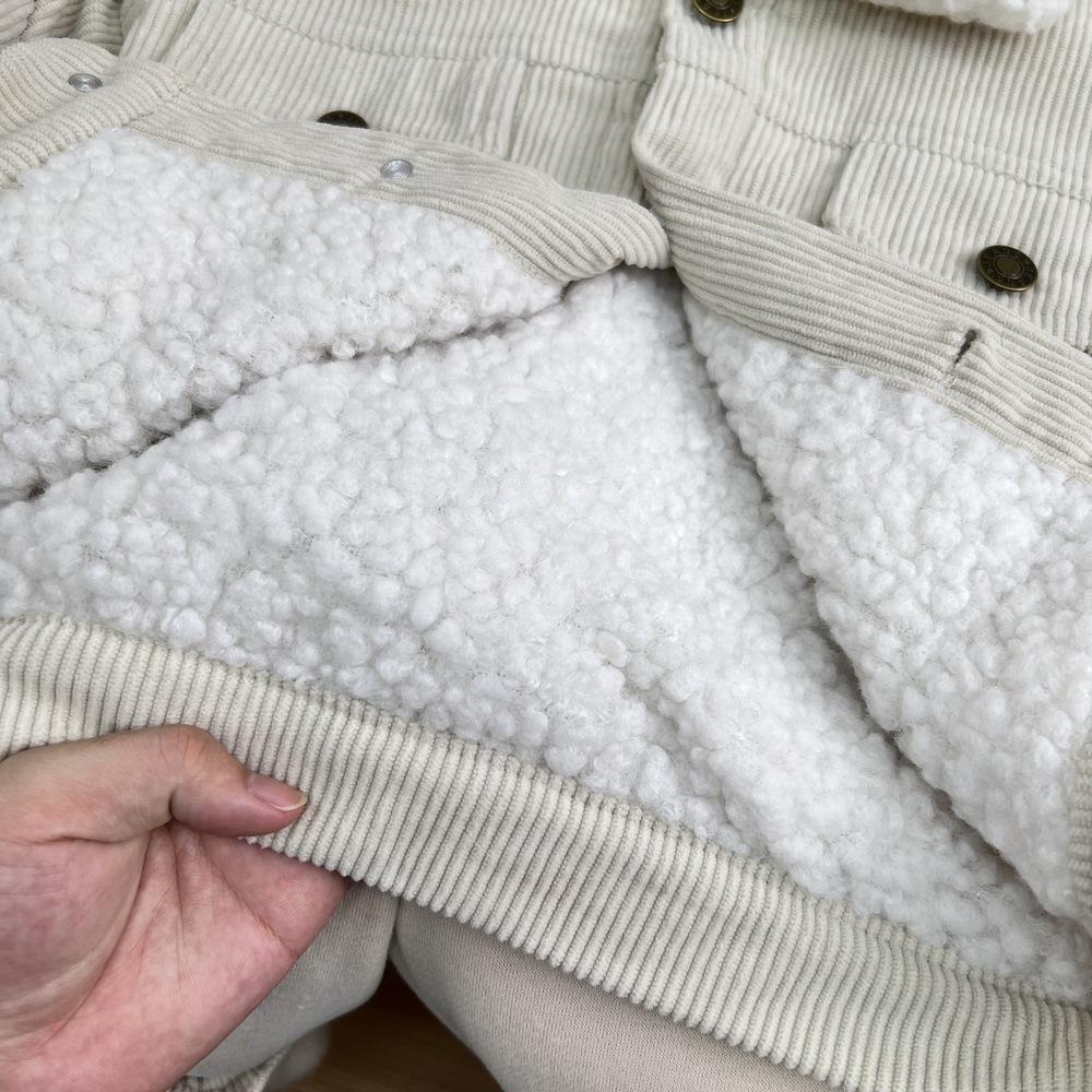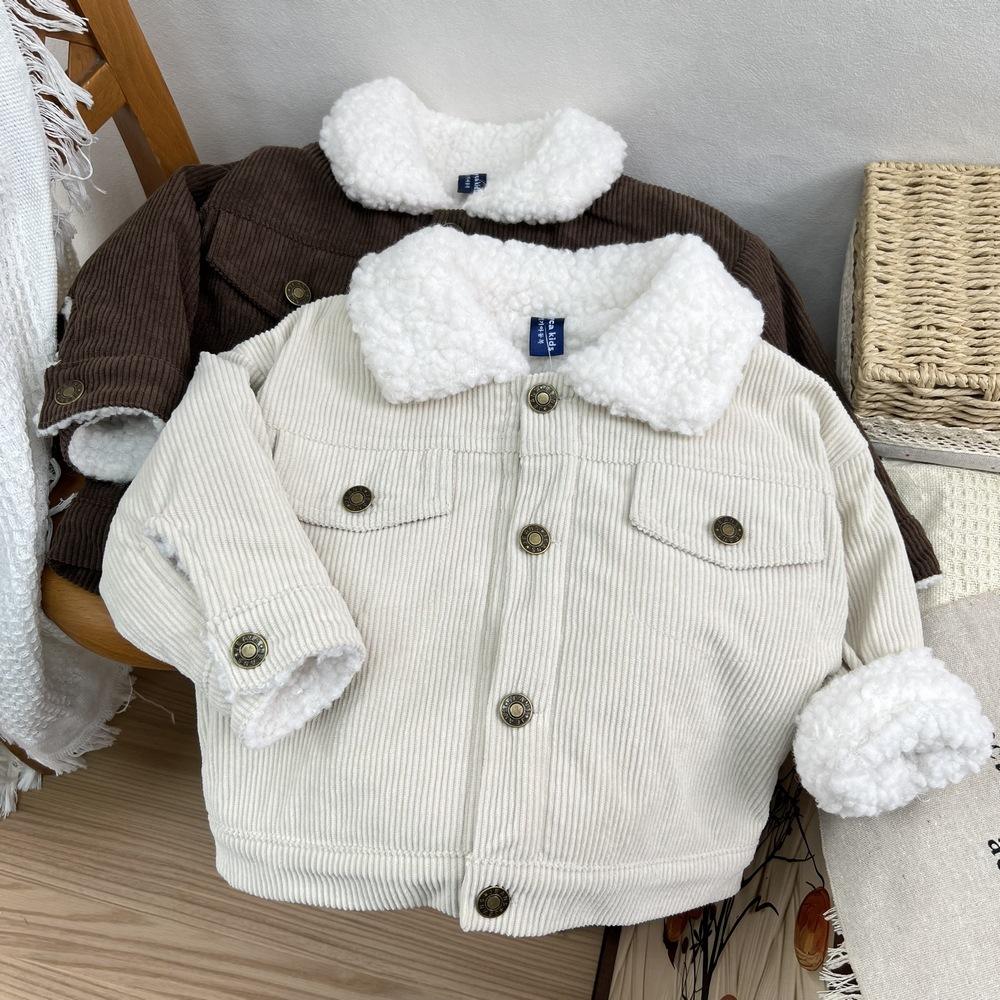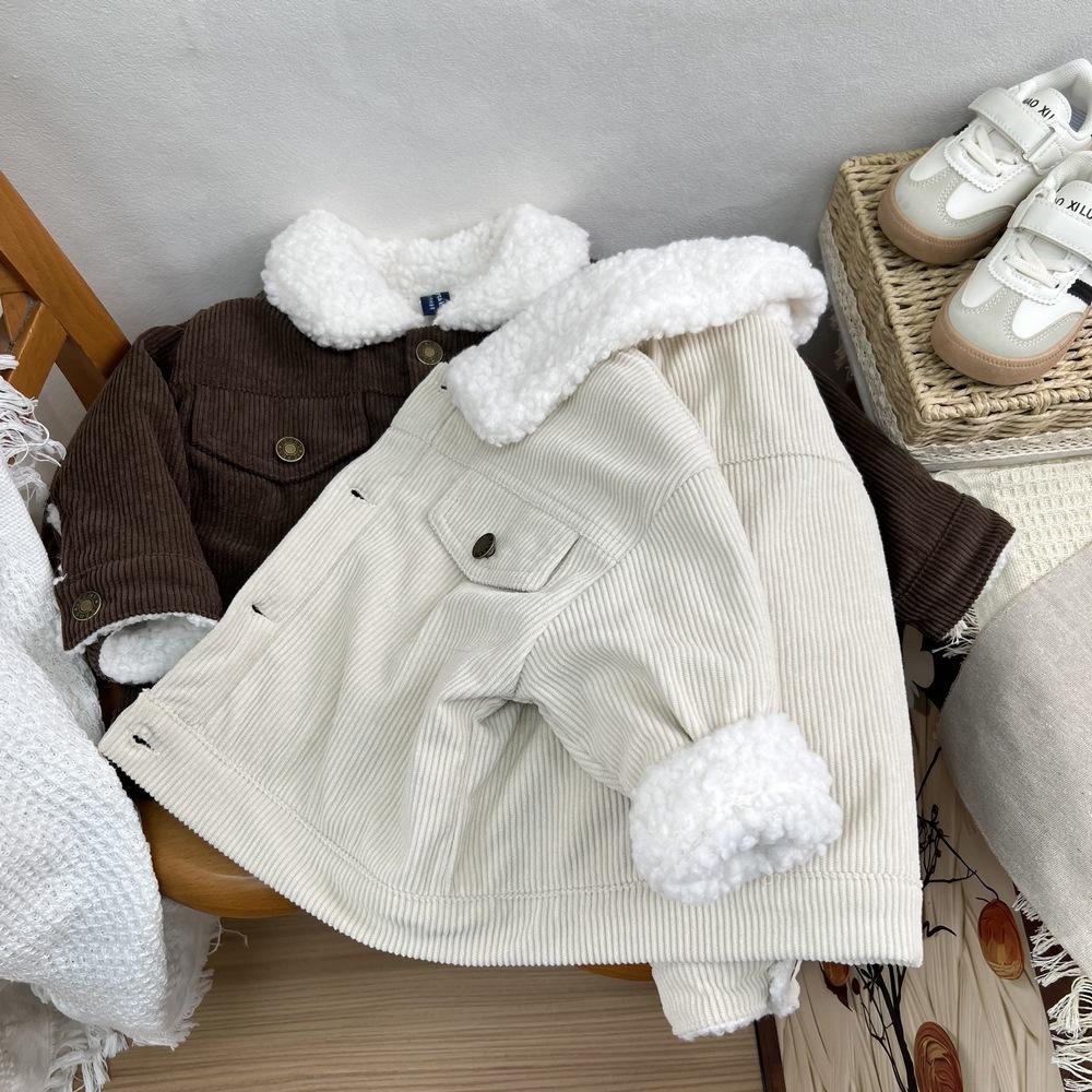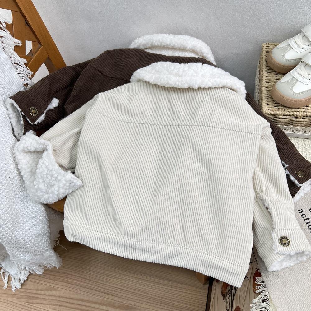 Cárdigan de algodón para niños estilo coreano ins con forro polar abrigo 2025 estilo otoño e invierno moda para niños y niñas cómodo chamarra gruesa con solapa