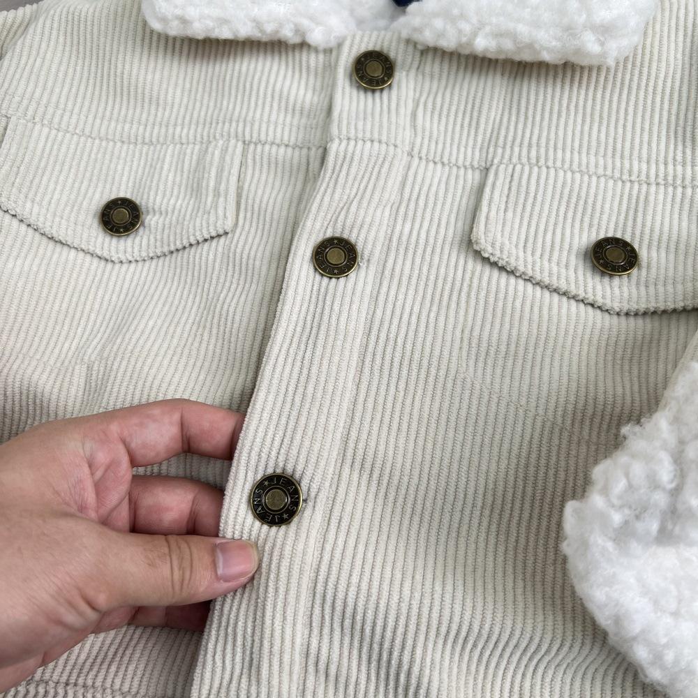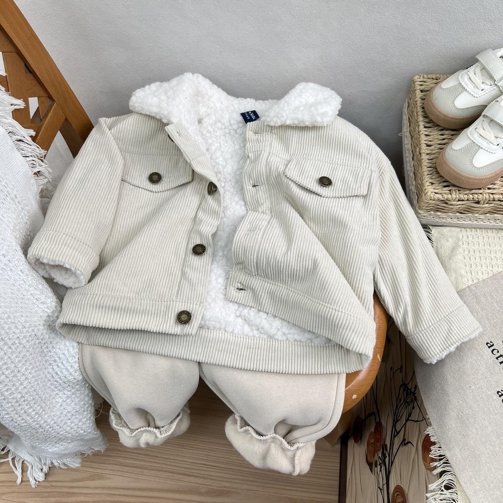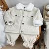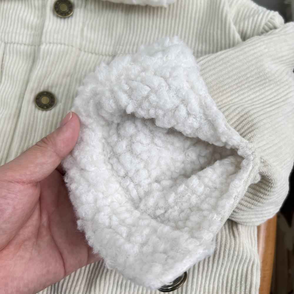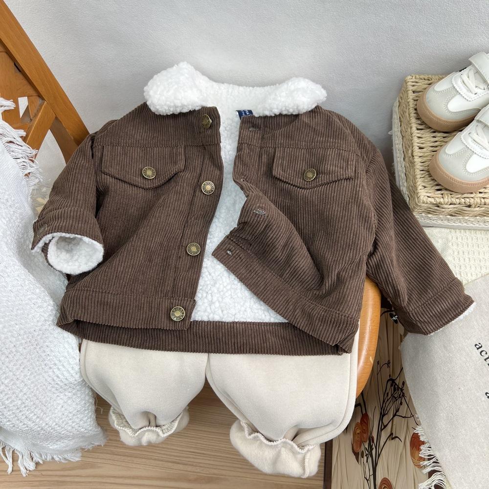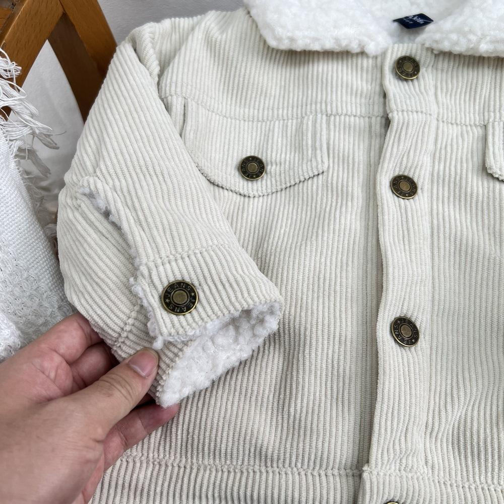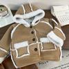 Cárdigan de algodón para niños estilo coreano ins con forro polar abrigo 2025 estilo otoño e invierno moda para niños y niñas cómodo chamarra gruesa con solapa