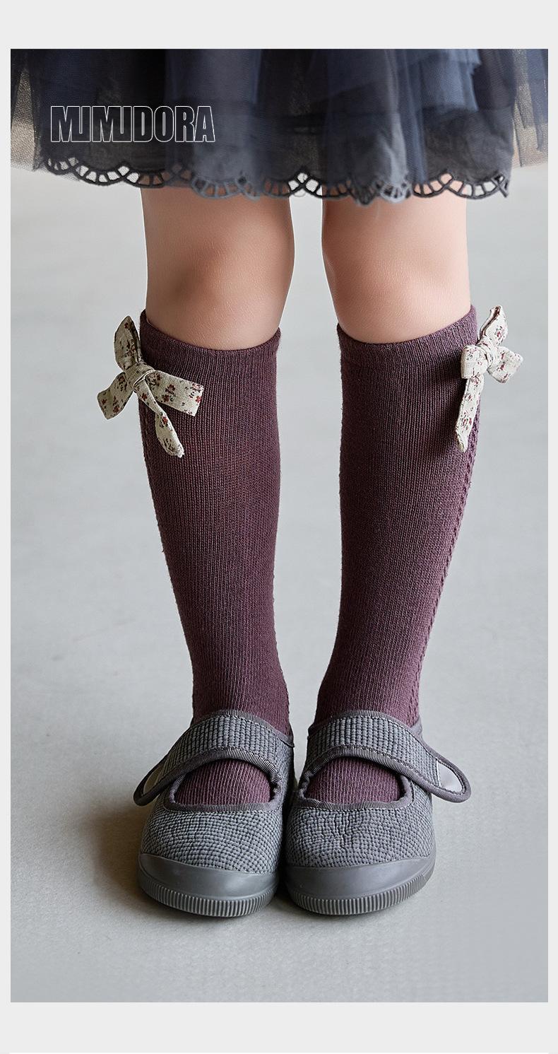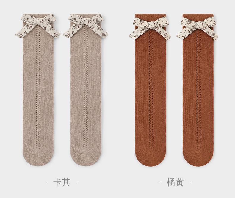 Calcetines para bebé otoño nuevo para niños algodón peinado color sólido calcetines media pantorrilla primavera y otoño niñas calcetines altos hasta la rodilla con lazo de moda