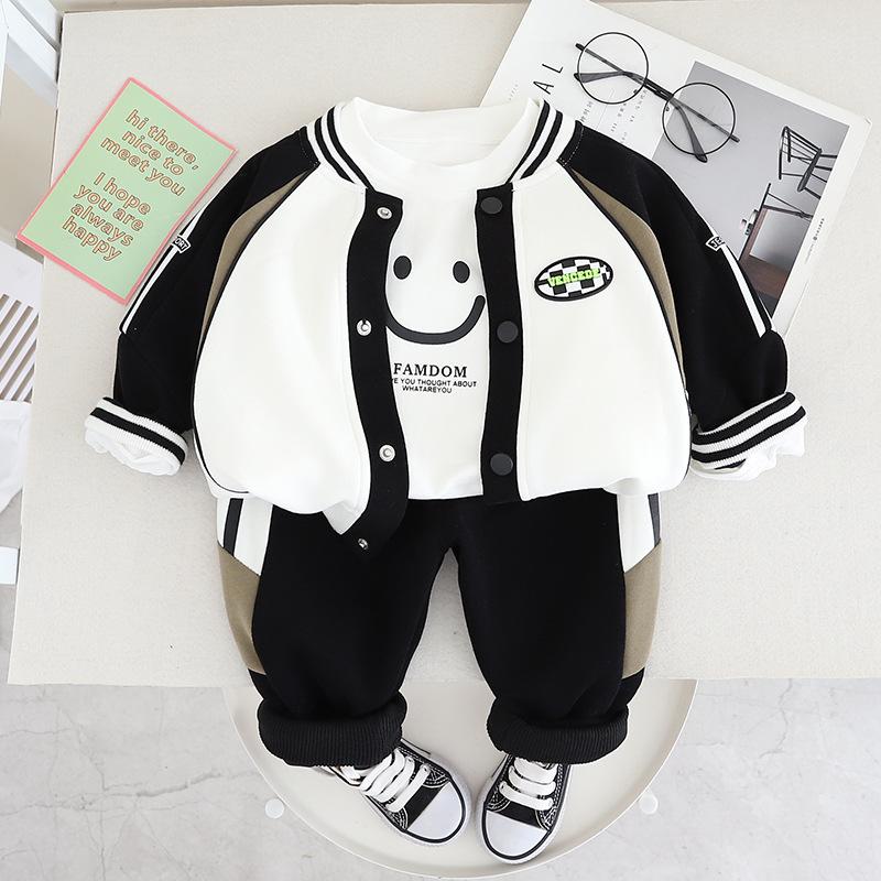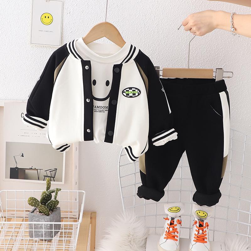 Traje cárdigan de otoño para niños 2023 Nuevo Ropa deportiva para bebés y niños de primavera y otoño Chaqueta casual para bebé Traje de tres piezas moda