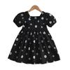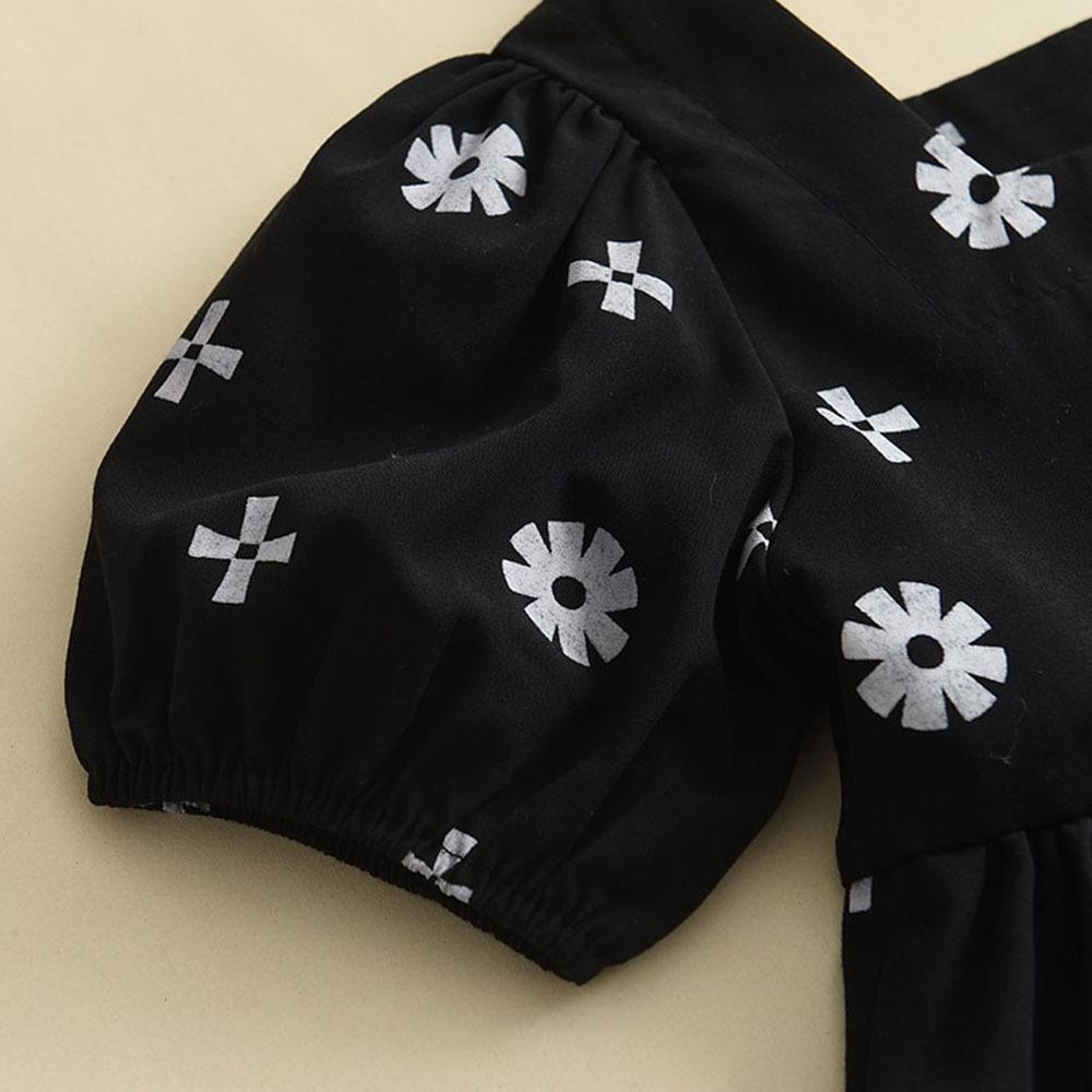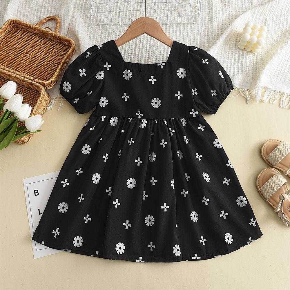 Vestido Nuevo de Verano Floral sin Espalda de Manga Corta para Niña Vestido Negro Pequeño Fresco y a la Moda para Niños Vestido de Bebé Verano