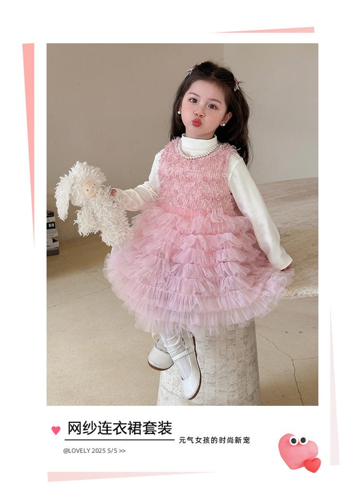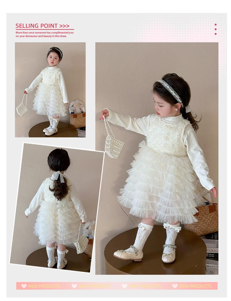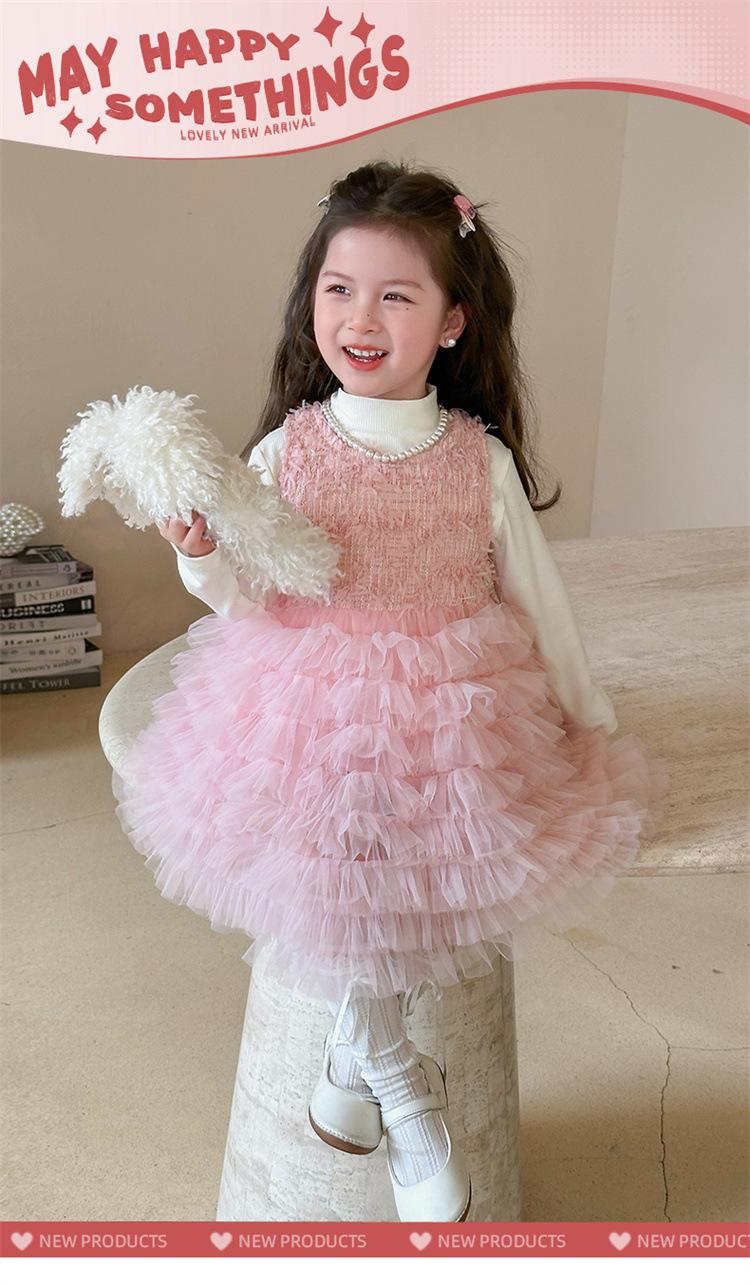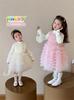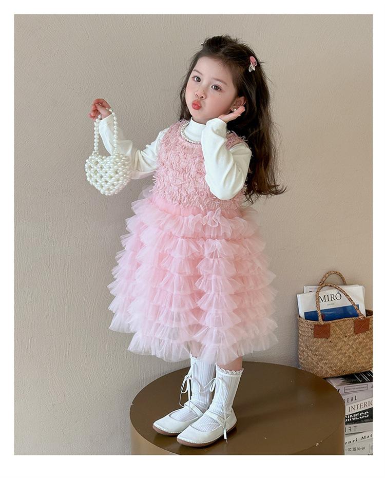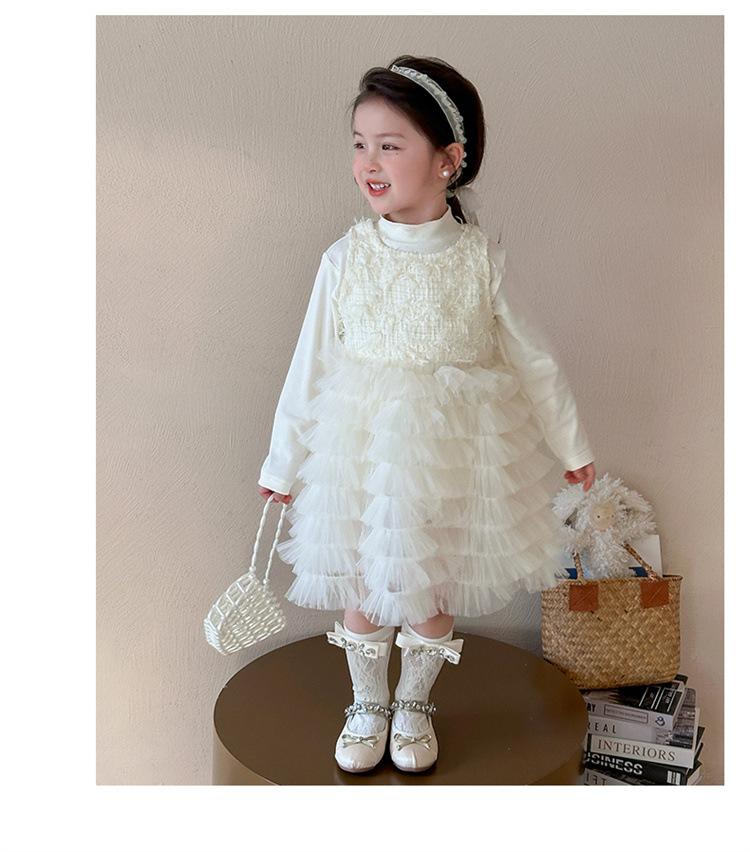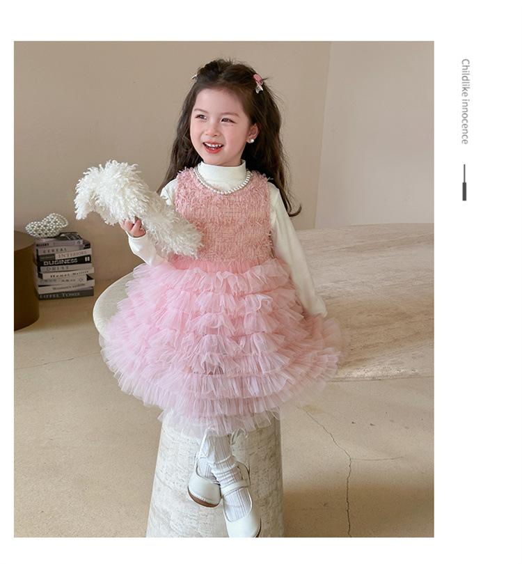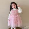 Vestido de niña Primavera y Otoño 2025 Nuevo Estilo Vestido de Princesa con Chaleco de Malla para Niños Vestido de Cumpleaños para Bebé