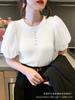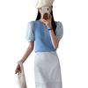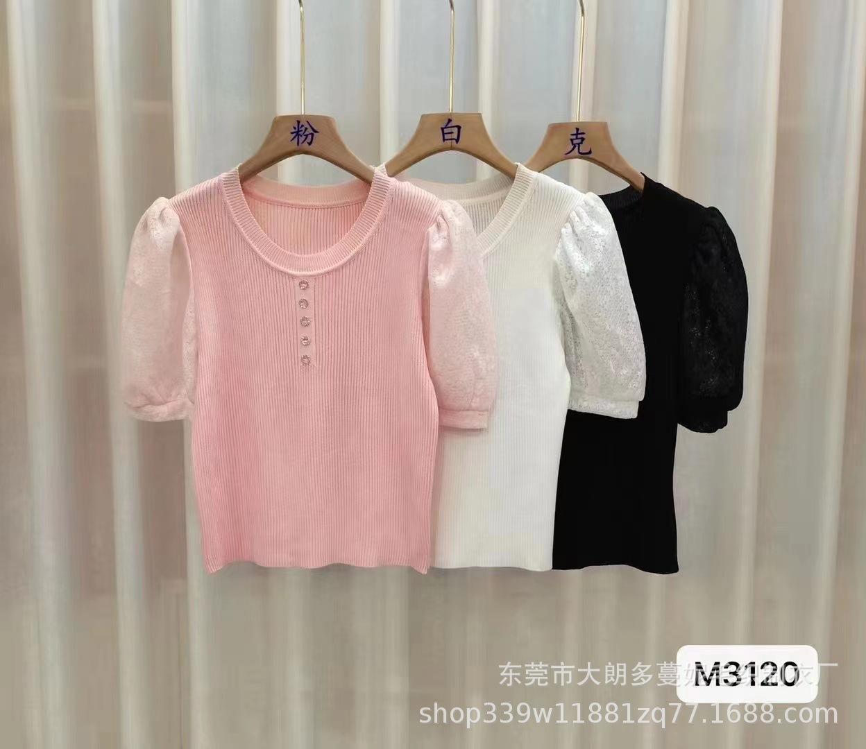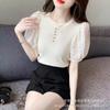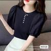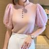 Dulce Tejido de Malla de Manga Corta para Mujer Verano Nuevo Elegante Camiseta de Señora Top Delgado de Manga Abullonada