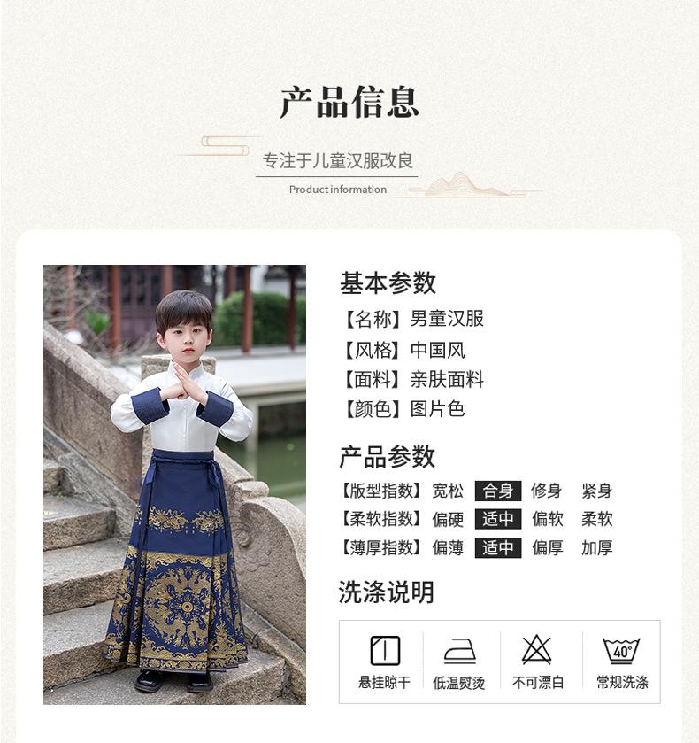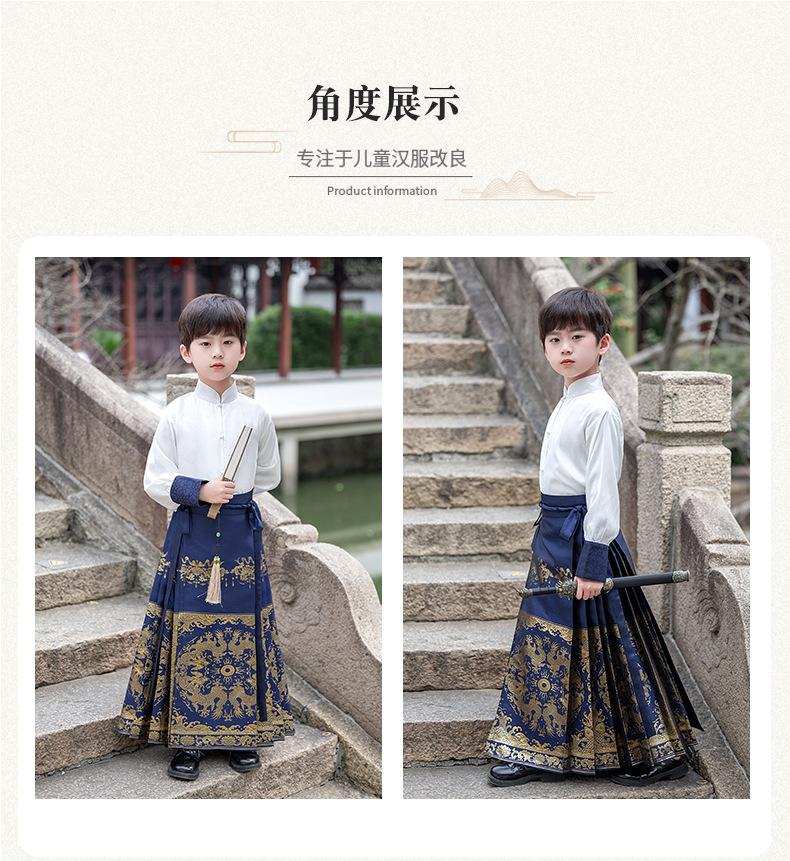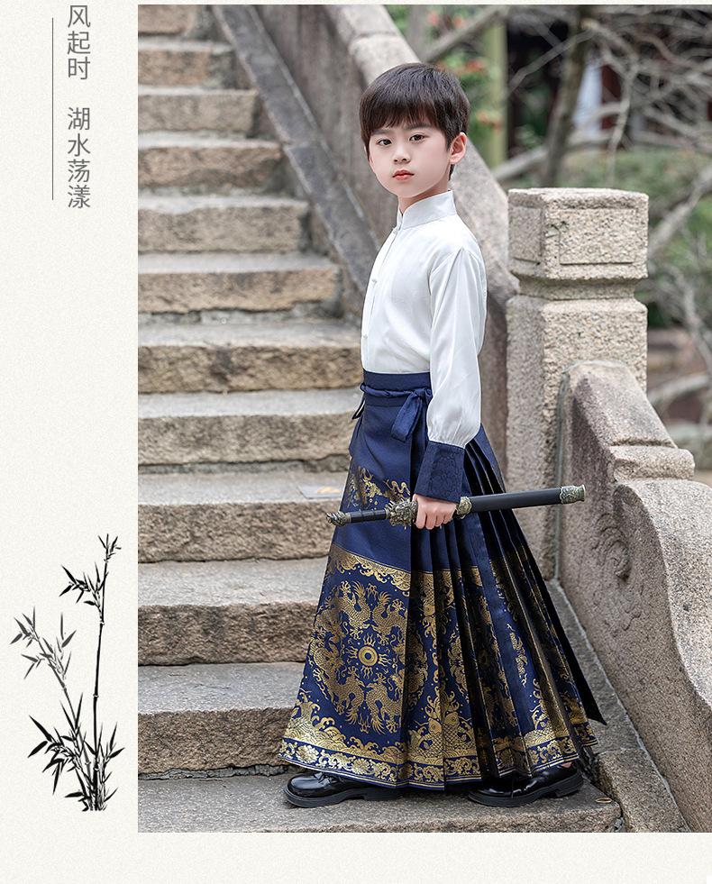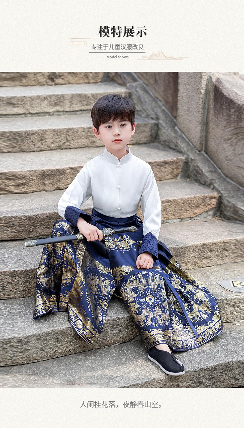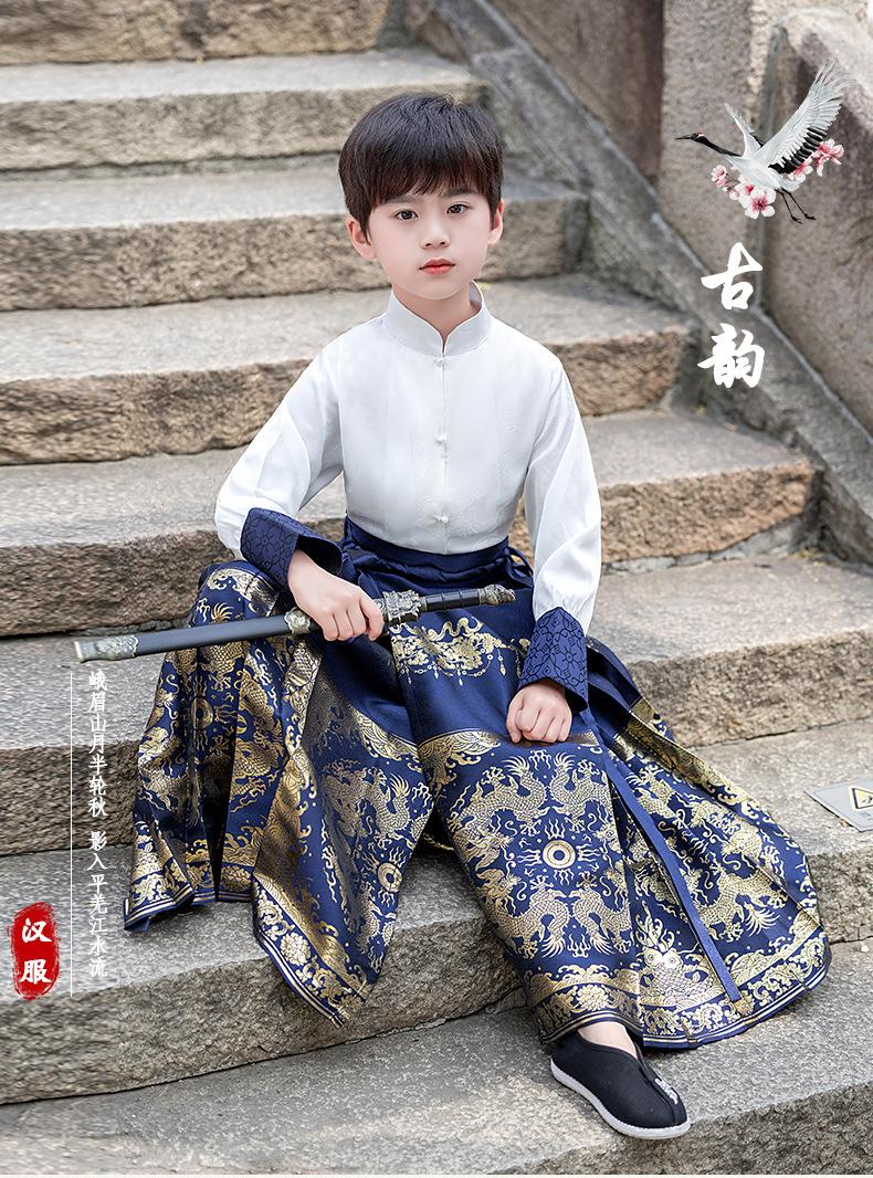 Falda de cara de caballo para niños Ropa de joven maestro para niños Ropa de actuación escénica para niños de secundaria Trajes antiguos para niños Hanfu Traje Tang