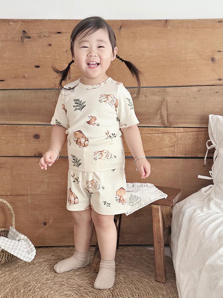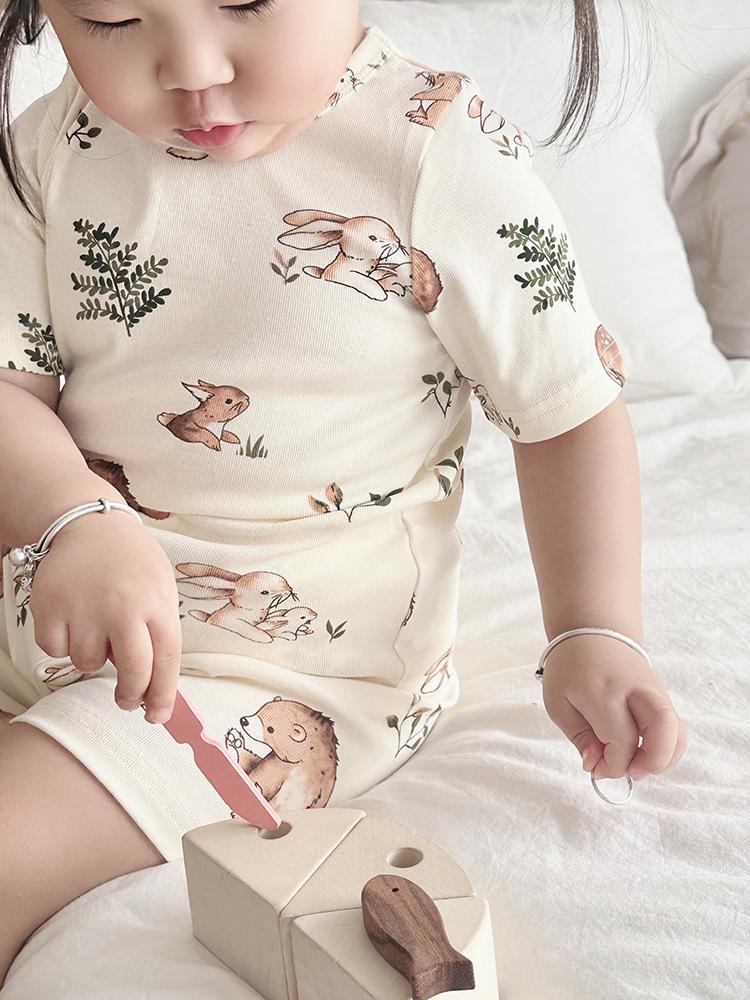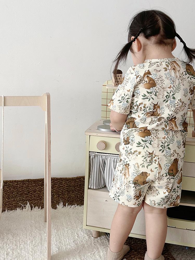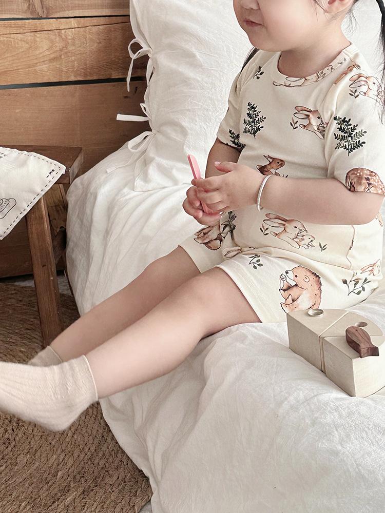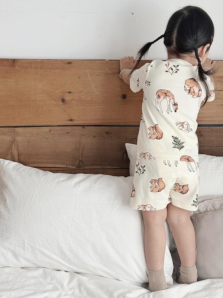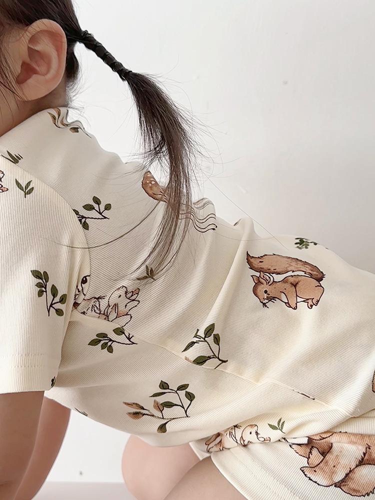 Pijamas de Verano para Niños Xg Estilo Escandinavo Niñas Lindas Ropa para el Hogar para Bebés Algodón Puro Manga Corta Conjunto de Pijama de Verano para Niños