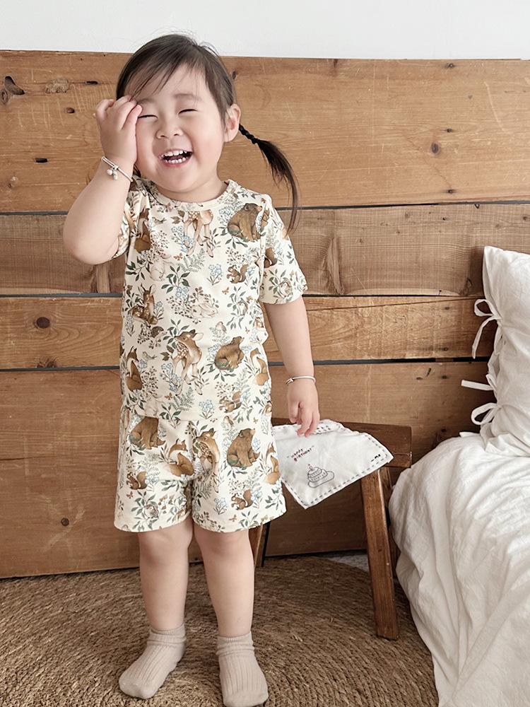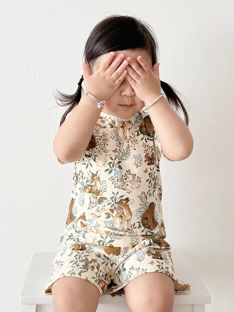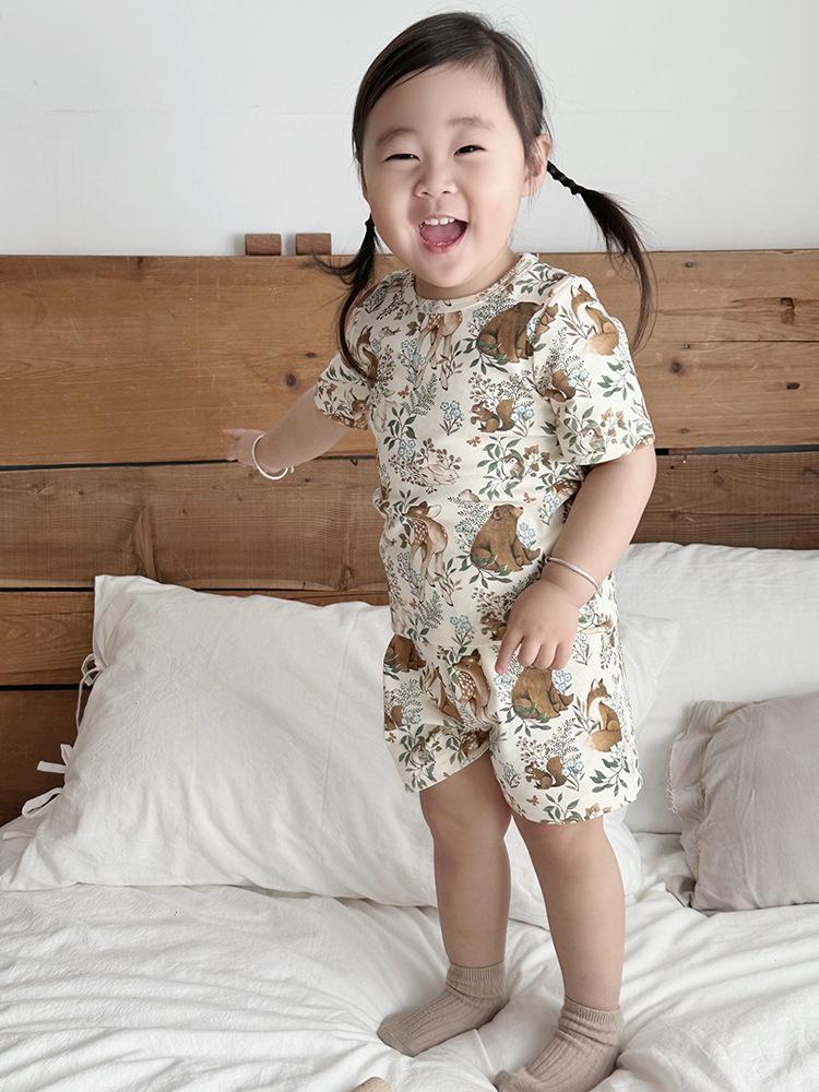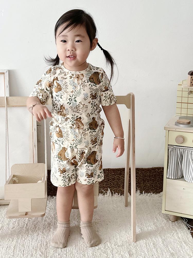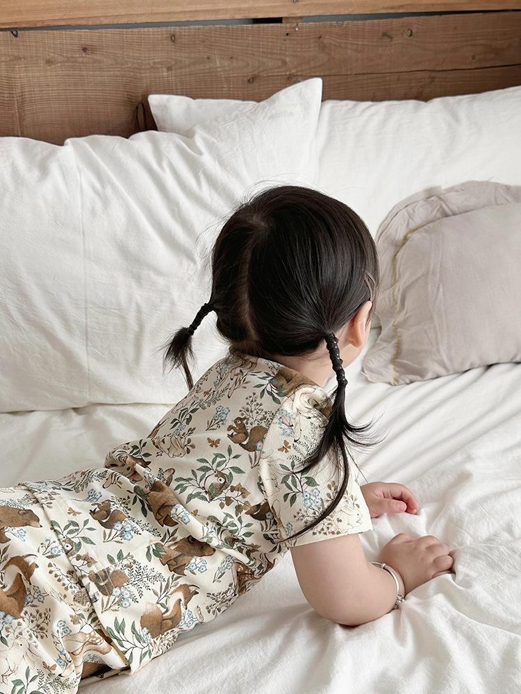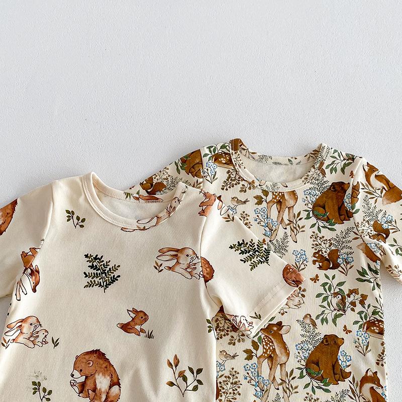 Pijamas de Verano para Niños Xg Estilo Escandinavo Niñas Lindas Ropa para el Hogar para Bebés Algodón Puro Manga Corta Conjunto de Pijama de Verano para Niños