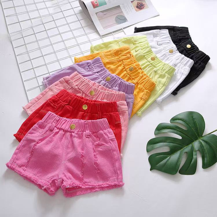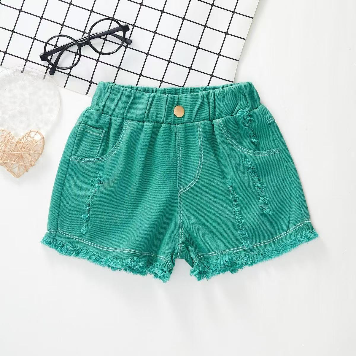 Shorts de mezclilla de verano para niñas Ropa exterior Negro Blanco Rotos Nuevo Versión coreana Algodón puro fino para niños mayores