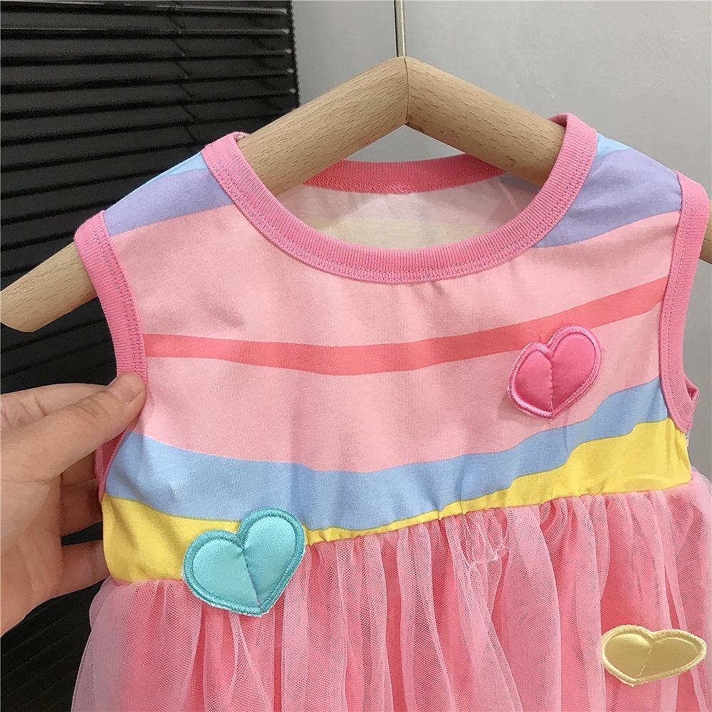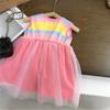 Vestido de niña Verano Nuevo Elegante Vestido de Gasa con Costuras sin Mangas para Niños Vestido de Verano Moderno para Bebé Vestido de Princesa Comercio Exterior