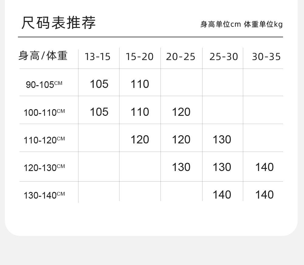 90cm, 100cm, 110cm, 120cm, 130cm, 140cm