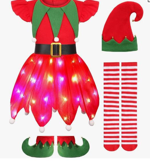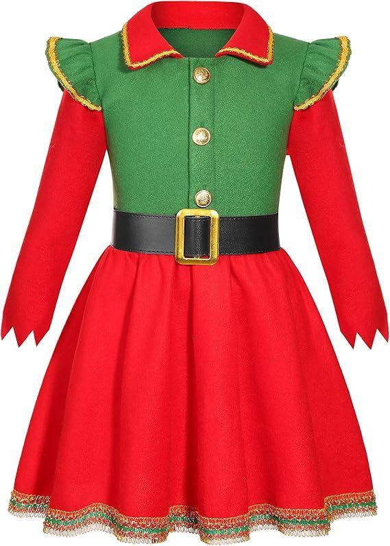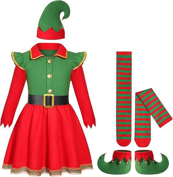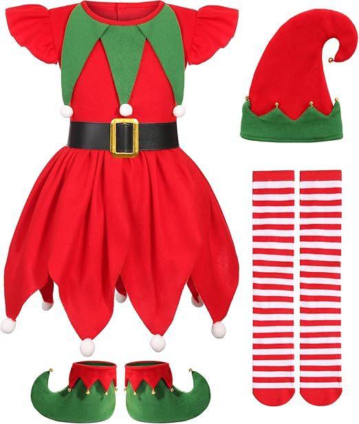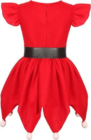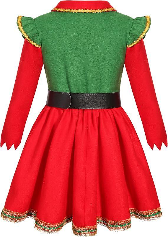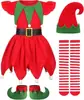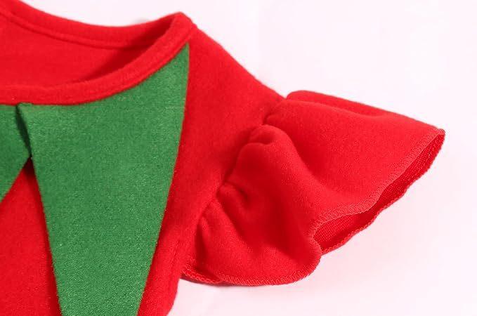 Disfraz de Elfo Navideño Rojo para Niña Disfraz de Ayudante de Santa Sombrero de Elfo para Niña Vestido de Papá Noel
