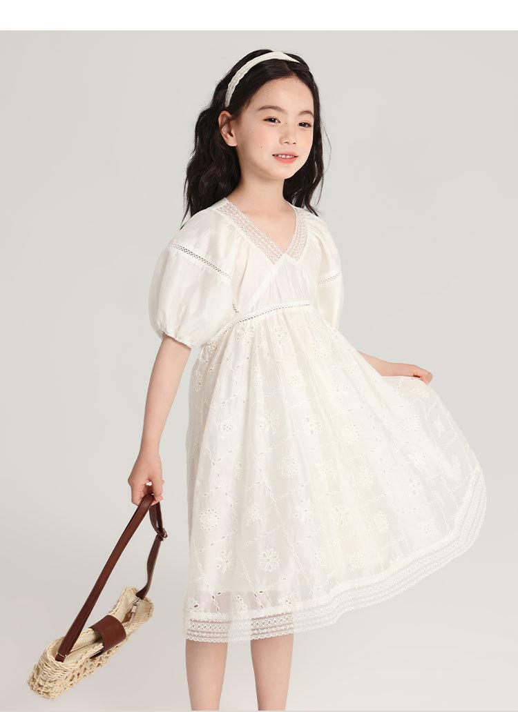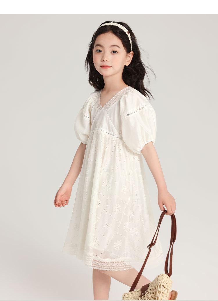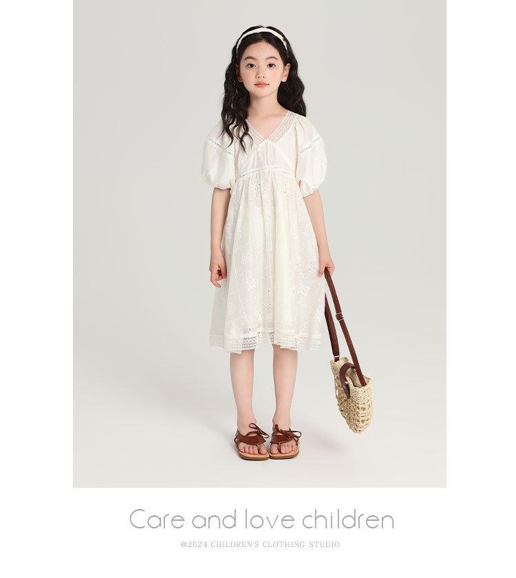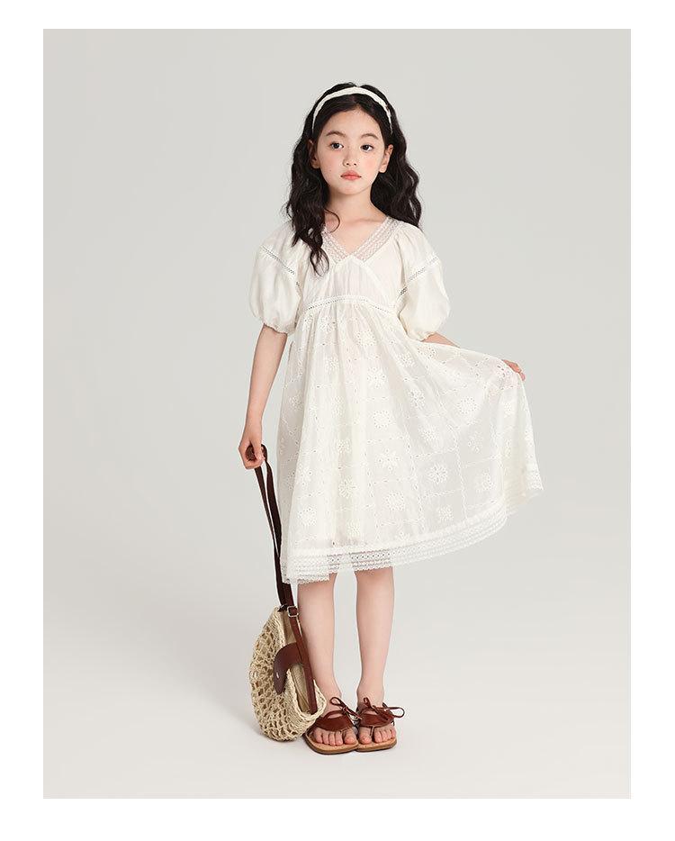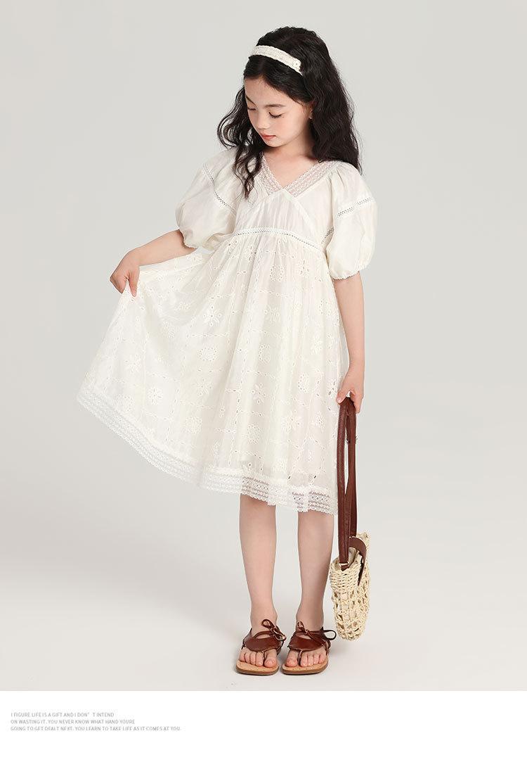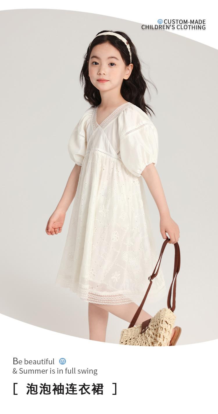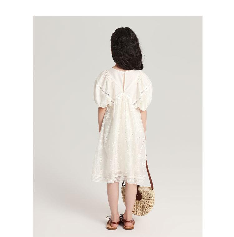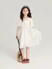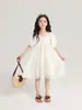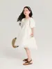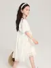Pudding Haru Ropa para Niños Ropa de Verano Estilo para Niñas Falda 2025 Nuevo Vestido de Encaje con Manga Abullonada para Niños