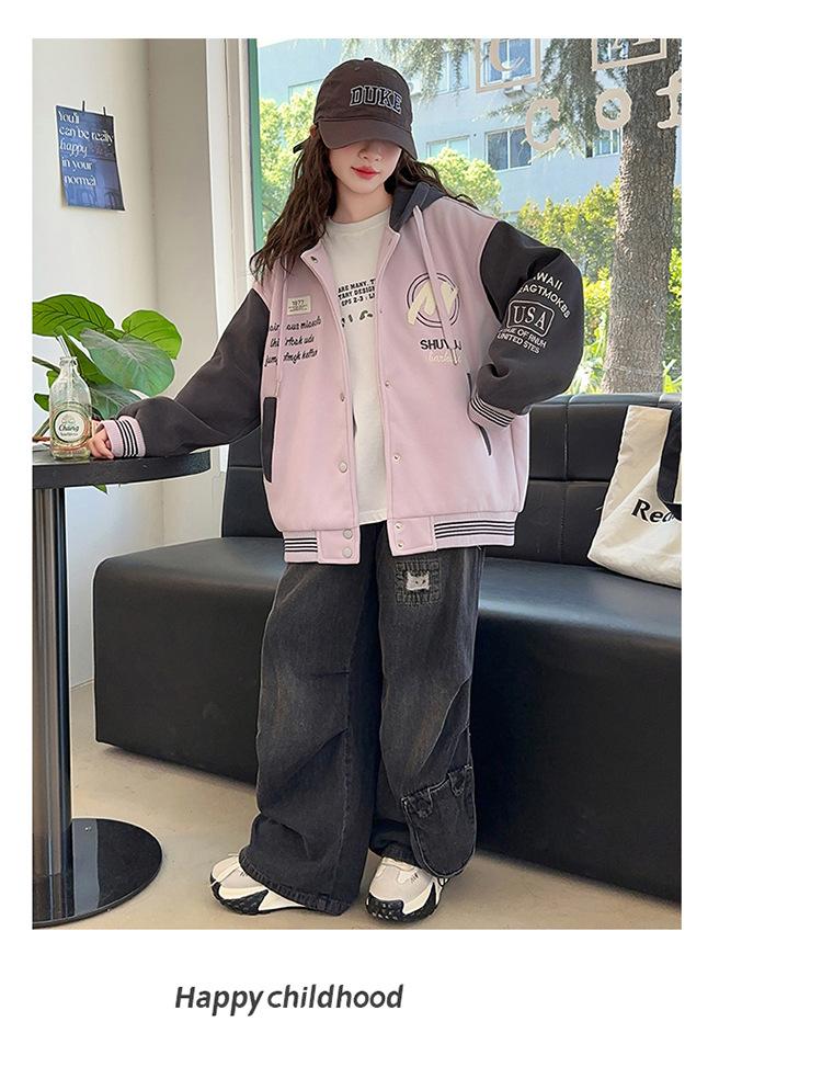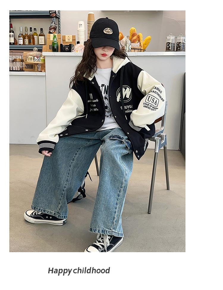 Abrigo para Niñas Primavera y Otoño 2024 Nuevo Ropa de Otoño de Moda para Niñas Estilo Occidental Ropa de Béisbol con Capucha de Otoño para Niñas Trendy