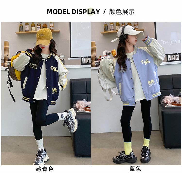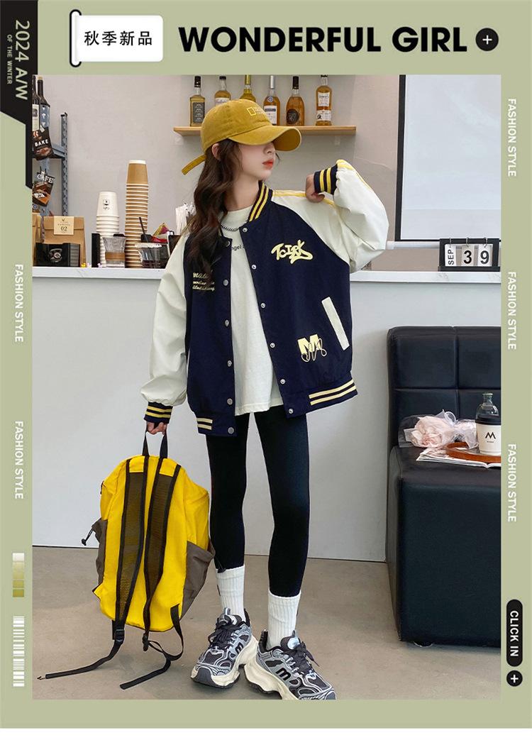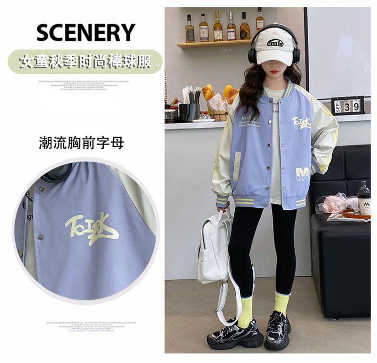 Chaqueta de béisbol para niña Primavera y Otoño 2024 Nuevo Estilo Occidental Top de Otoño para Niños Chaqueta de Otoño para Niños Medianos-Grandes Moderna