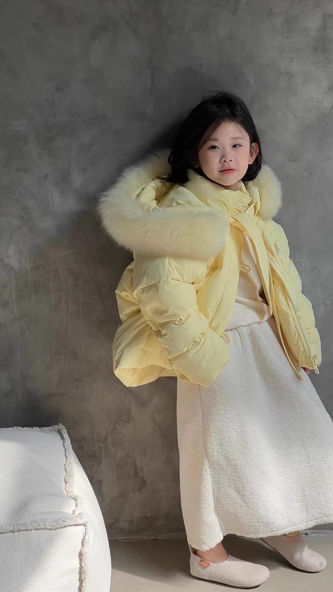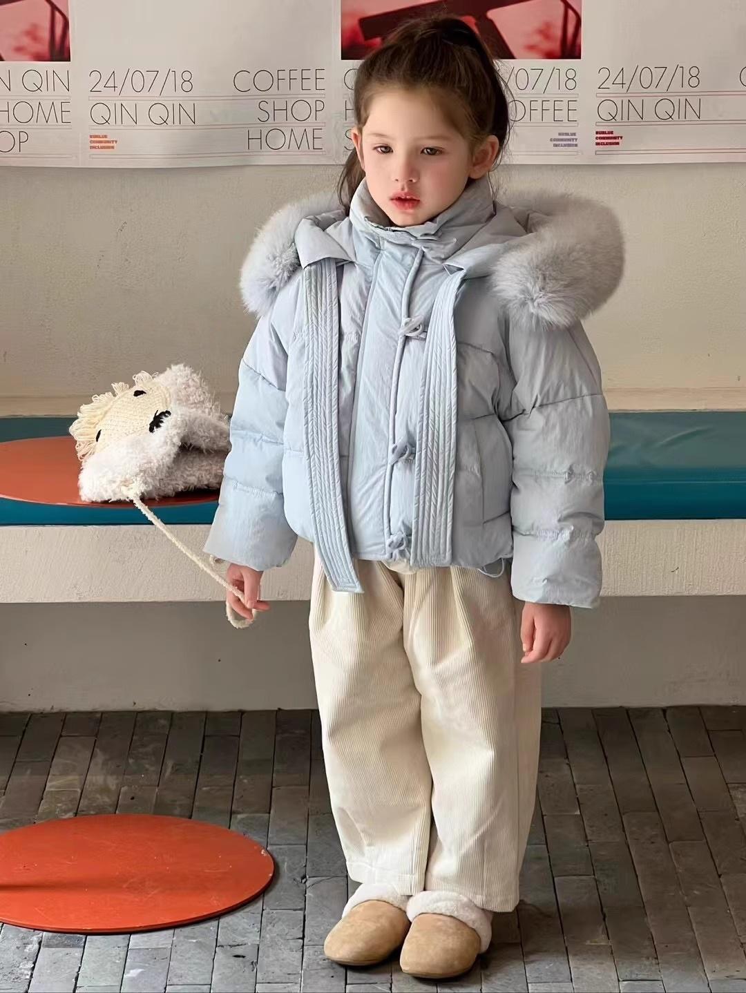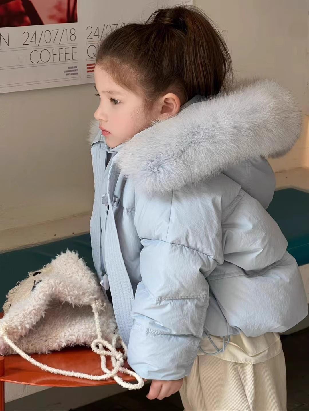 [Cuello de Piel Grande Desmontable] Chaquetas de Invierno para Niños, Chaquetas de Pluma para Niños Medianos y Grandes, Elegantes Chaquetas de Algodón