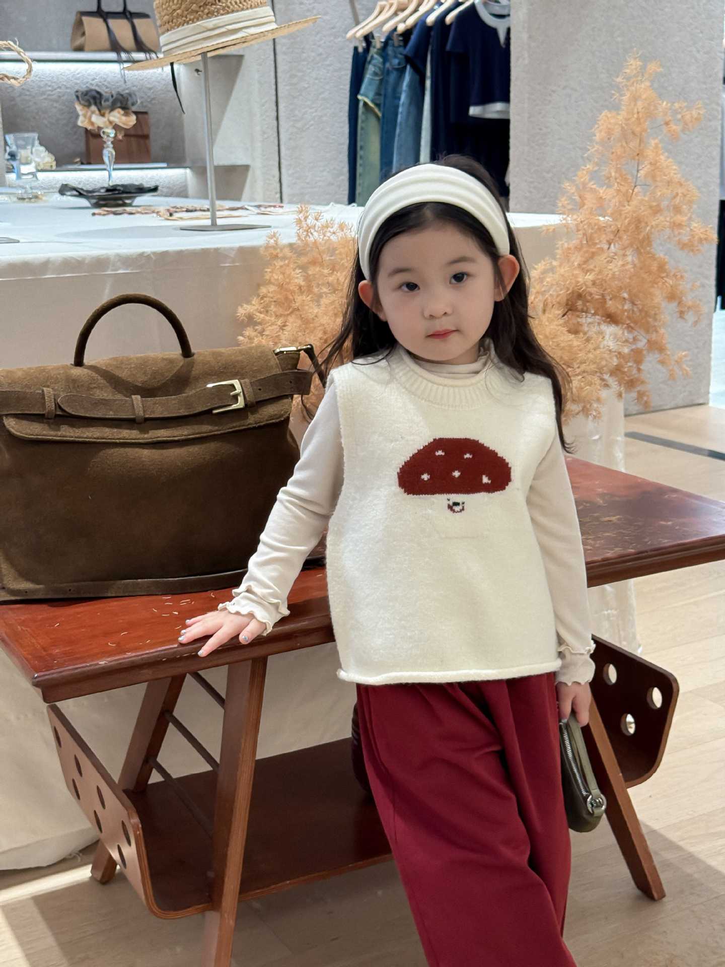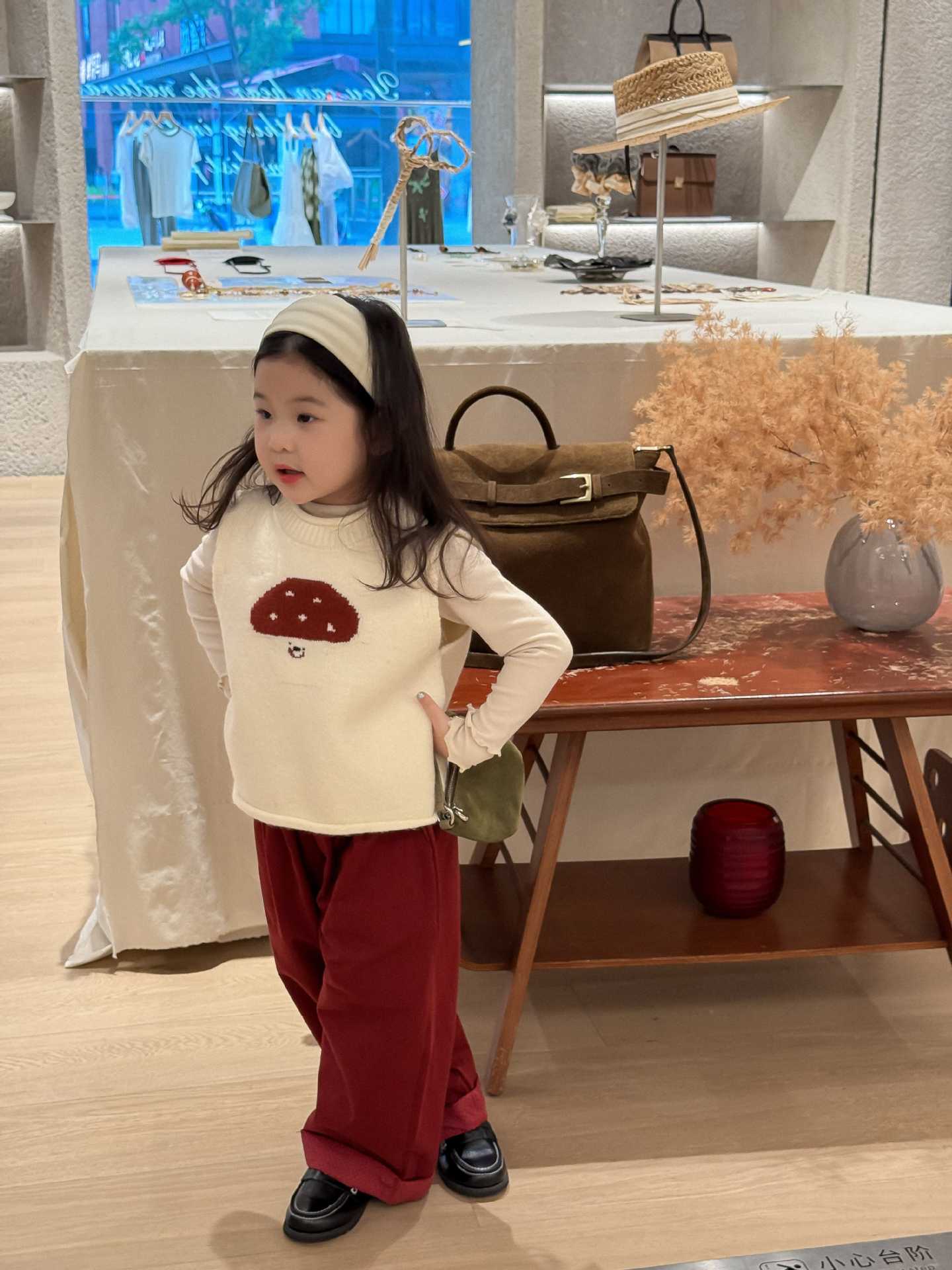 Ropa Nueva de Otoño 2025 para Niños Ropa Infantil Estilo Coreano Ropa para Niñas Lindo Chaleco de Punto de Hongo Chaleco Tejido para Niños