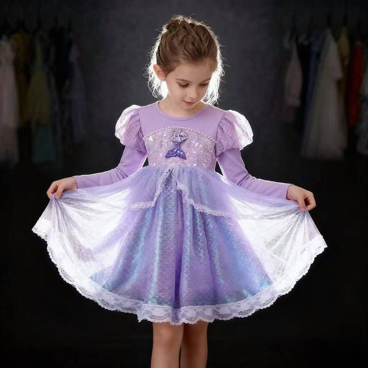 Long Sleeve/Violet/Mermaid/Princess Dress