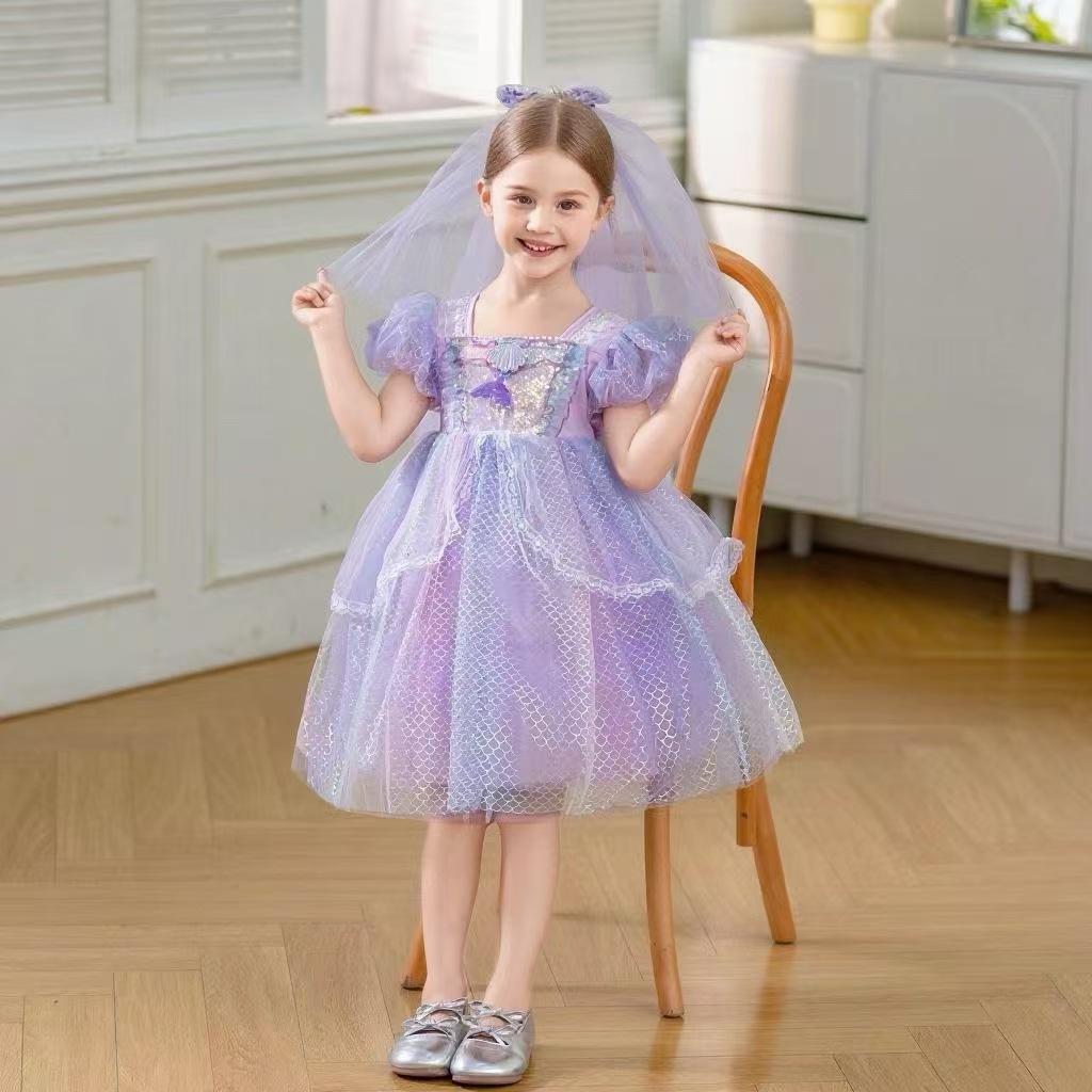 Short Sleeve/Violet/Mermaid/Princess Dress+Sequin Veil