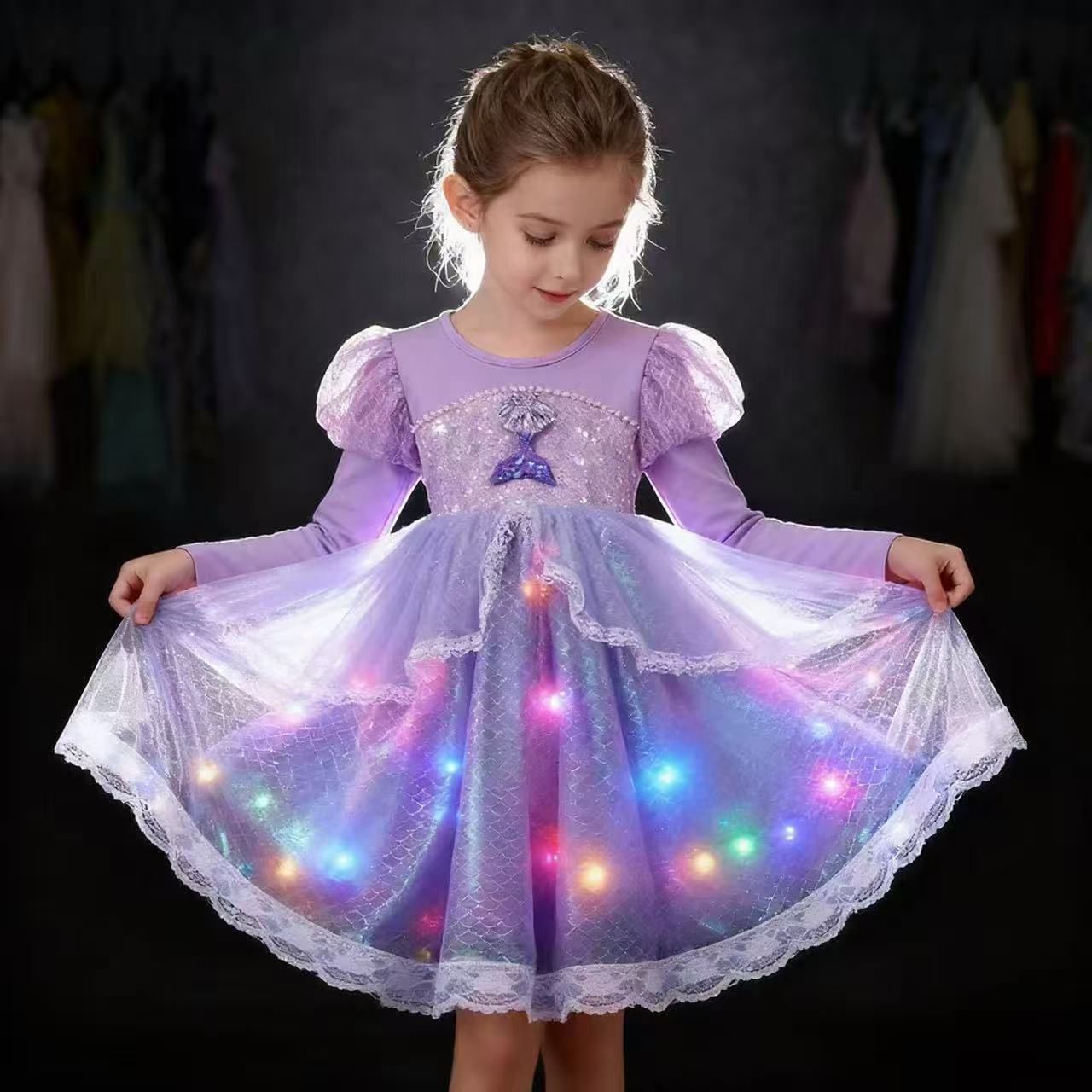 Long Sleeve/Violet/Mermaid/Princess Dress, Long Sleeve/Violet/Mermaid/Princess Dress+Fairy Lights, Long Sleeve...