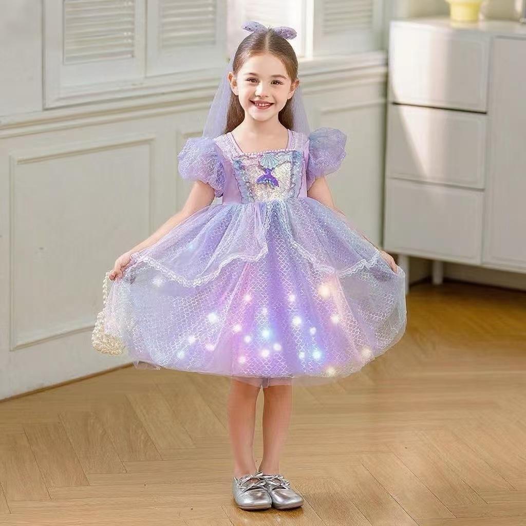 Short Sleeve/Violet/Mermaid/Princess Dress+Fairy Lights