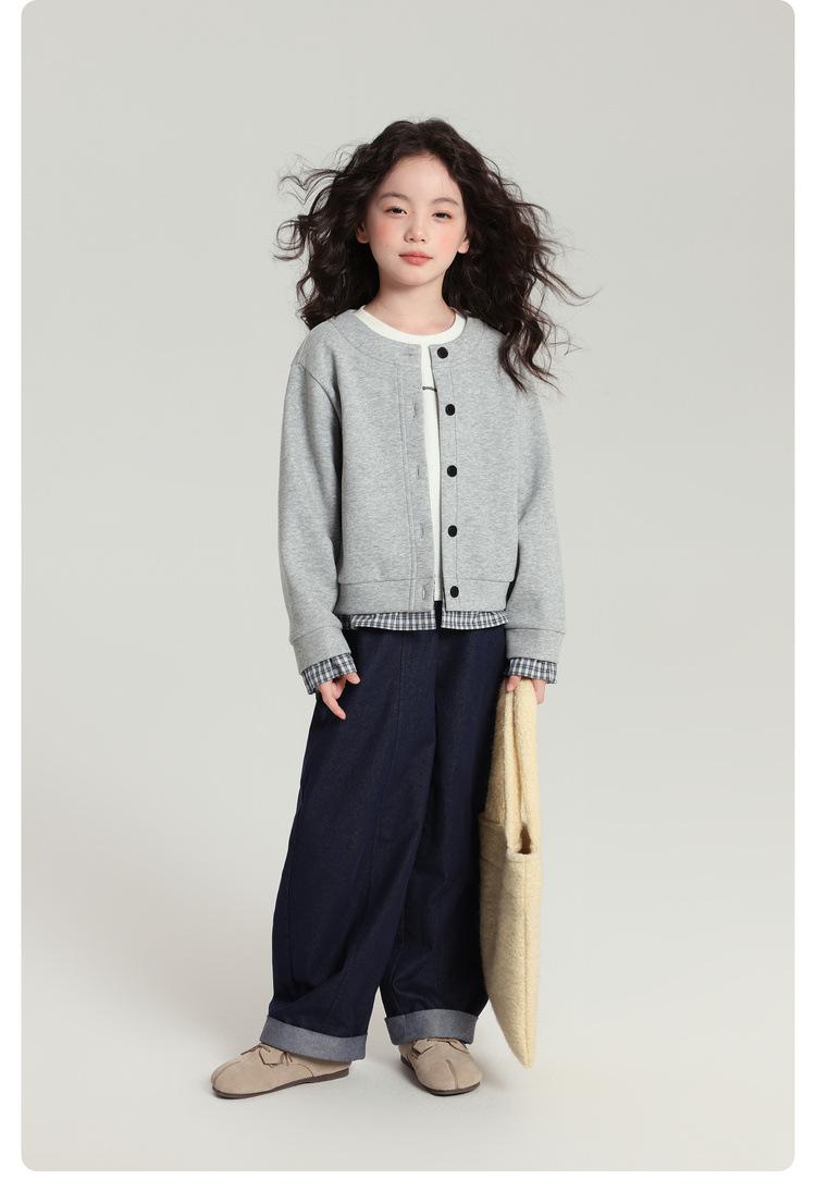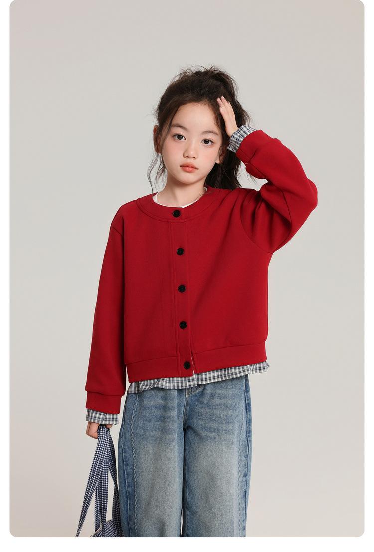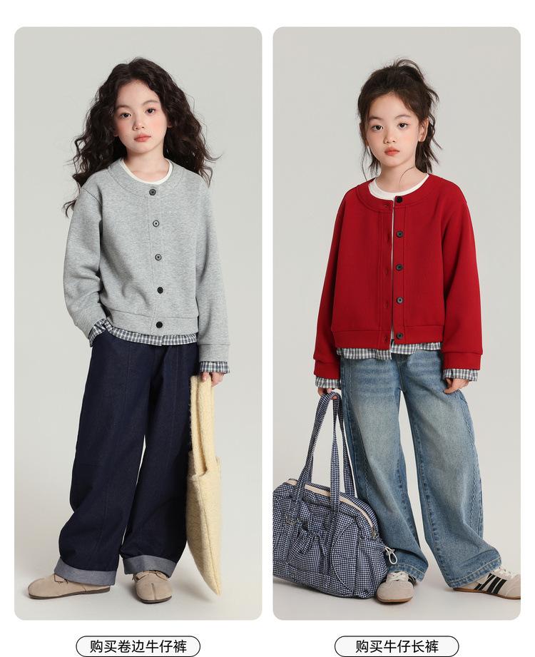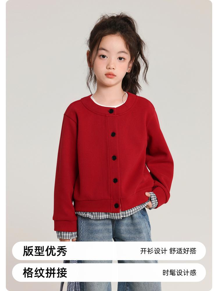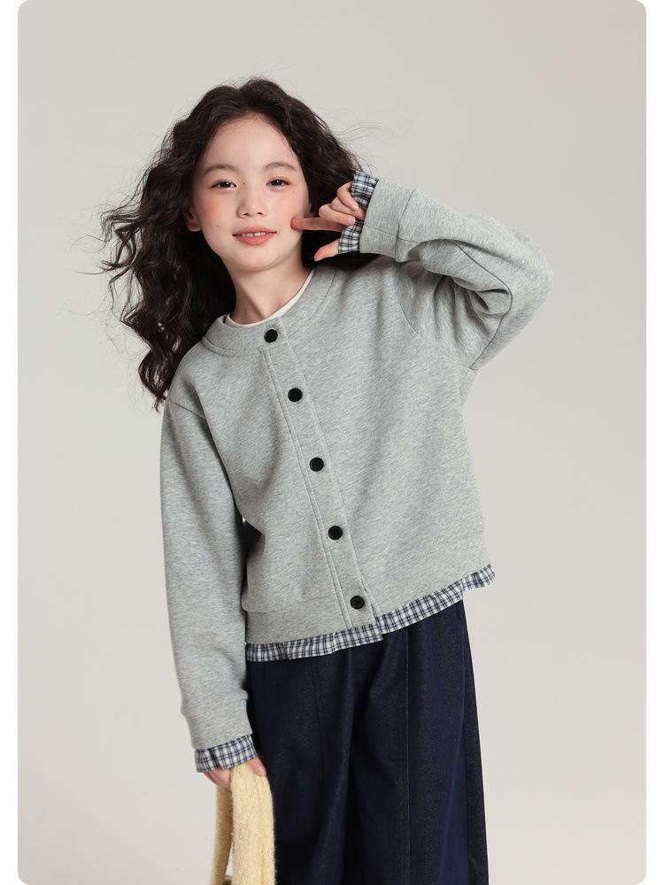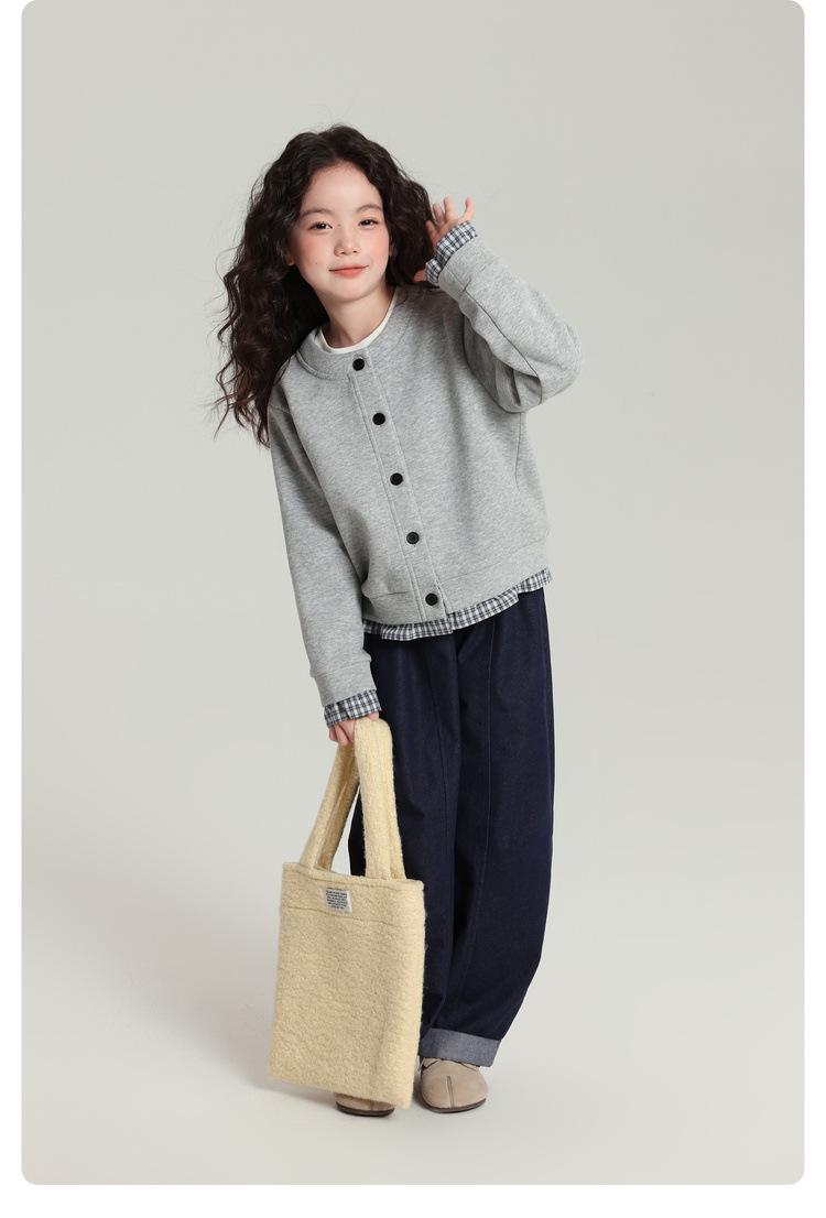 Pudding Haru Ropa Exterior para Niñas Chaqueta Patchwork a Cuadros 2025 Otoño Nuevo Versátil Sudadera Chaqueta para Niños