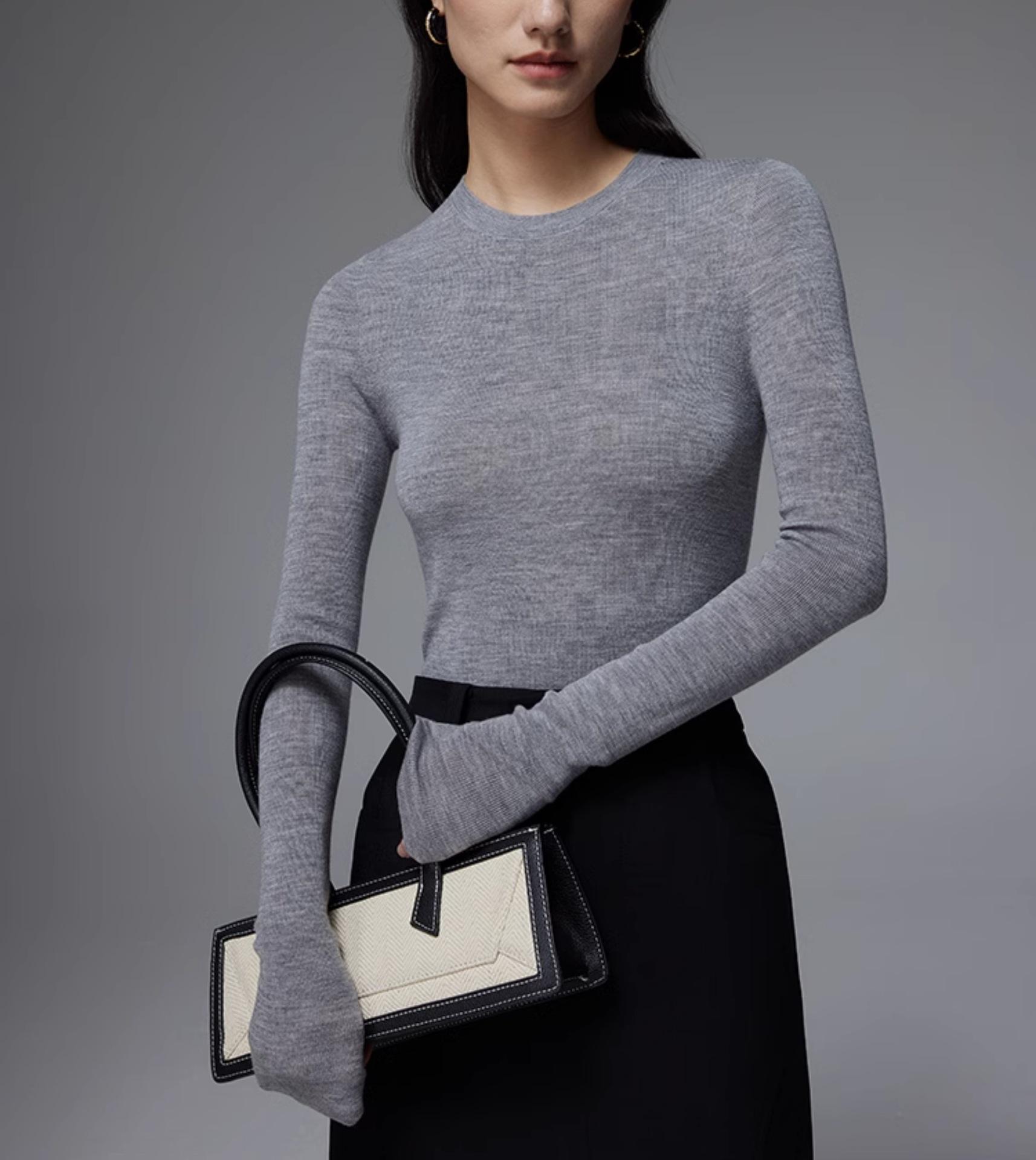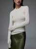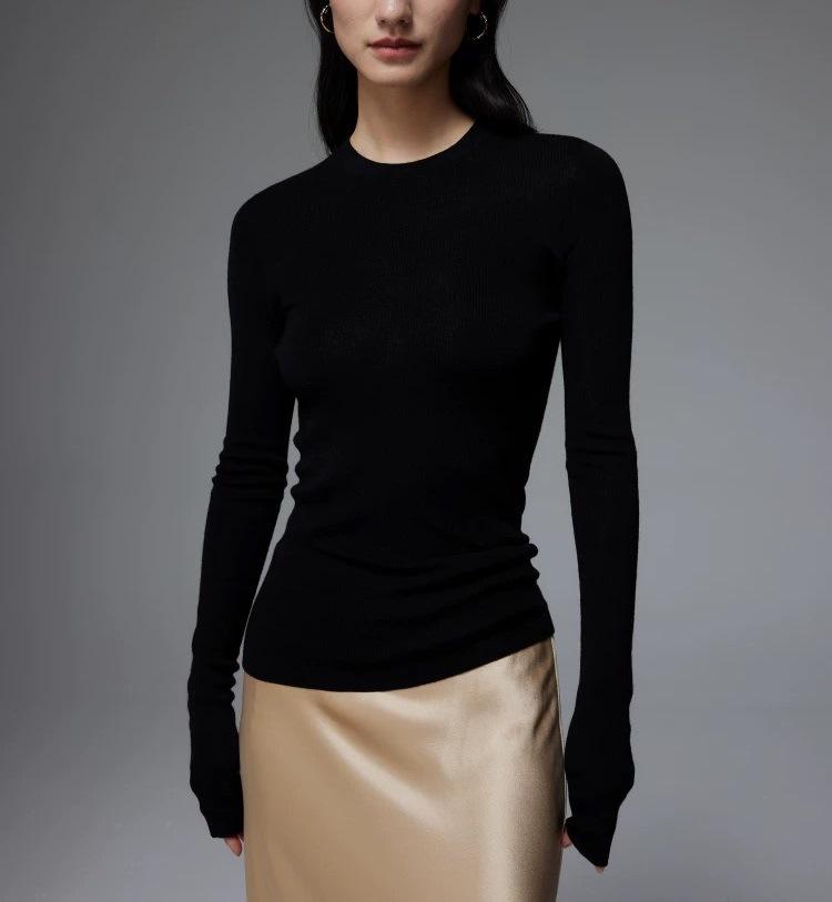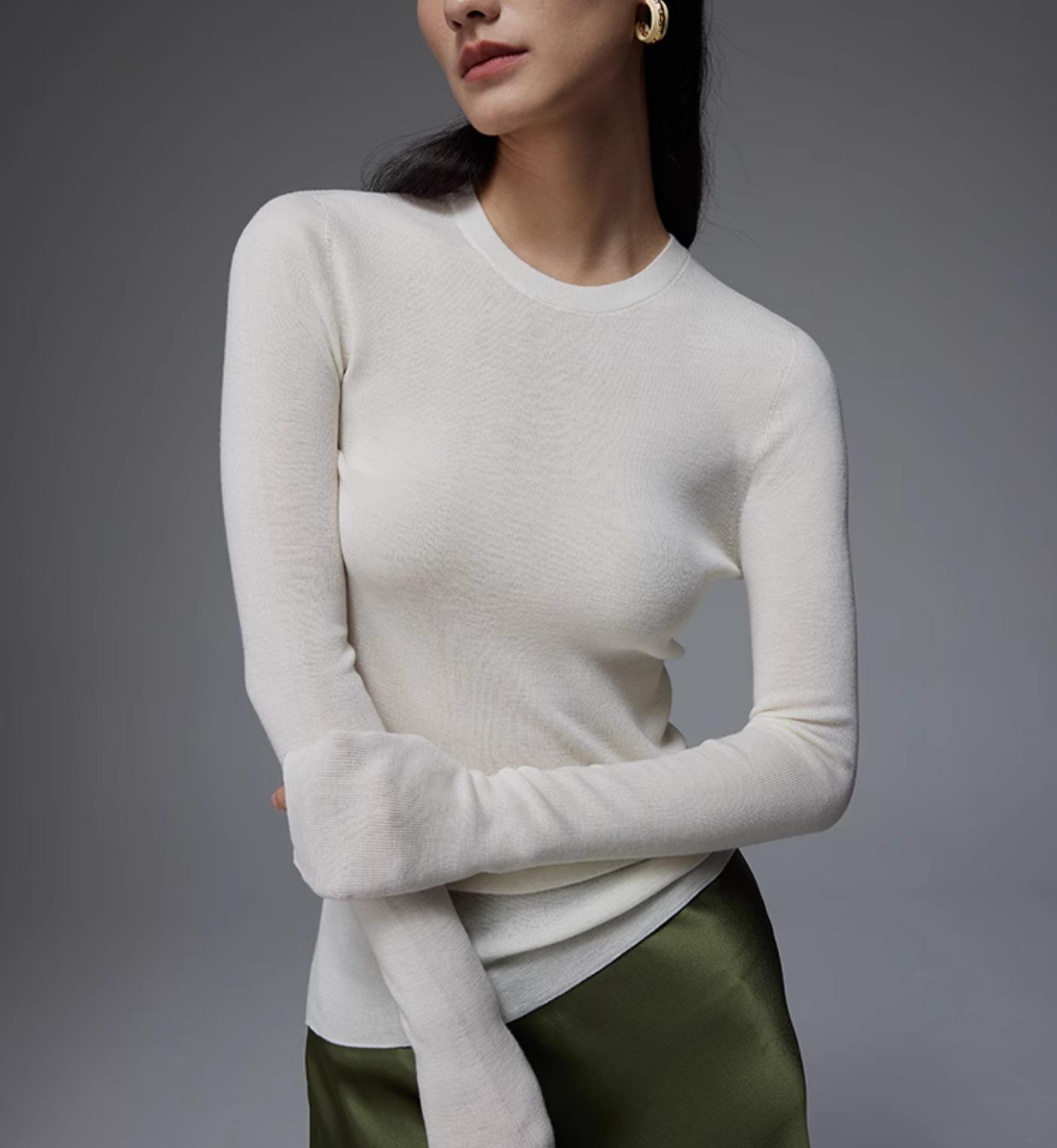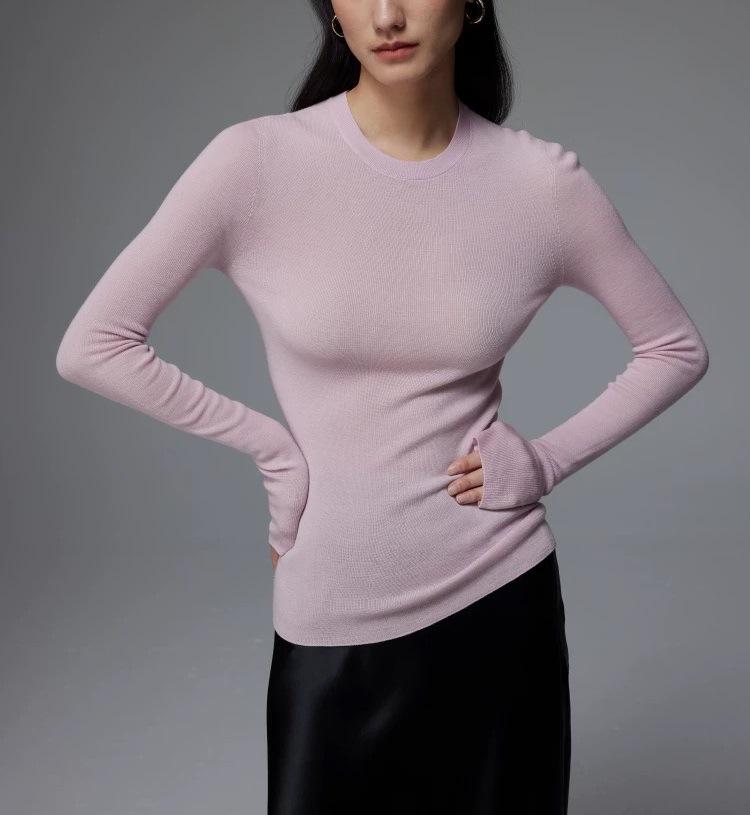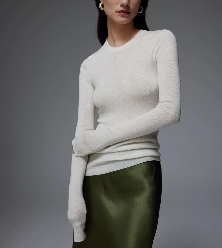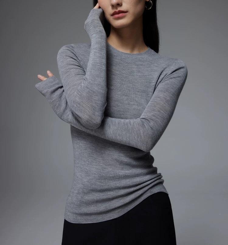 Suéter Delgado de Lana Merino 120S Fina Cómodo y Delicado con la Piel de Punto de Galga 18 sin Costuras de Cuello Redondo