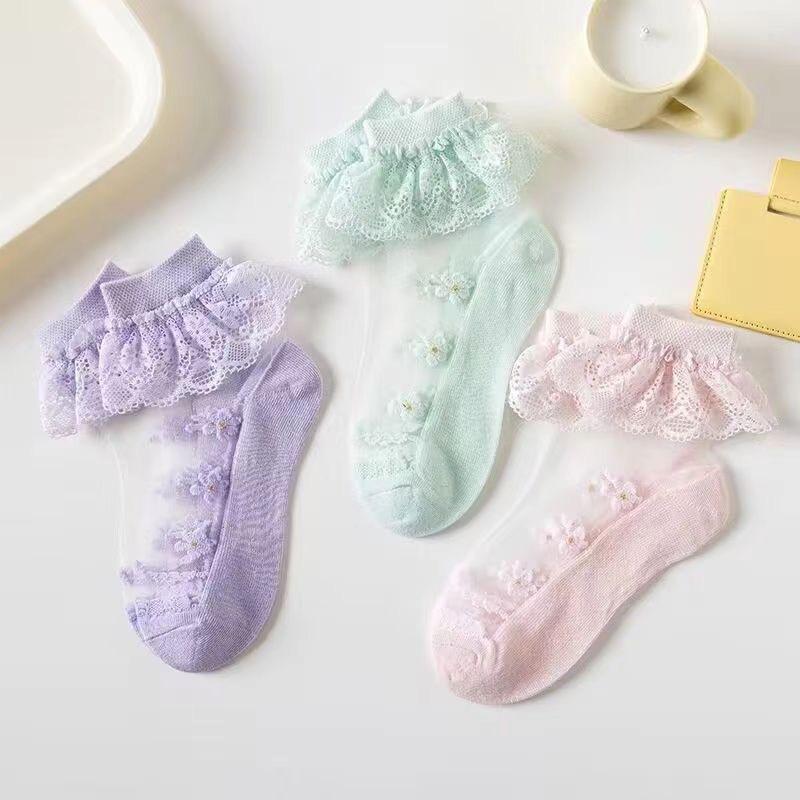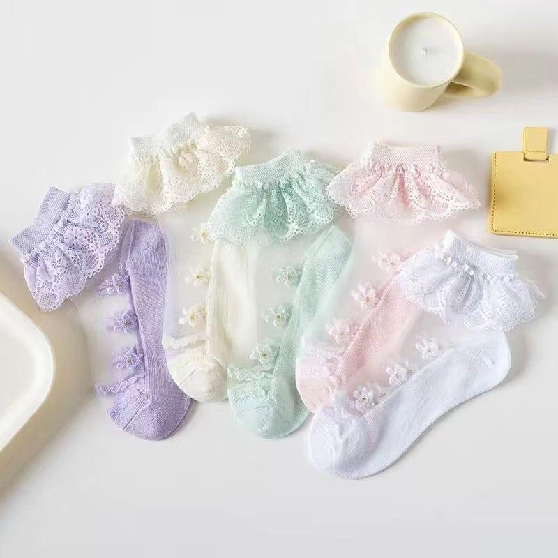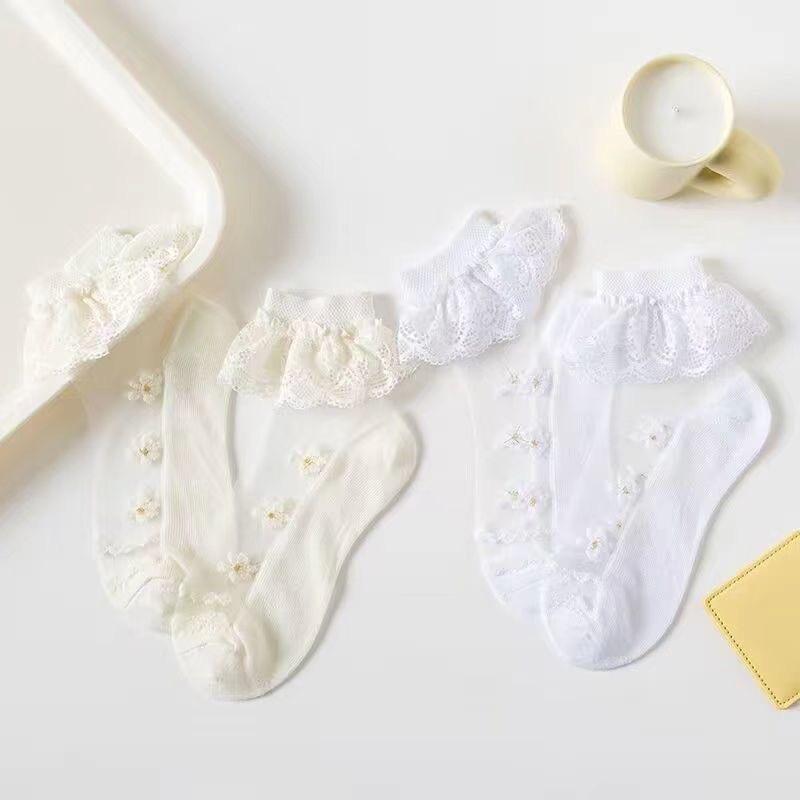 Calcetines de cristal de verano para niñas calcetines de algodón de encaje transpirables calcetines blancos calcetines de encaje para niños calcetines de cristal para bebés