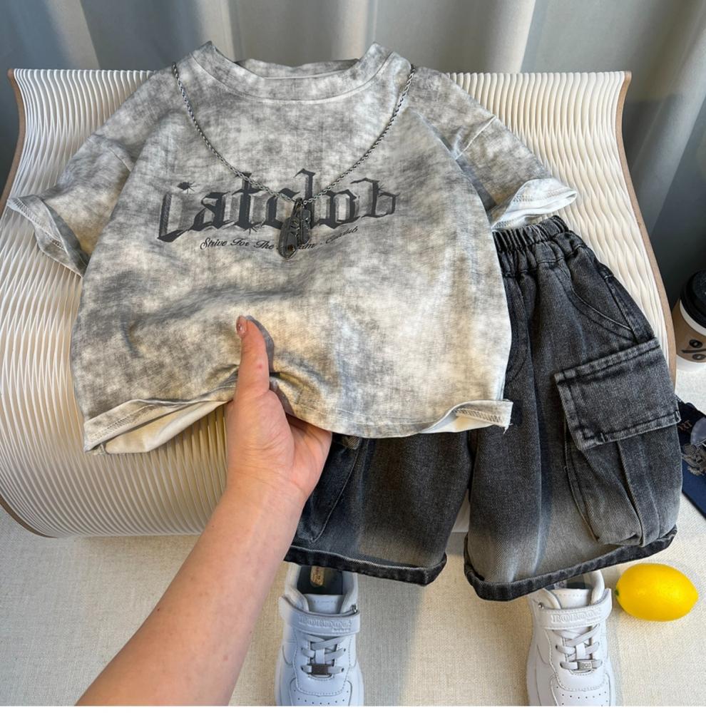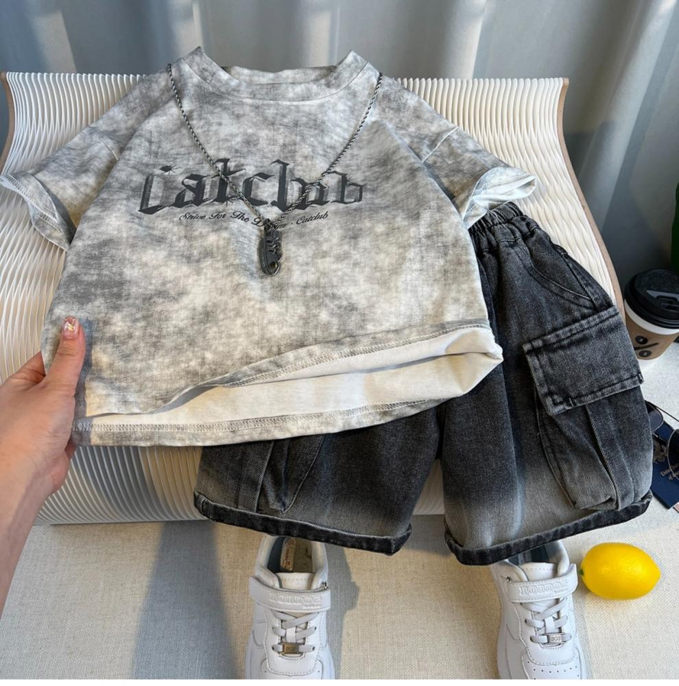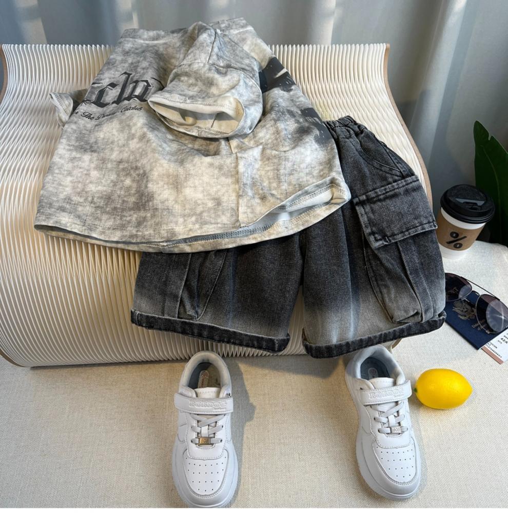 Traje de Verano para Niño Estilo Urbano 2025 Nueva Moda Infantil de Manga Corta Traje de Verano para Bebé Estilo Coreano de Moda Conjunto de Dos Piezas