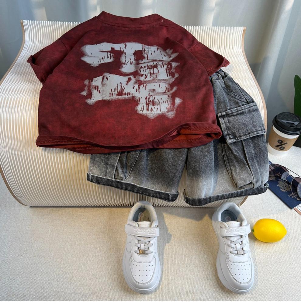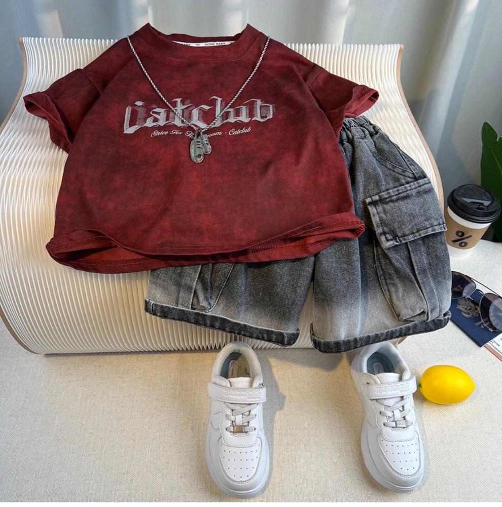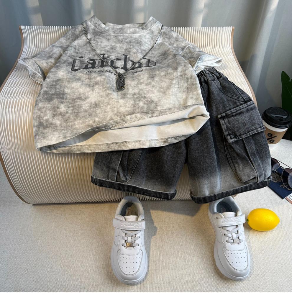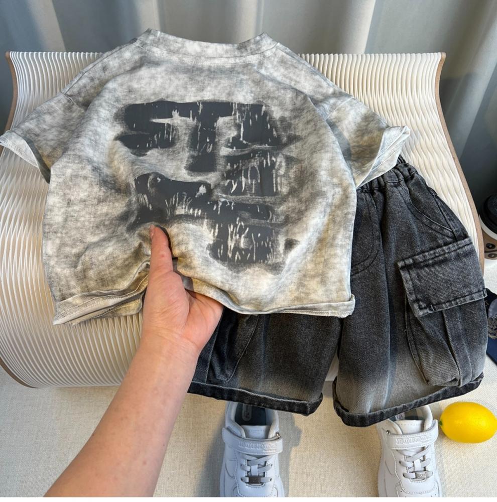 Traje de Verano para Niño Estilo Urbano 2025 Nueva Moda Infantil de Manga Corta Traje de Verano para Bebé Estilo Coreano de Moda Conjunto de Dos Piezas