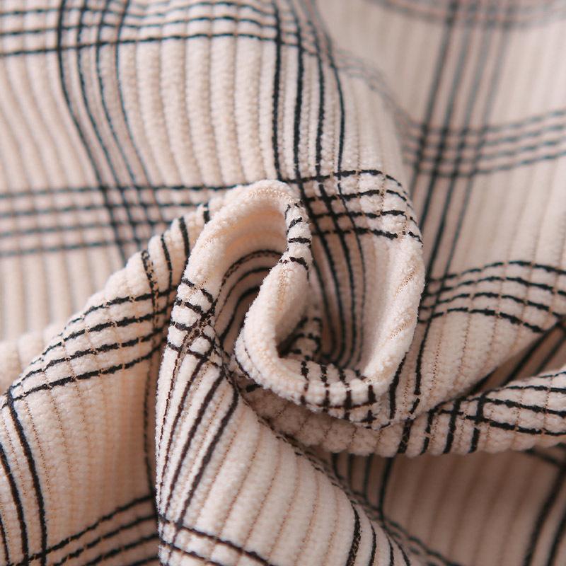 Beige plaid casual long-sleeve three-piece set, Tangerine Plaid Casual Long Sleeve Three-Piece Set
