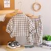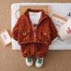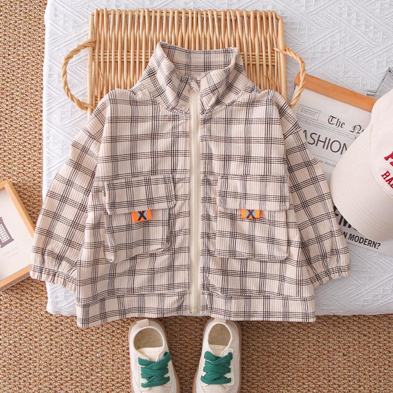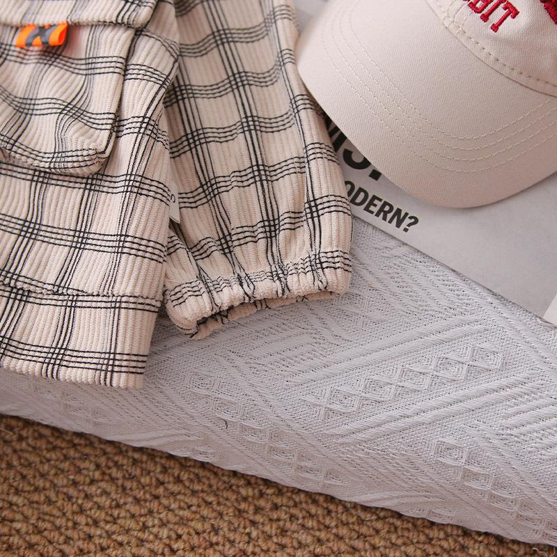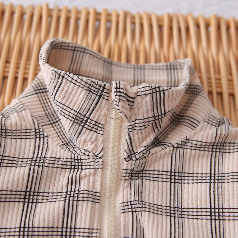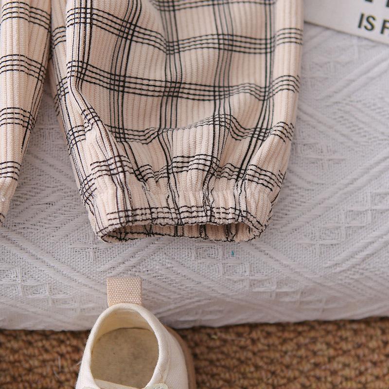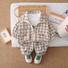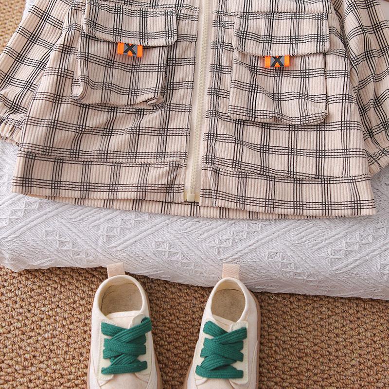 Nuevo conjunto de otoño para niños guapos, ropa para niños, chaqueta de cuadros con cremallera, conjunto de otoño de tres piezas para bebé de 1 a 3 años