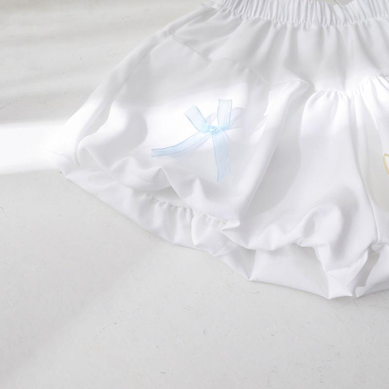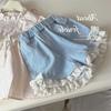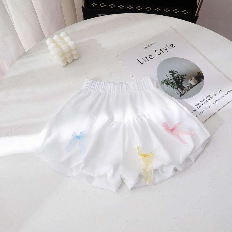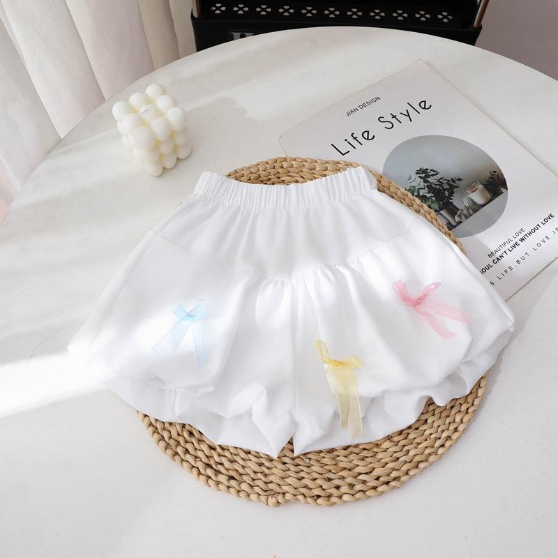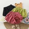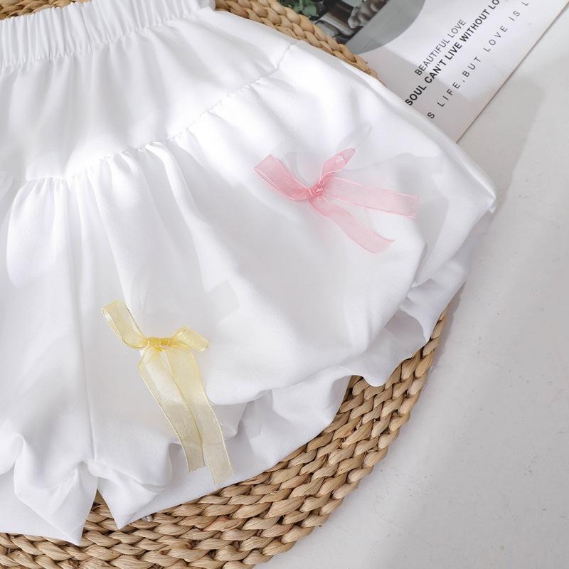 Pantalones cortos de verano para niña pequeña estilo coreano frescos color sólido con lazo flor de capullo conjunto dulce versátil estilo verano para bebé