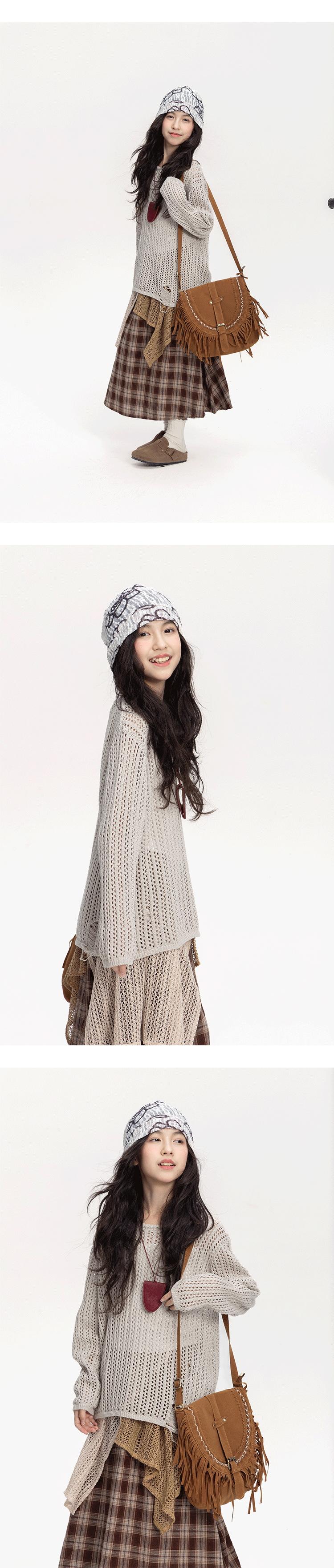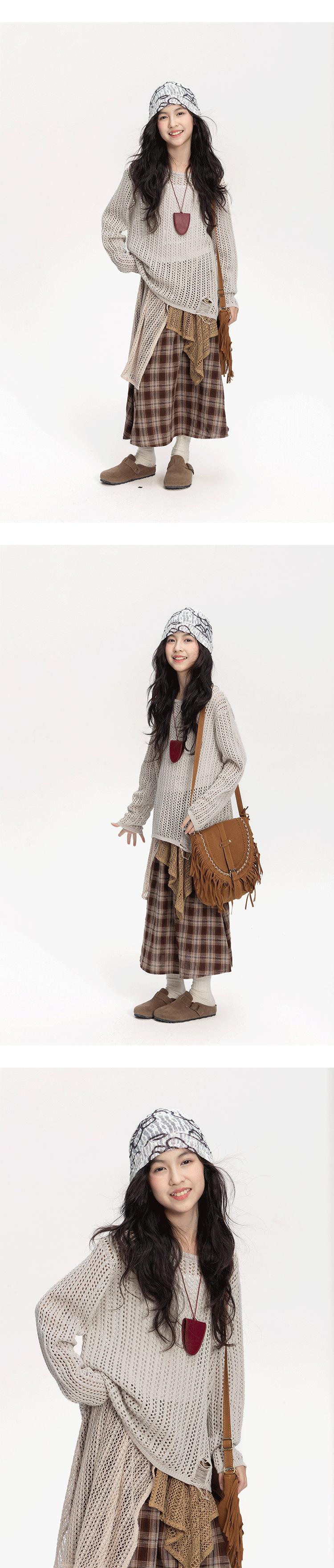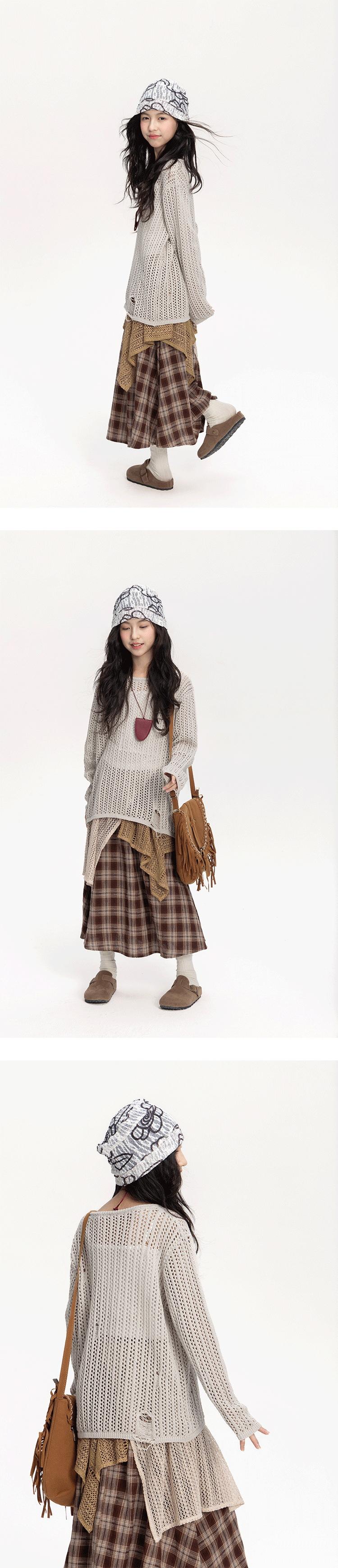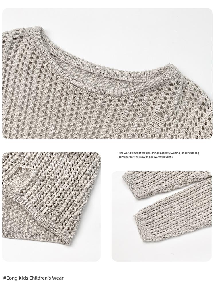 Suéter Retro Calado de Punto para Niñas 2025 Otoño Nuevo Estilo Lazy Infantil Cuello Redondo Suelto Casual Top Jersey