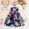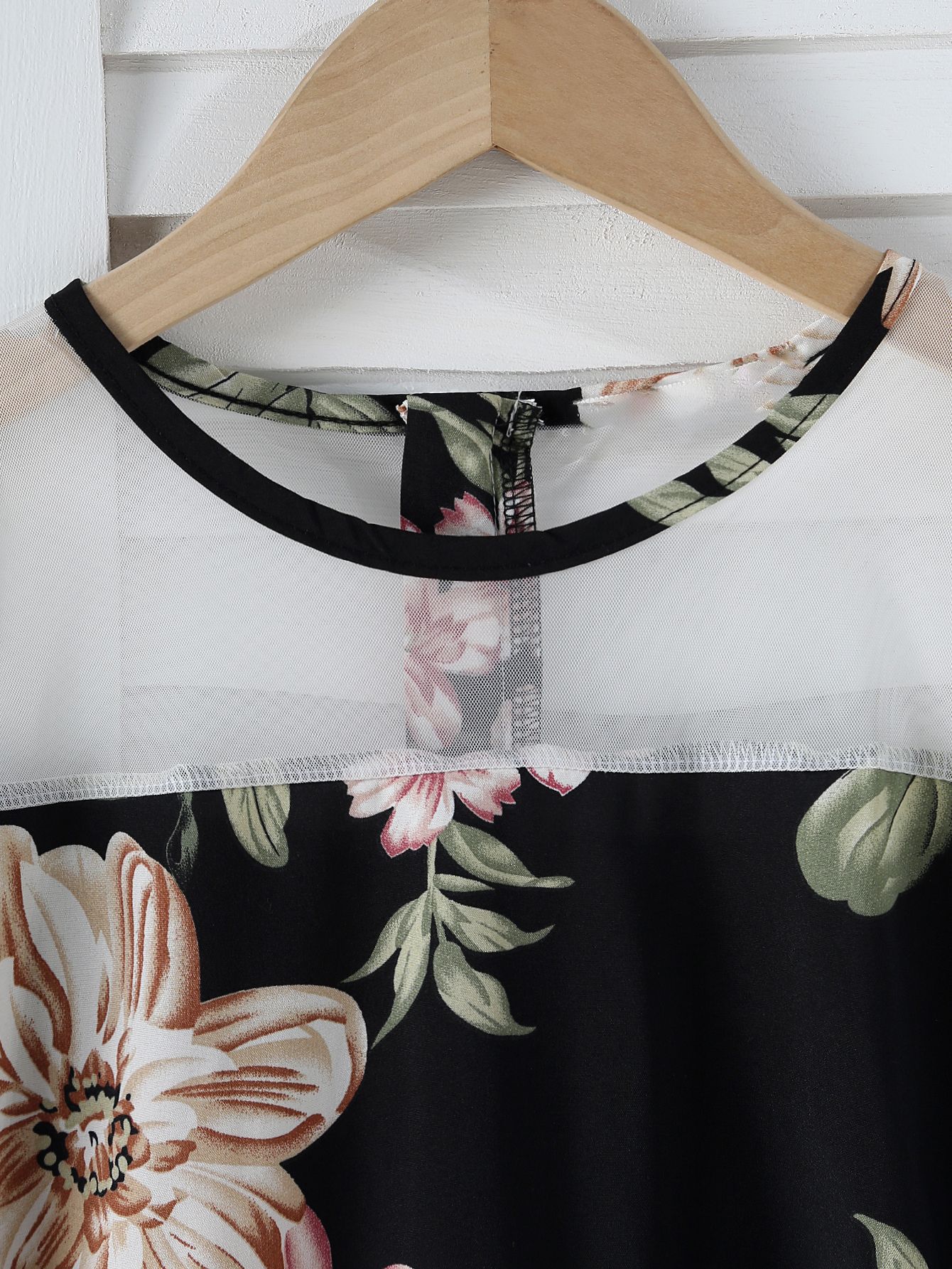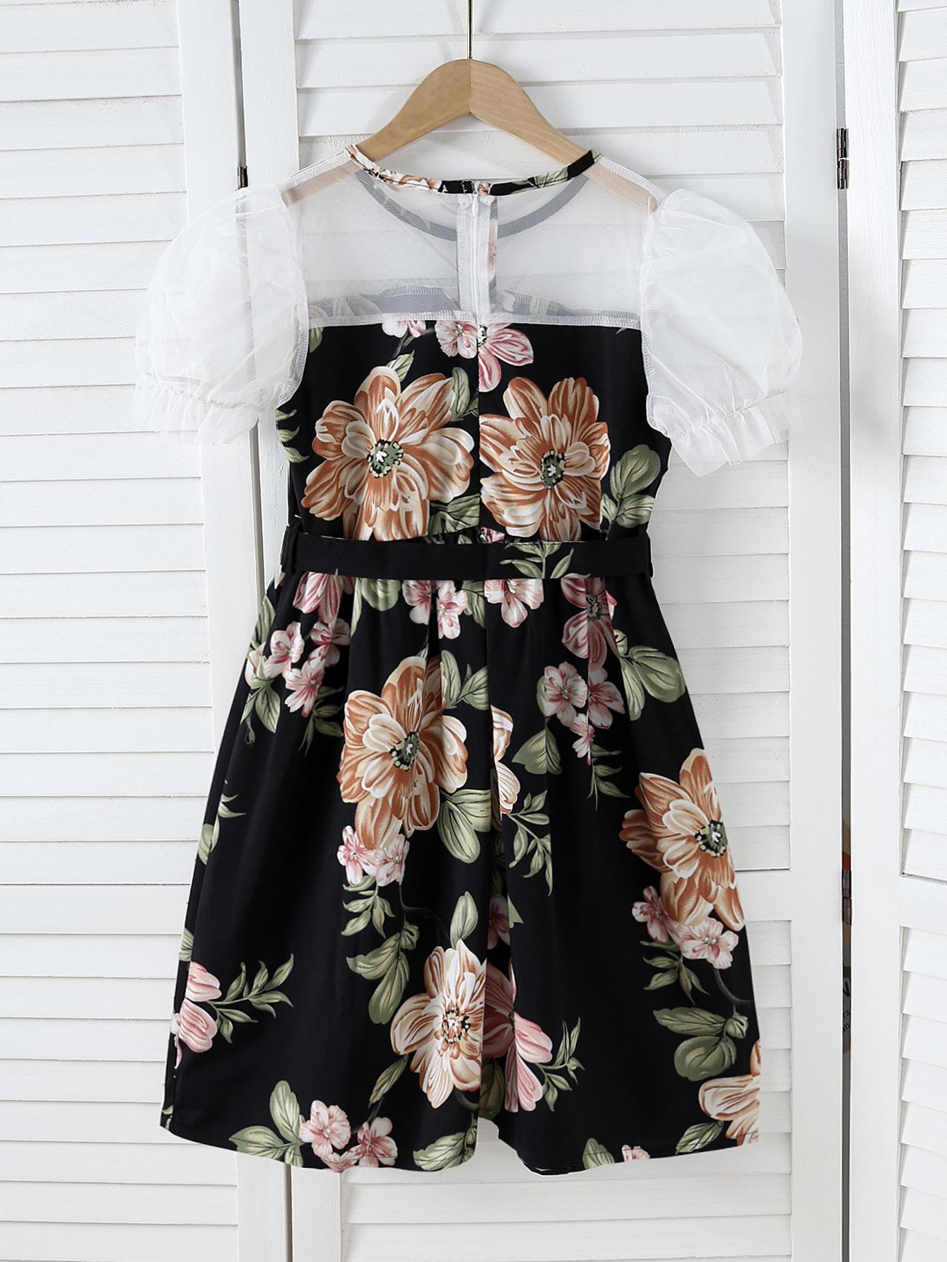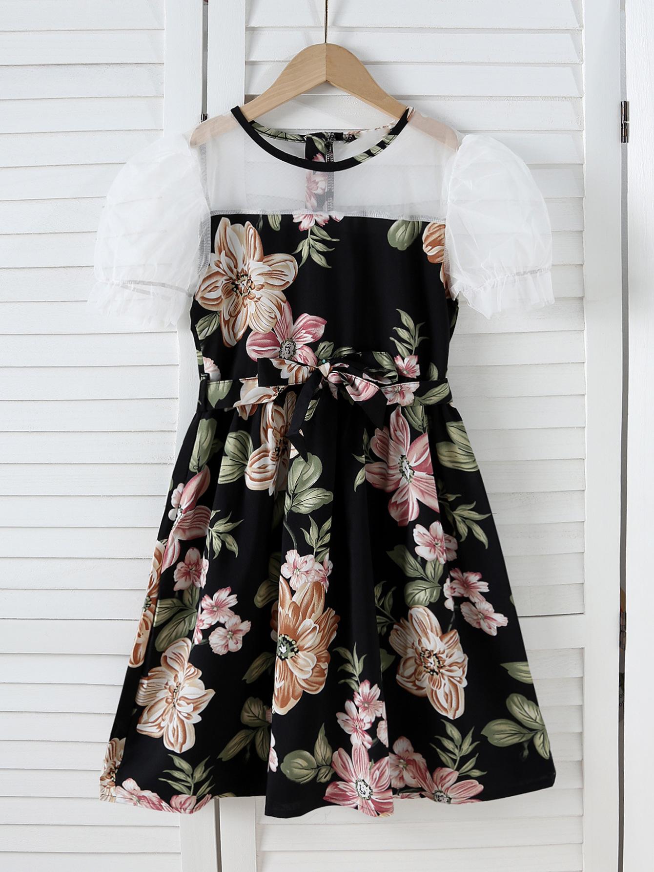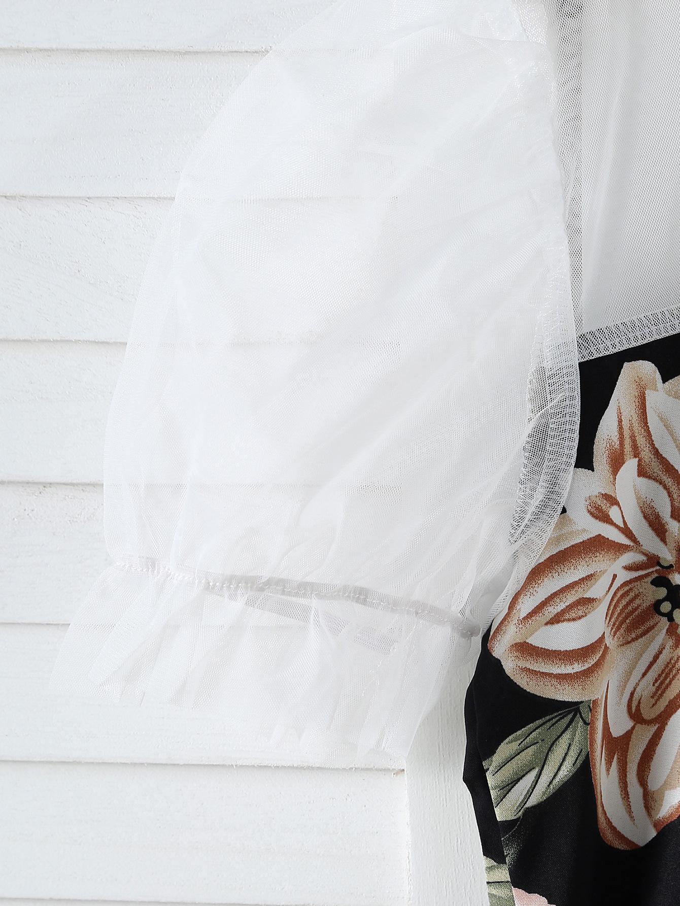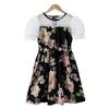 Vestido de Fiesta Elegante de Verano para Niñas Grandes con Encaje Patchwork Floral Estampado Completo Retro Ajustado Adelgazante