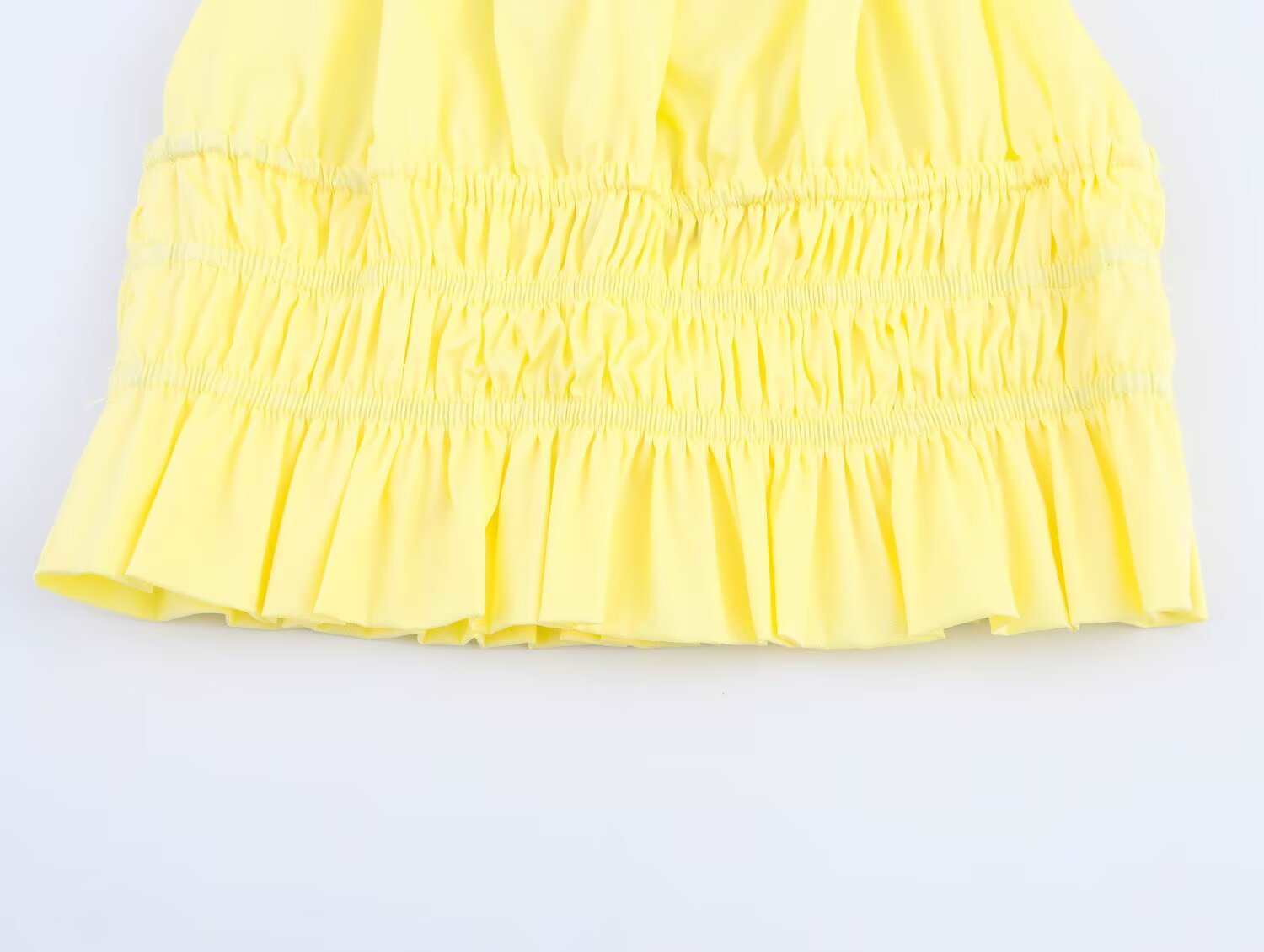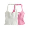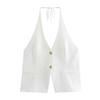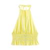 Blusas de Verano Amarillas Holgadas para Mujer, Moda Casual con Cuello Cruzado, Nuevas Europeas y Americanas sin Mangas con Cuello Halter