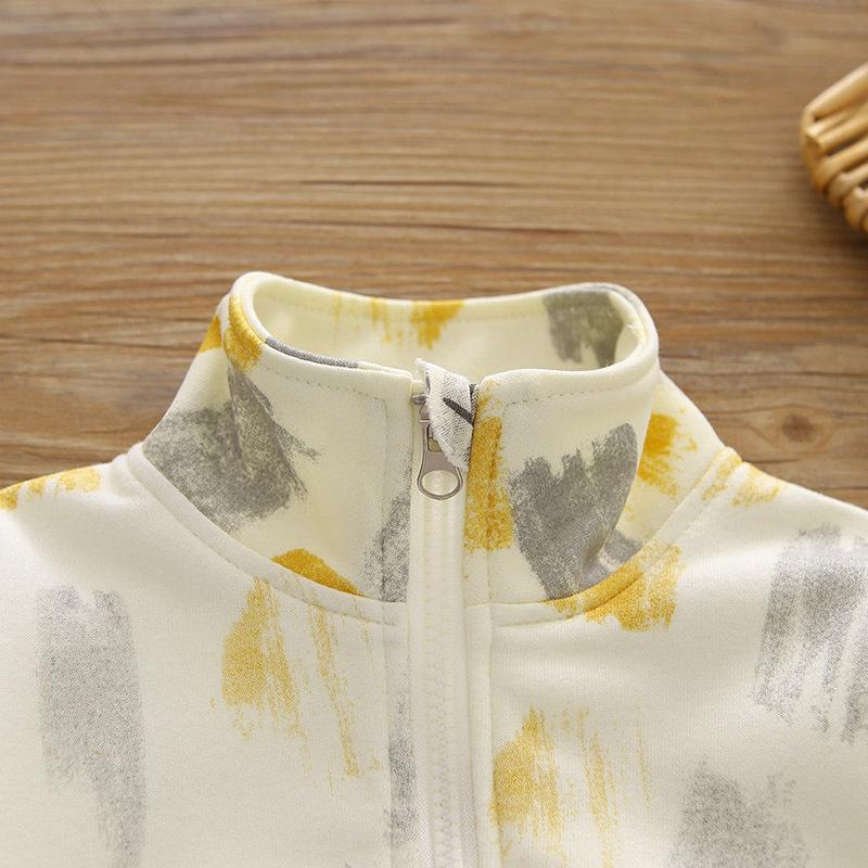 Off-white zipper long-sleeved three-piece set, Green zipper long-sleeved three-piece suit, Brown zipper long-s...