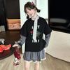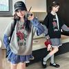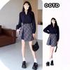 2025 Otoño Nueva Moda Estampado Casual Falso Conjunto de Dos Piezas Camiseta de Manga Larga para Mujer Falda a Cuadros de Media Longitud Conjunto de Dos Piezas Trendy