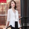 2023 Primavera y Verano Nuevo Traje Casual de Manga Media Chaqueta de Manga Media con Volantes Ropa de Trabajo para Mujer Decoración Formal