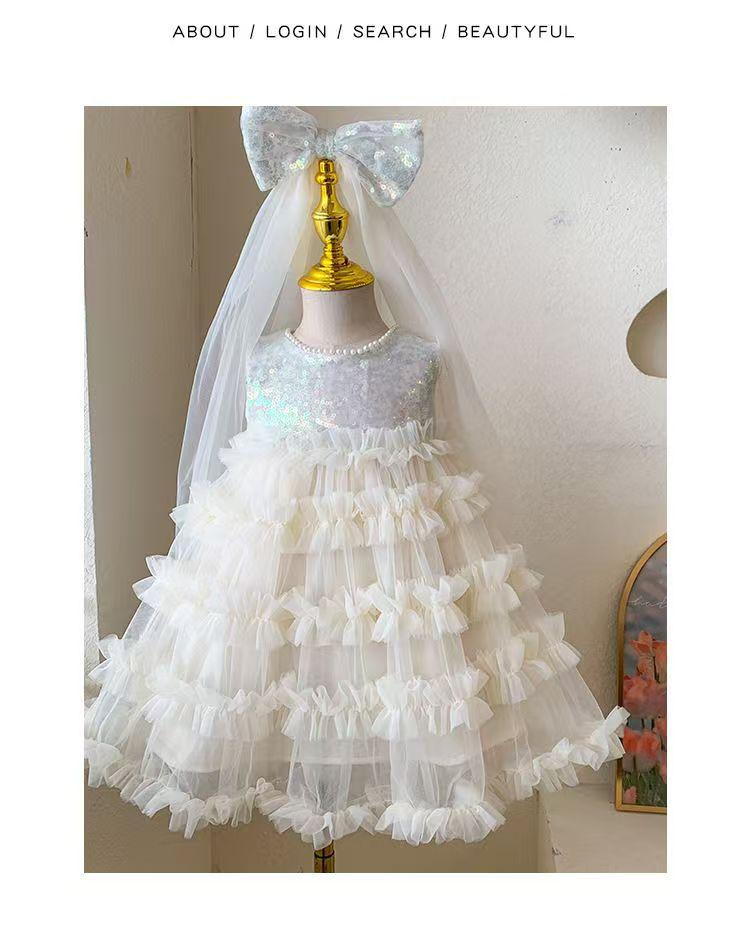 Falda de Pastel para Niñas Verano 2025 Nueva Falda de Lentejuelas para Niñita Falda Coreana de Verano para Bebé Niña Vestido de Cumpleaños