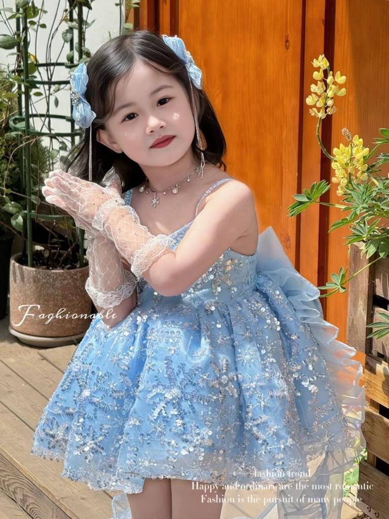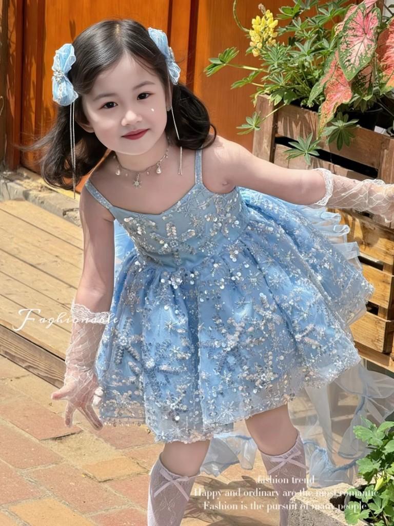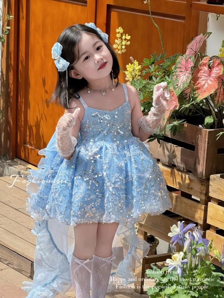 Vestido de Princesa para Niñas Verano 2025 Nuevo Vestido Caja de Música para Niños Vestido de Actuación para el Día del Niño Falda Abullonada