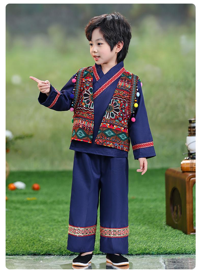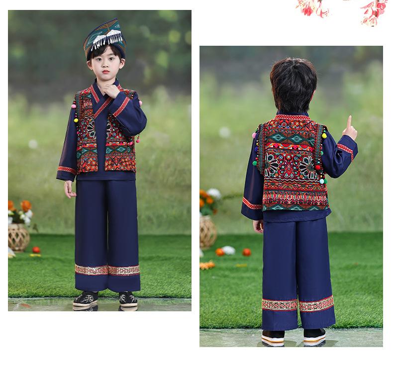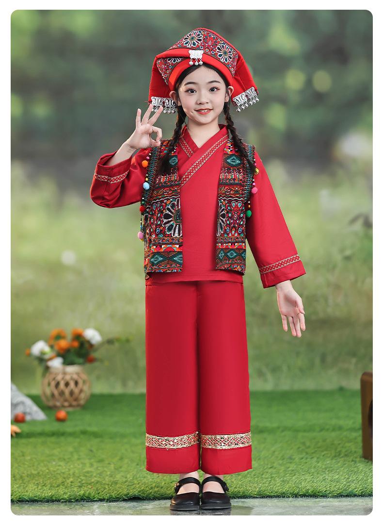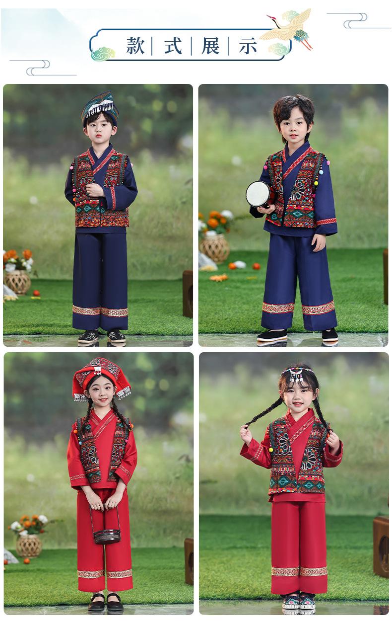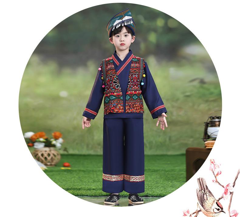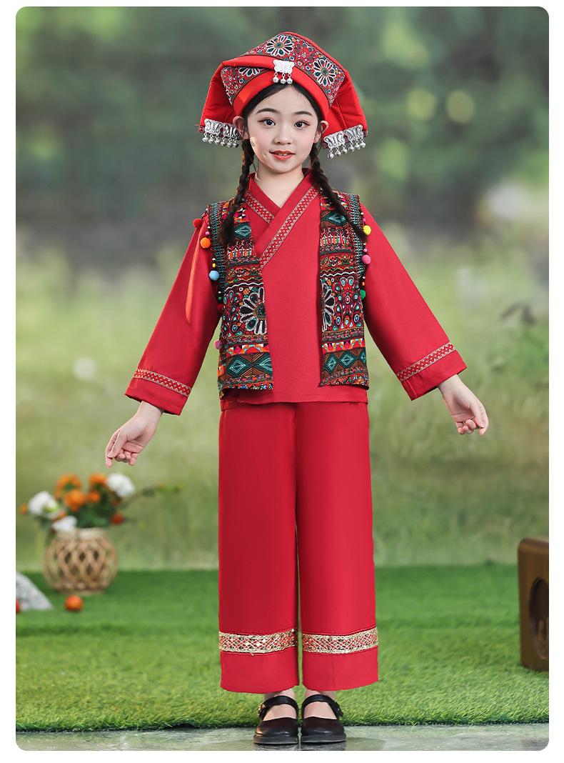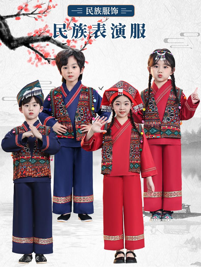 Trajes de minorías étnicas del 3 de marzo para niños, 56 trajes de niño Zhuang, Miao, Yao, trajes Zhuang Yi para niñas