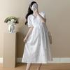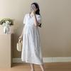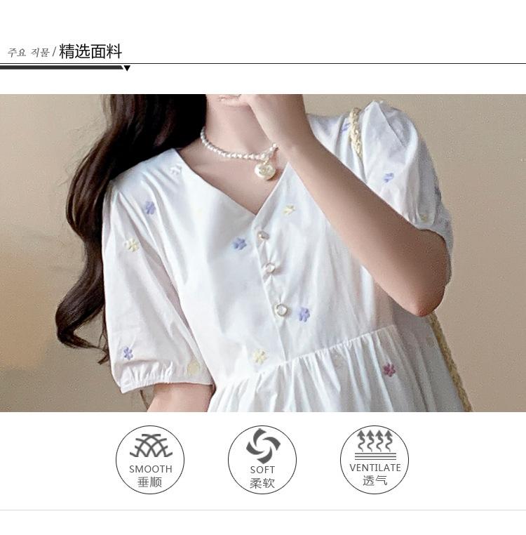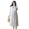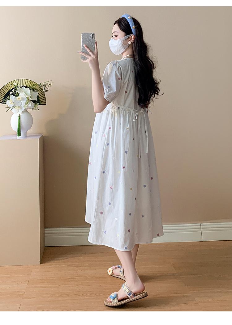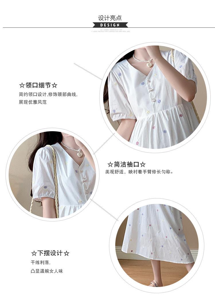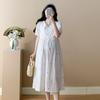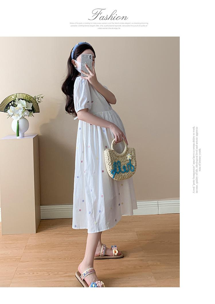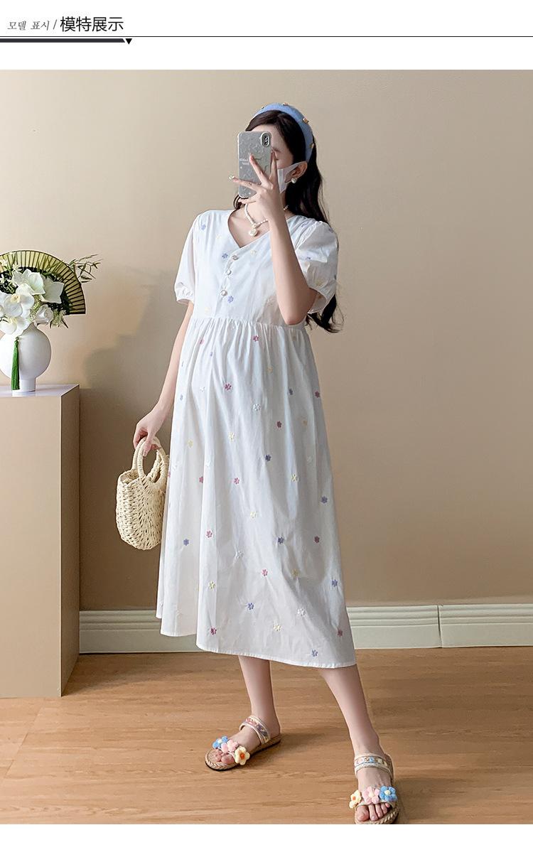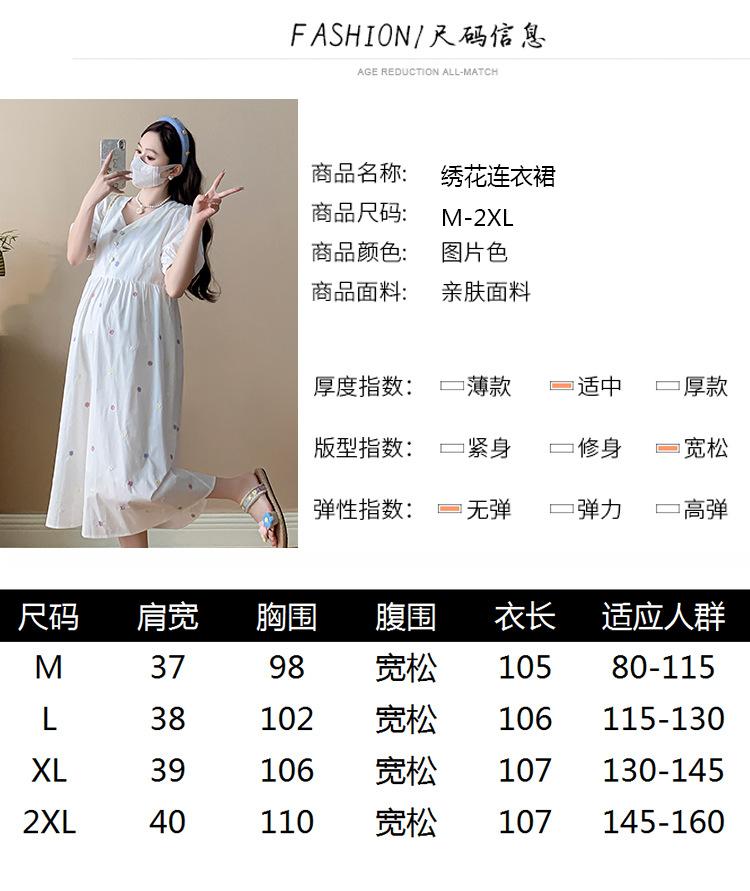 Maternidad 2025 Verano Nuevo Dulce Bordado Cuello en V Pequeño Fresco Suelto Talla Grande Vestido para Mujeres Embarazadas