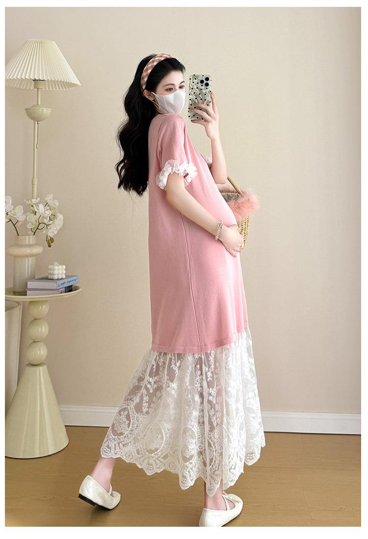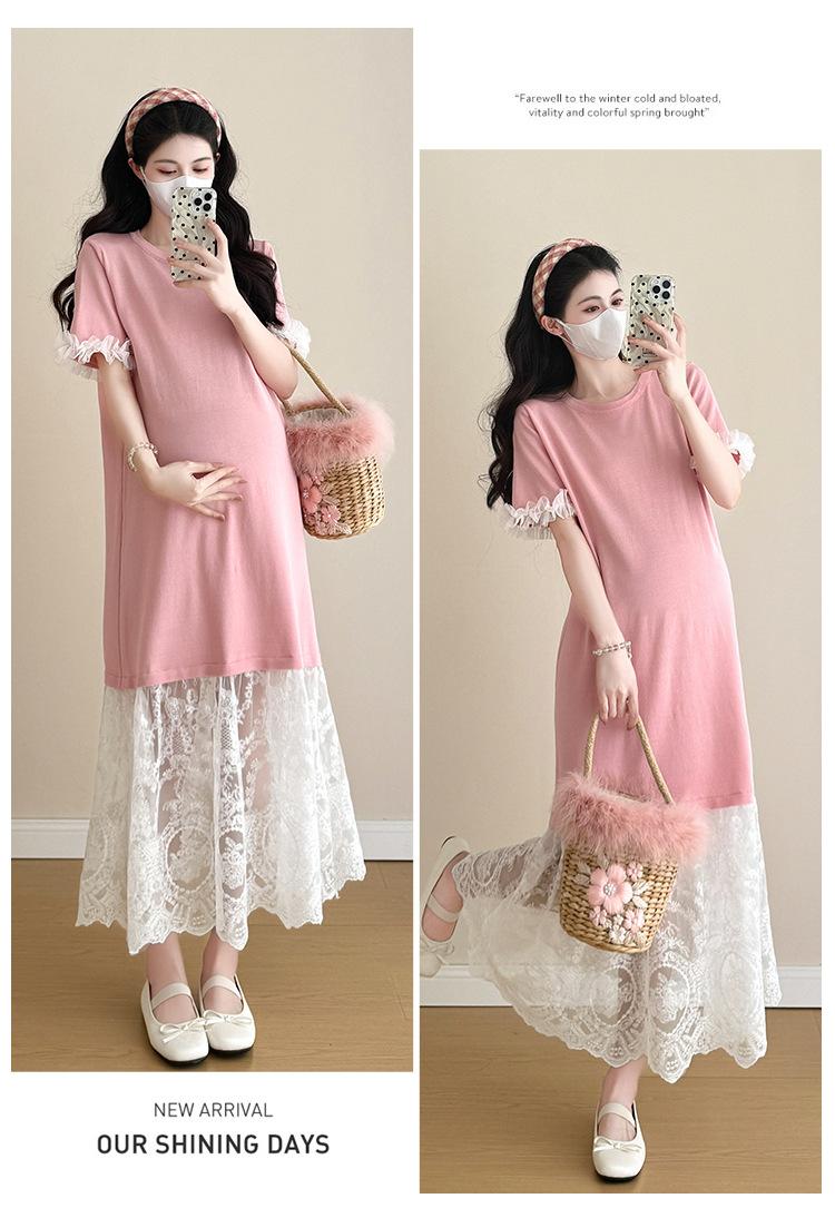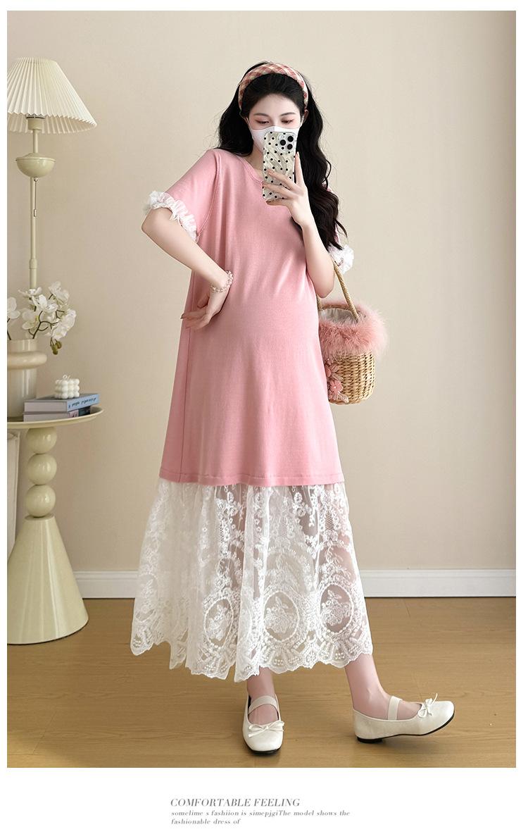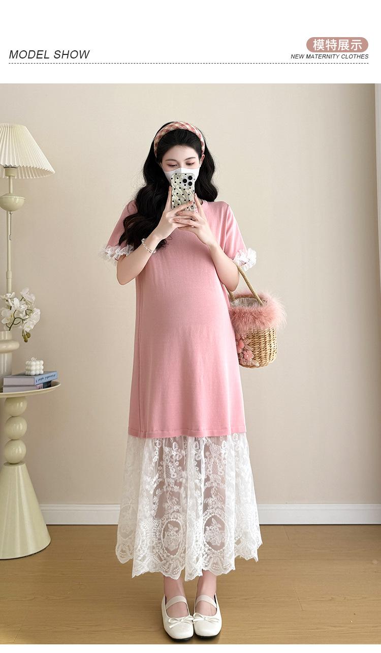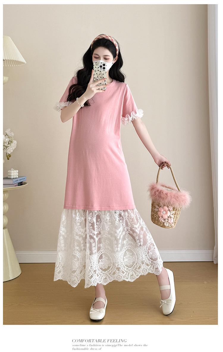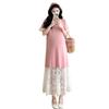 Maternidad 2025 Verano Nuevo Encaje de Punto Costura Suelto Talla Grande Vestido para Mujeres Embarazadas Vestido de Lactancia Postparto