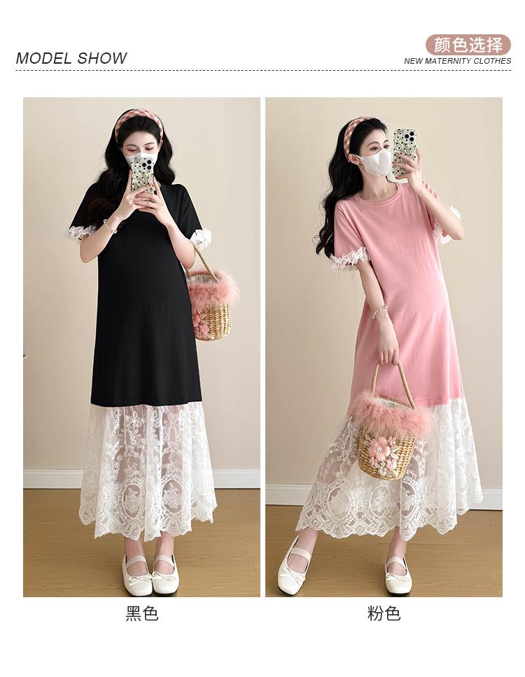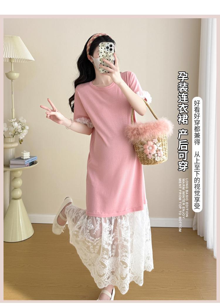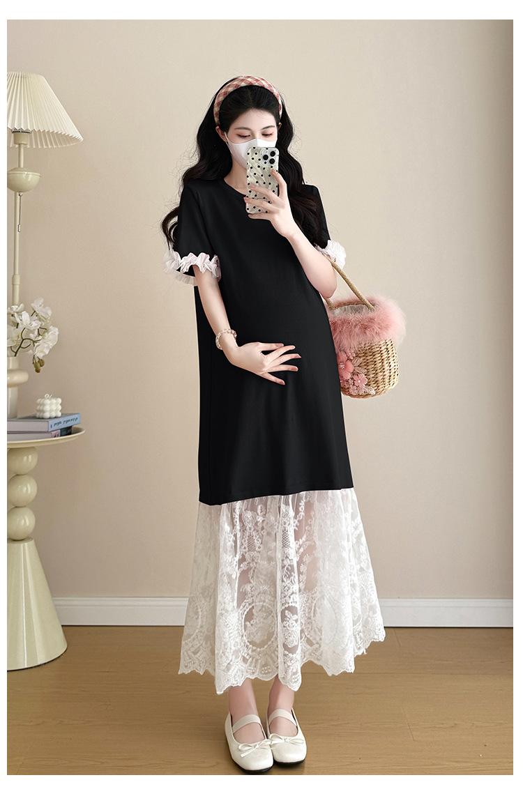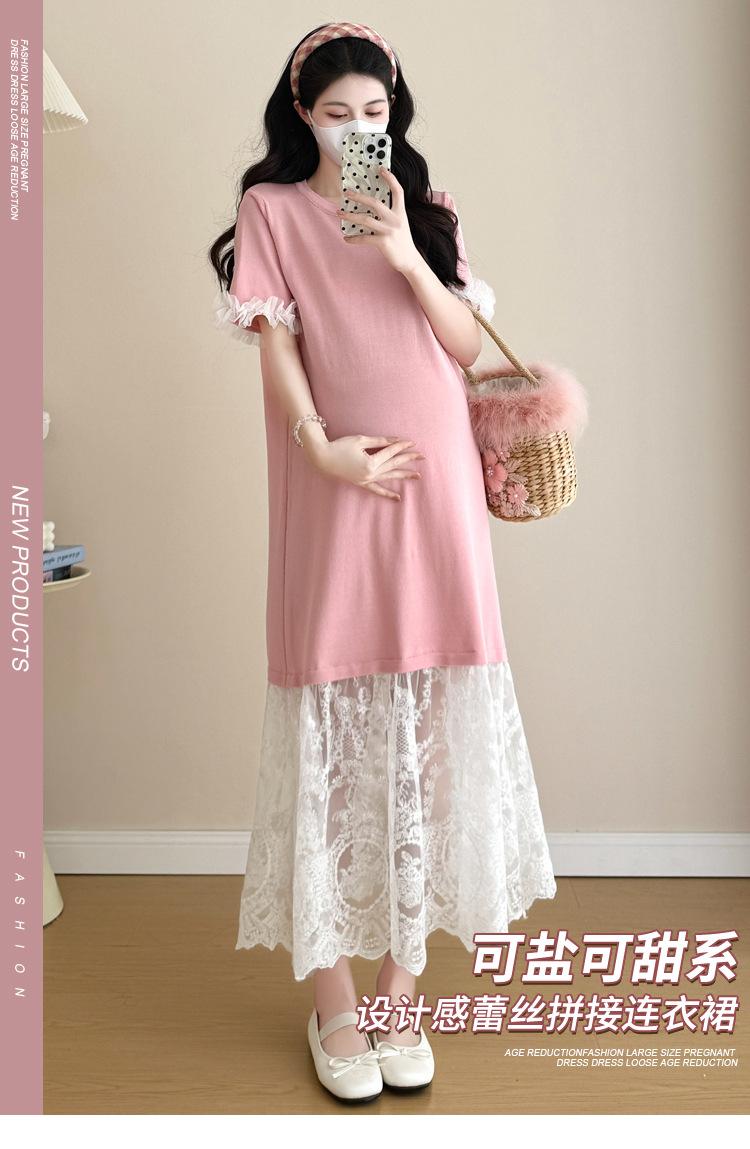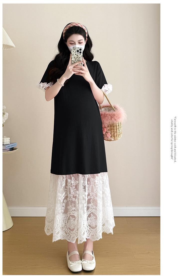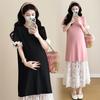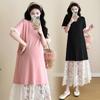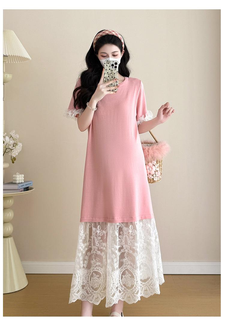 Maternidad 2025 Verano Nuevo Encaje de Punto Costura Suelto Talla Grande Vestido para Mujeres Embarazadas Vestido de Lactancia Postparto